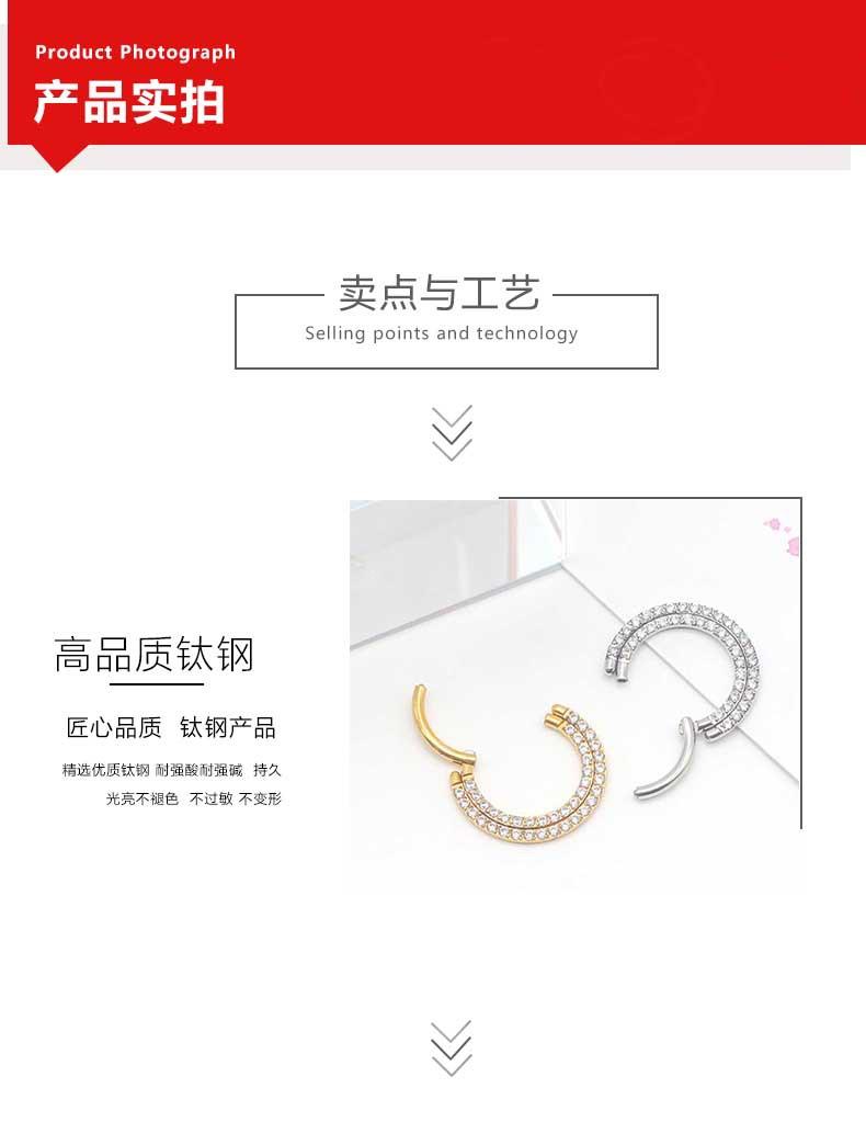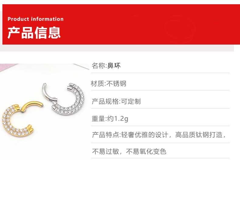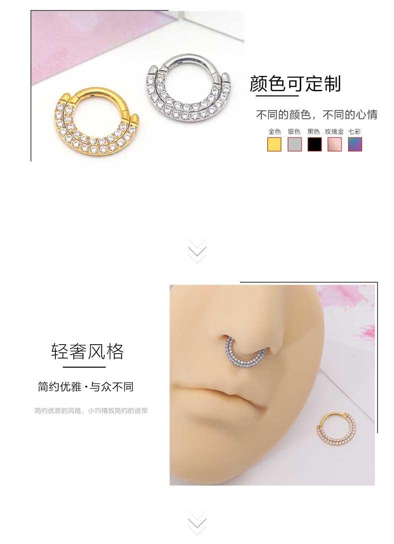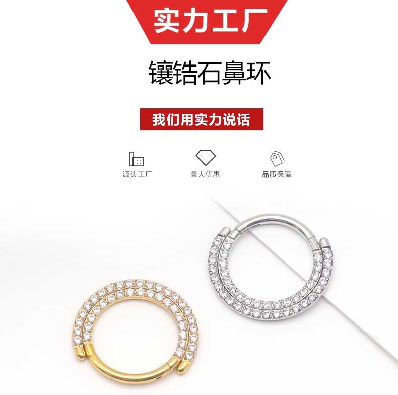 Nuevo anillo nasal con perforación, plano, de doble capa, con incrustaciones de circonita, para la nariz, anillo de apertura, joyería de moda transfronteriza redonda