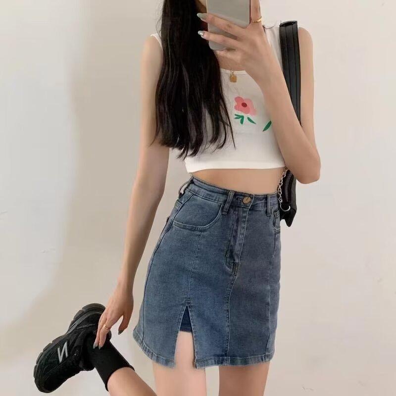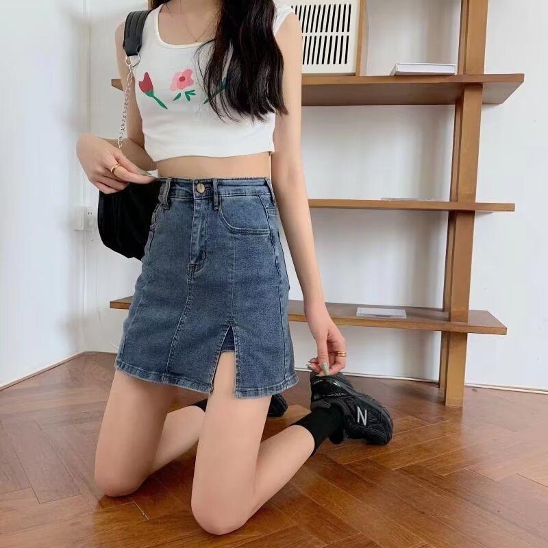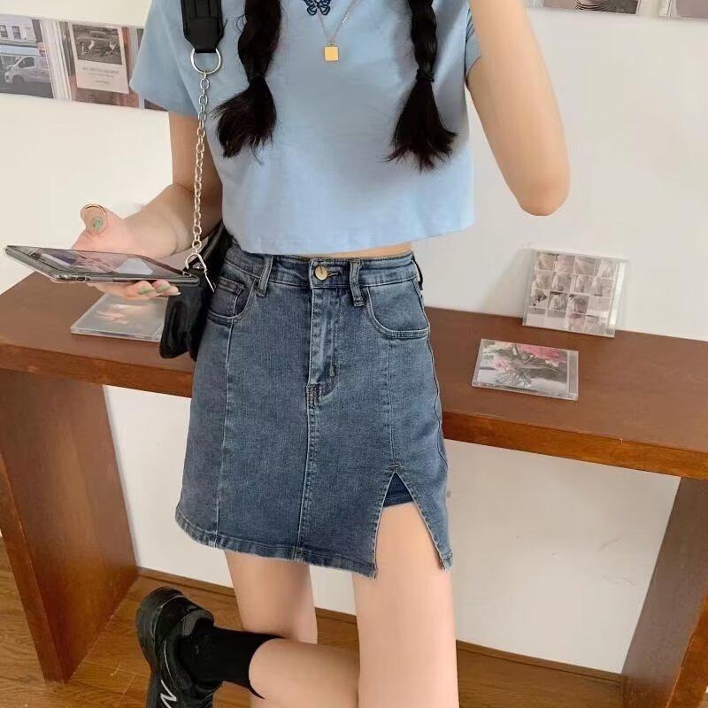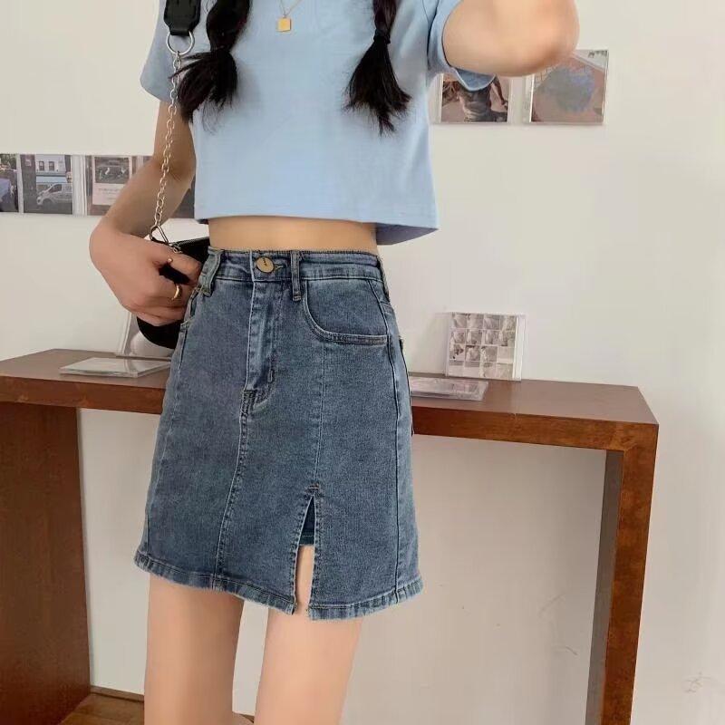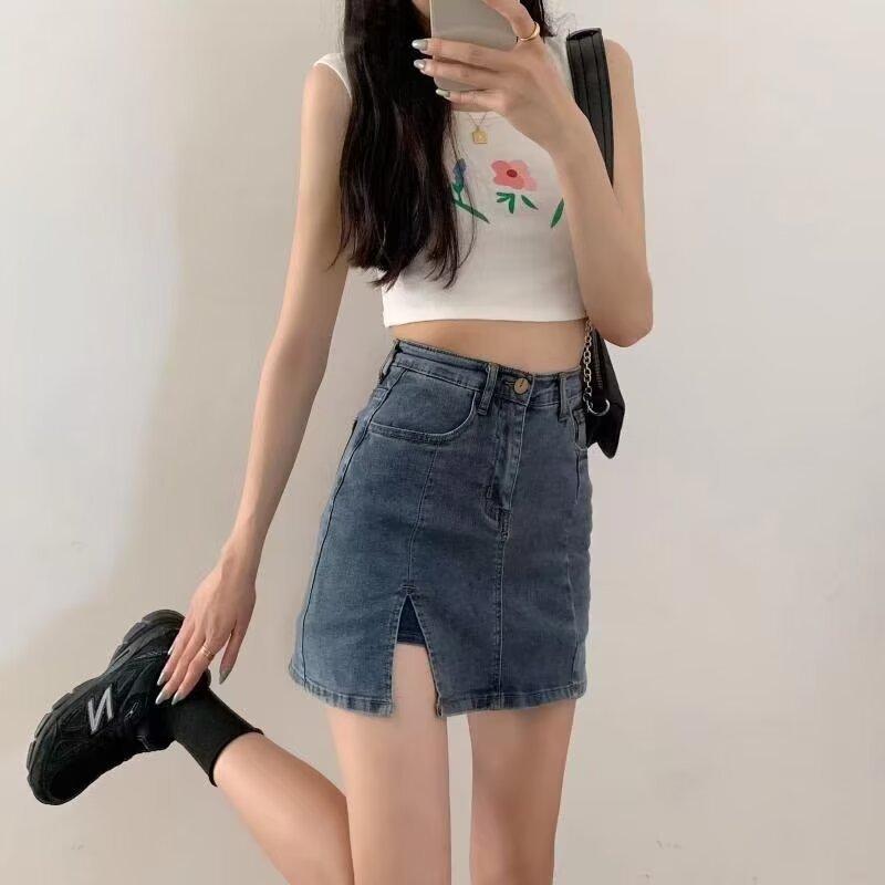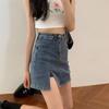 Falda vaquera con abertura para mujer, falda corta de verano para chica sexy 2024, nuevo estilo, falda a la cadera, falda de cintura alta, falda ajustada de línea A