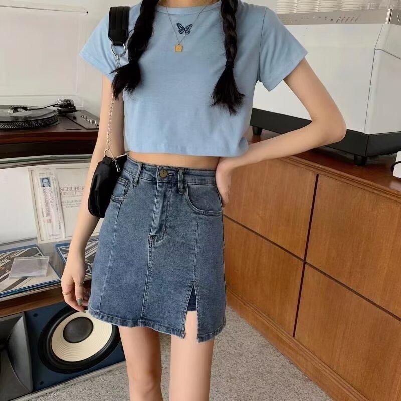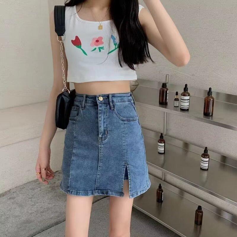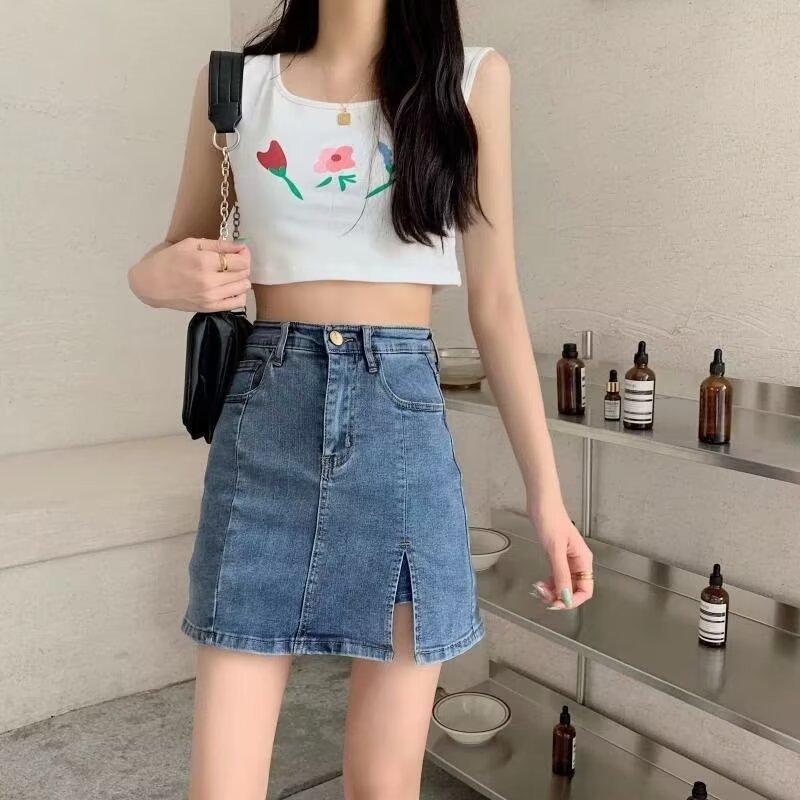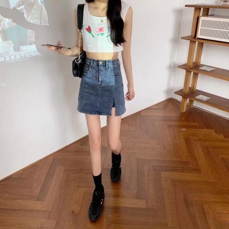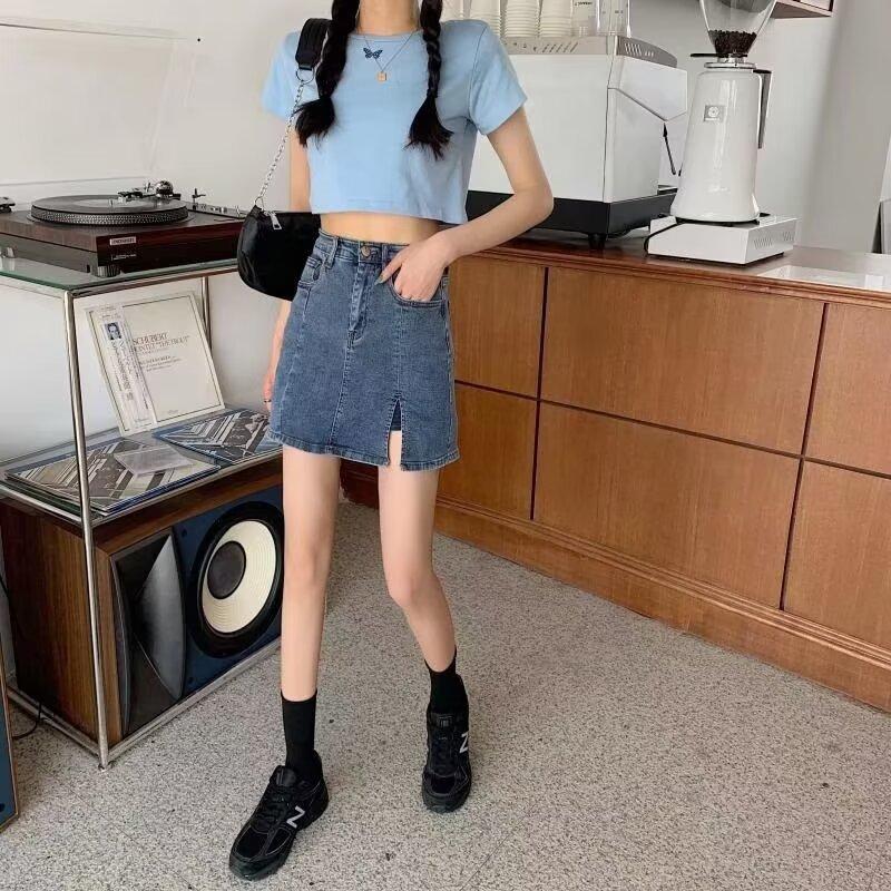 Falda vaquera con abertura para mujer, falda corta de verano para chica sexy 2024, nuevo estilo, falda a la cadera, falda de cintura alta, falda ajustada de línea A