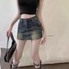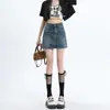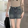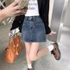 Falda corta de mezclilla para mujer, verano 2024, nueva, cintura alta, adelgazante, pequeña, línea A, falda de cadera, falda de media longitud, hakama