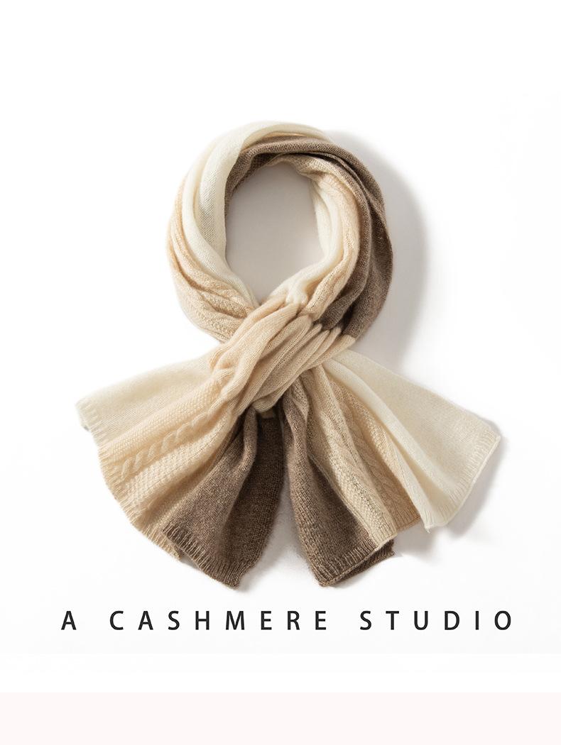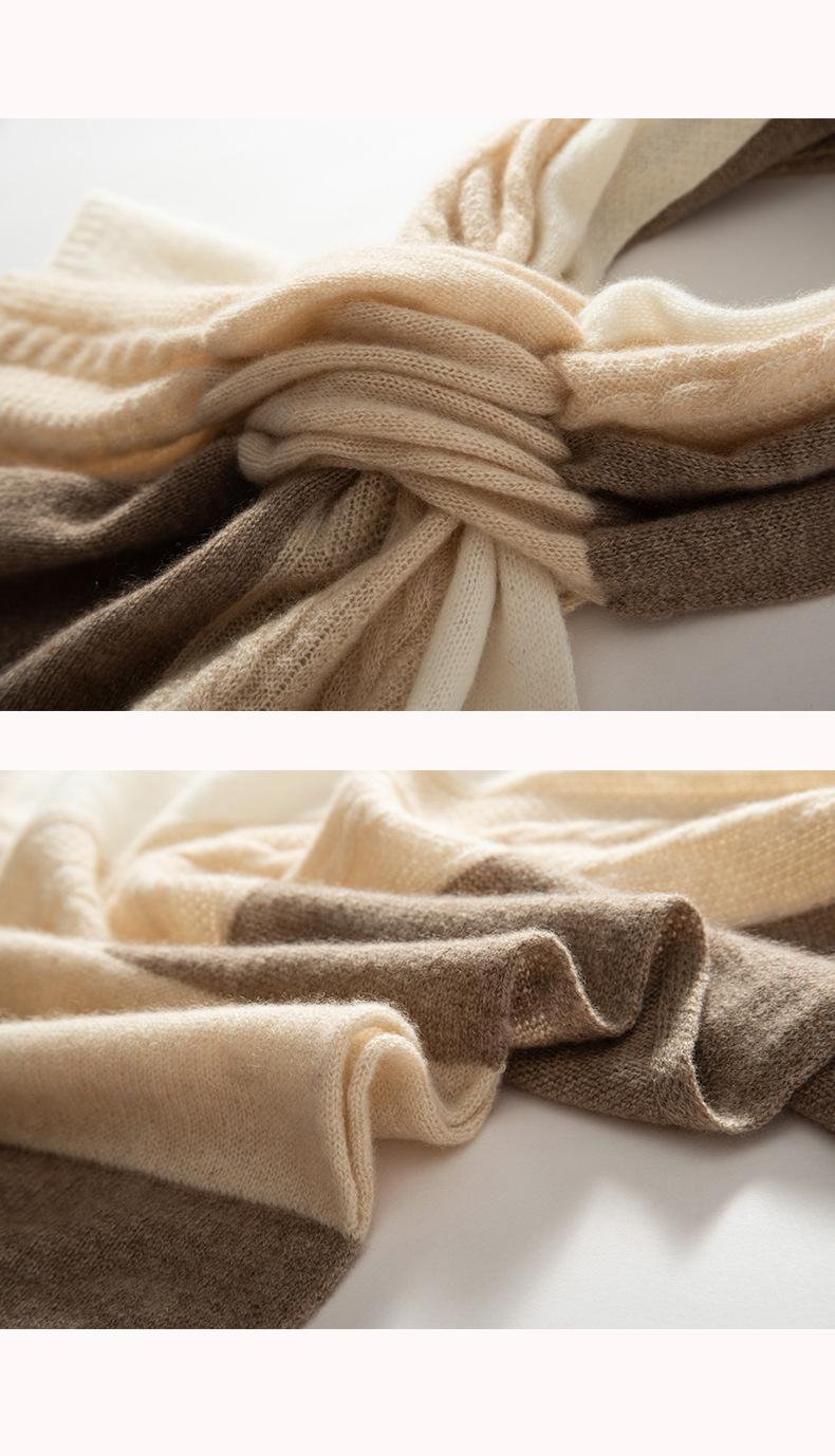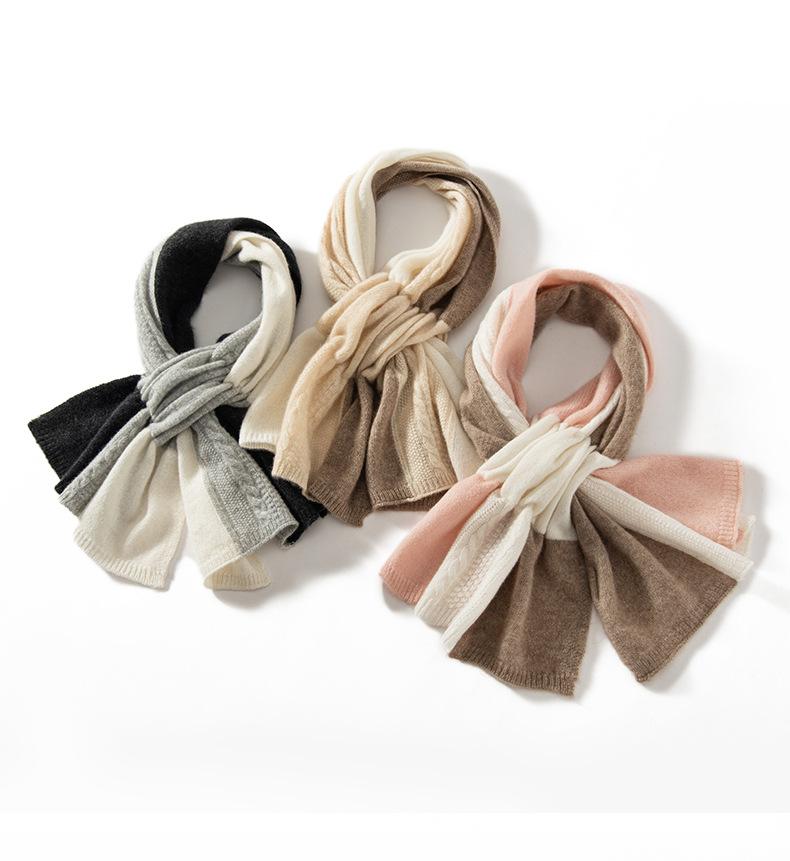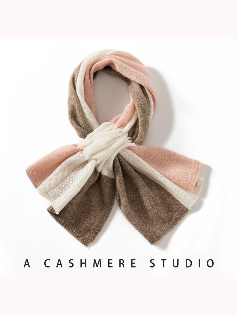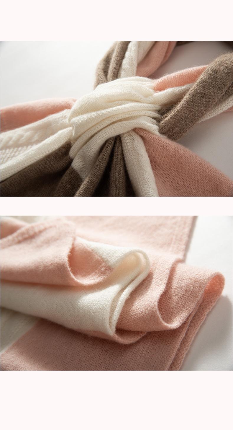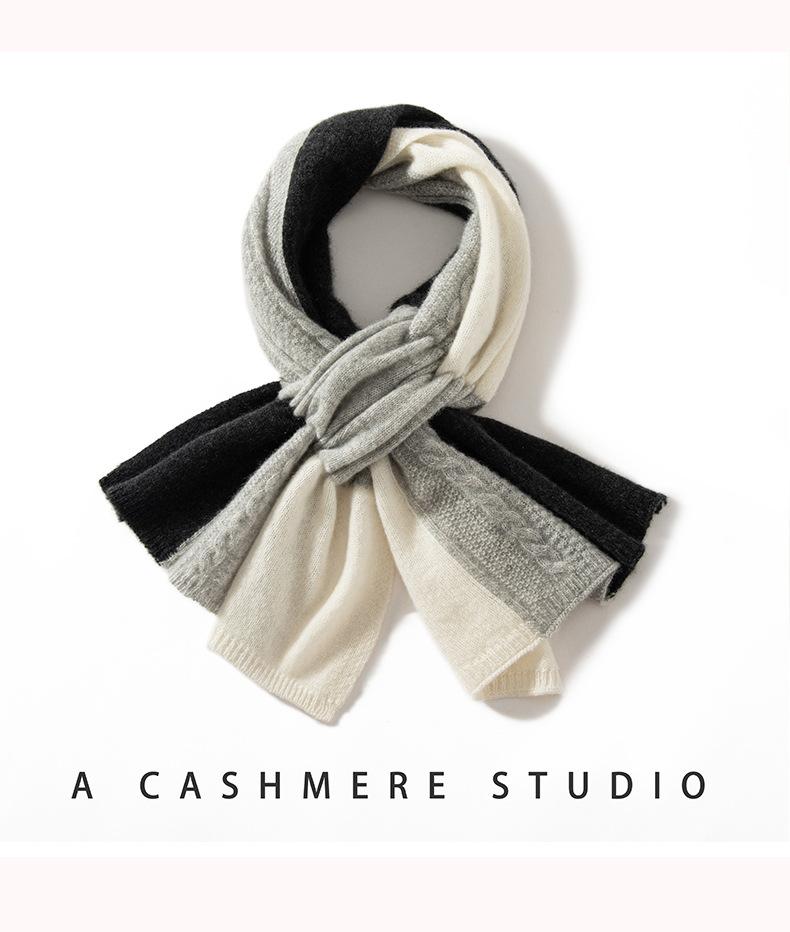 Bufanda de Cachemira 100% Pura para Mujer Otoño e Invierno Moda Cálida Tejida Combinación Tricolor Bufanda de Moda