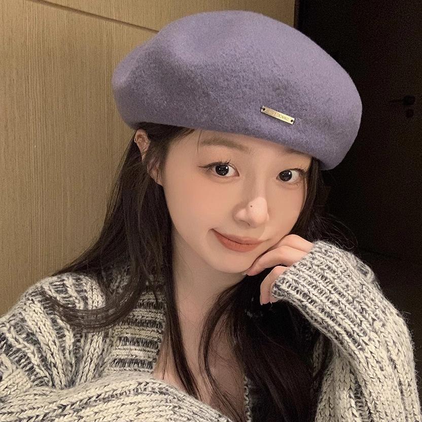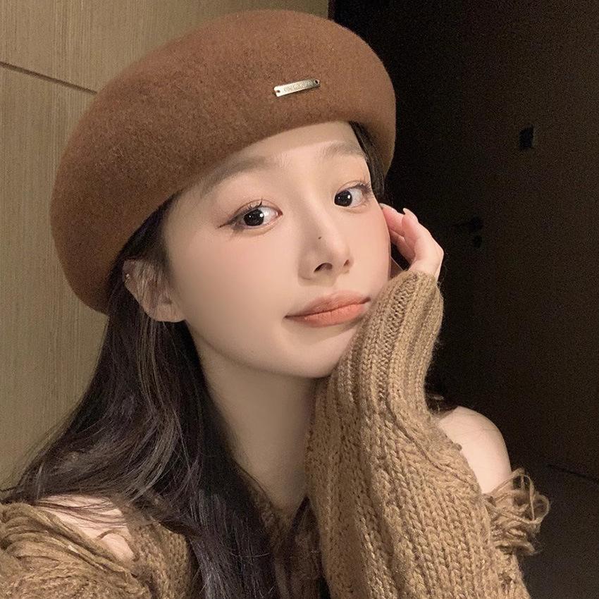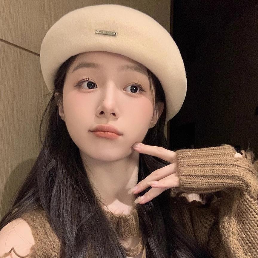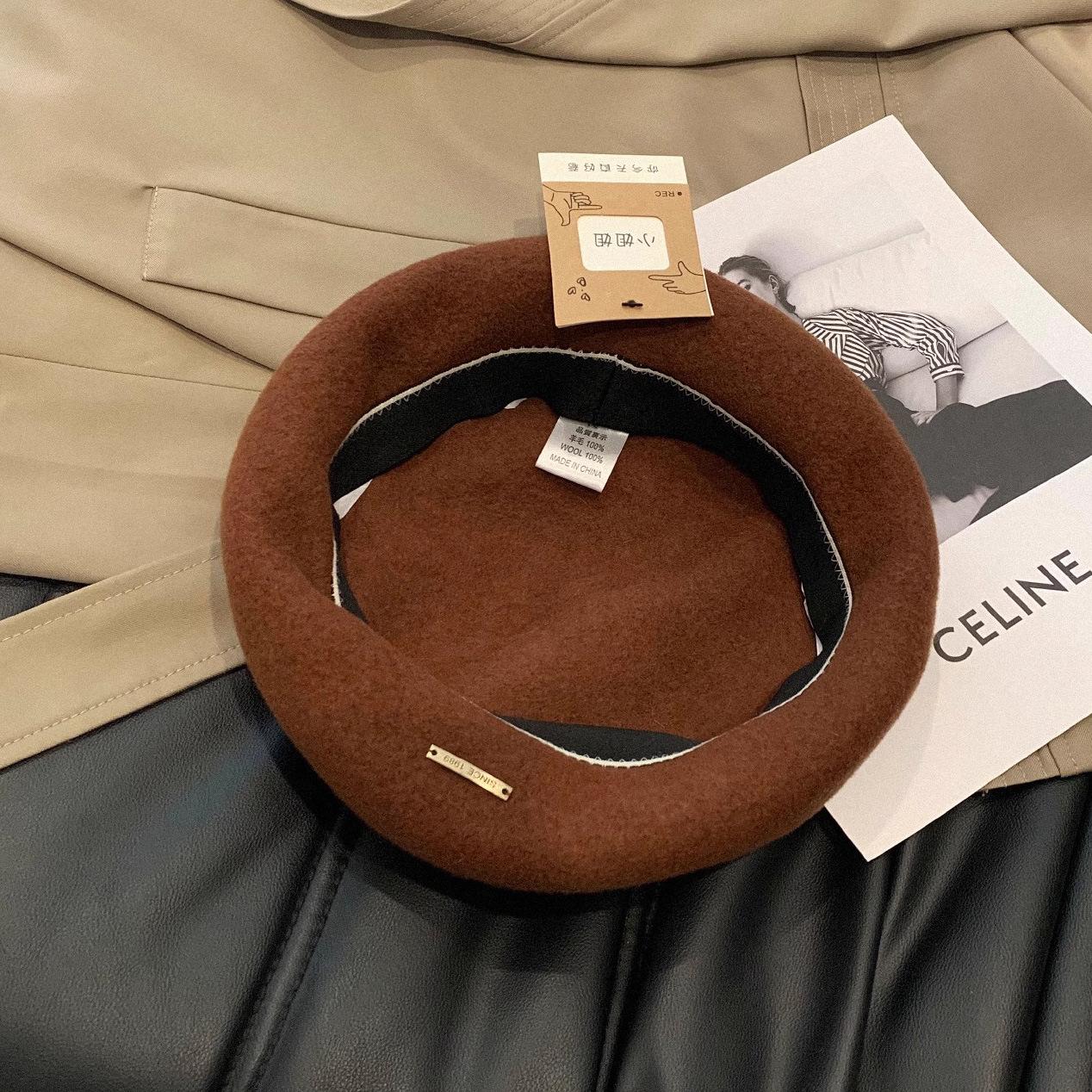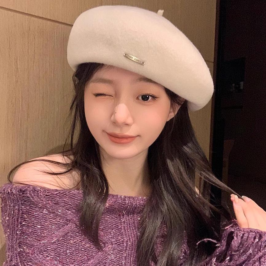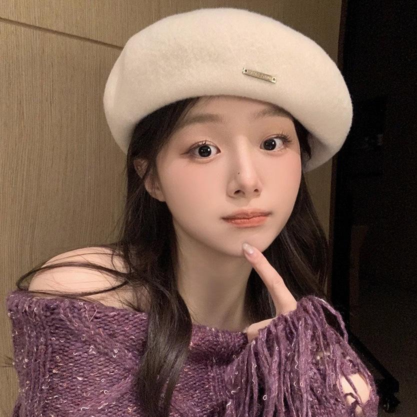 Boina de Lana Gruesa y Pesada de Diseñador para Mujer, Invierno Cálido, a Prueba de Frío, Gorra de Pintor para Mujer, Versátil, Octogonal Tridimensional