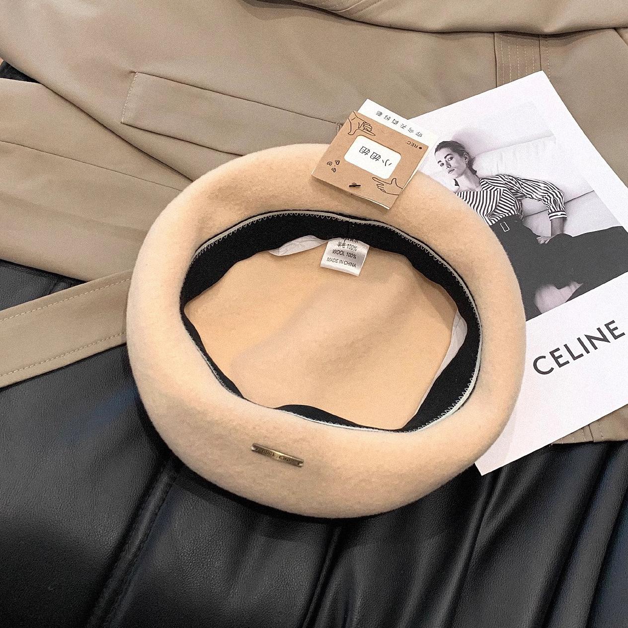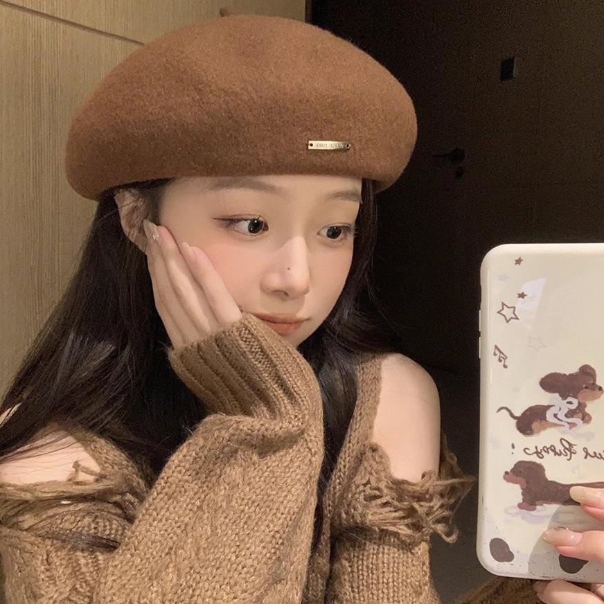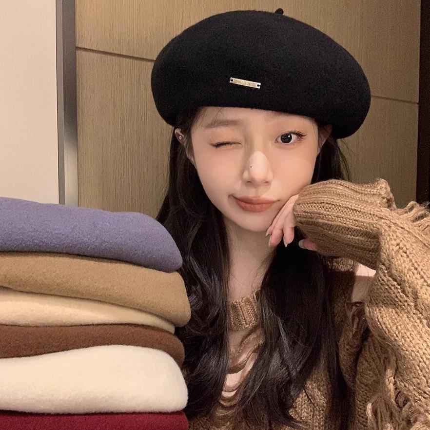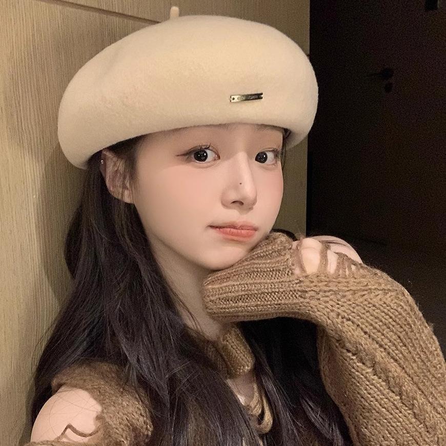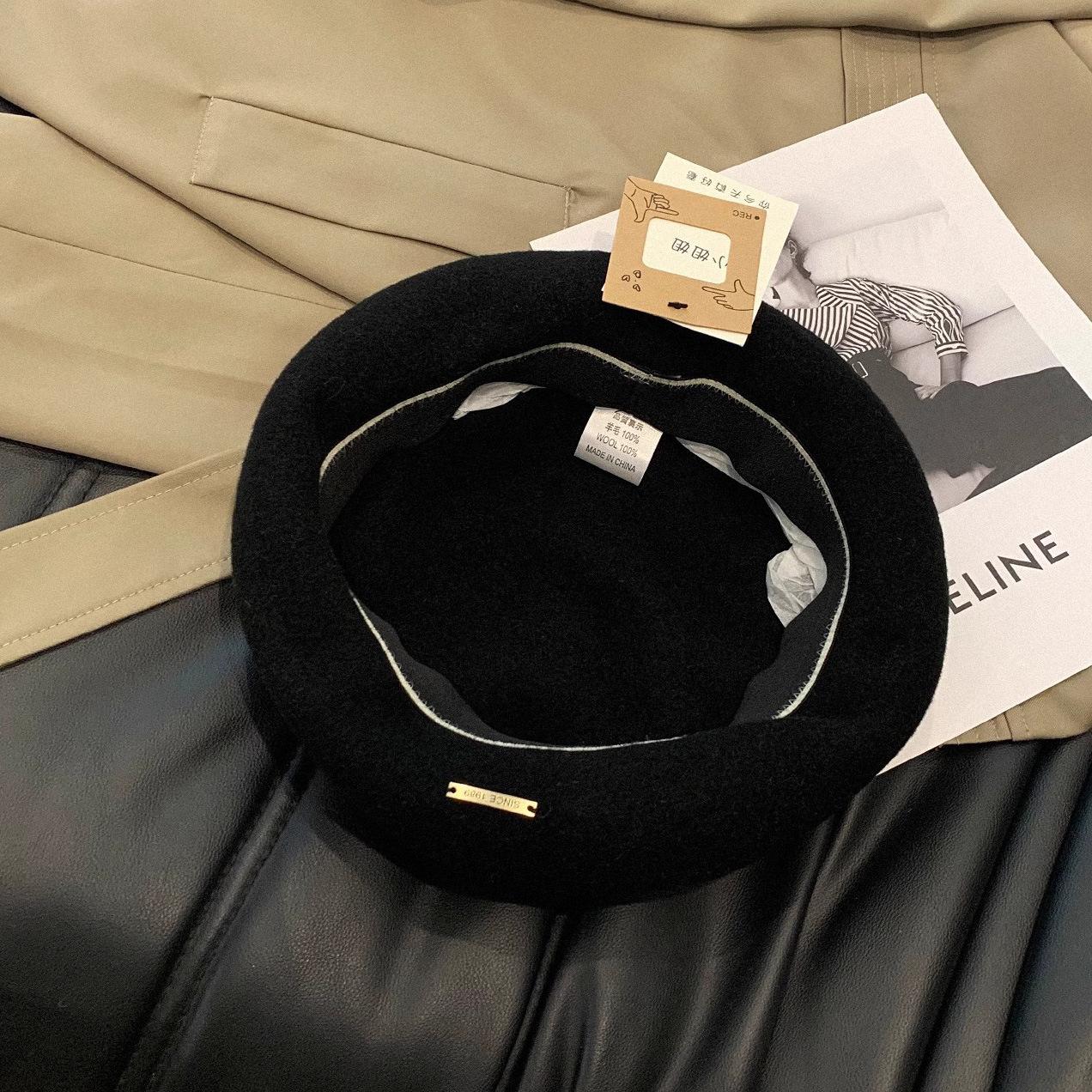 Boina de Lana Gruesa y Pesada de Diseñador para Mujer, Invierno Cálido, a Prueba de Frío, Gorra de Pintor para Mujer, Versátil, Octogonal Tridimensional