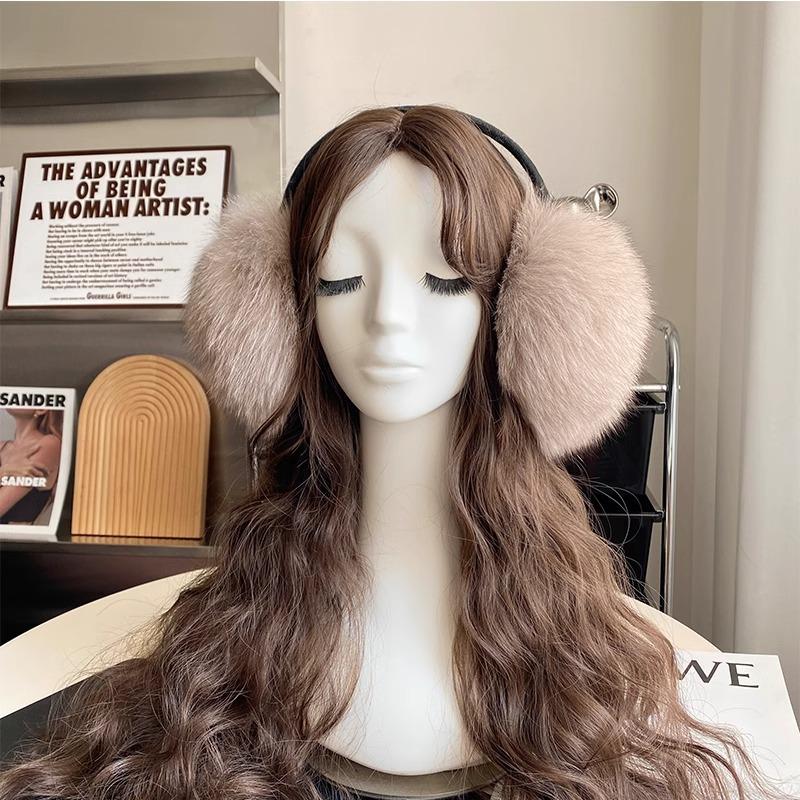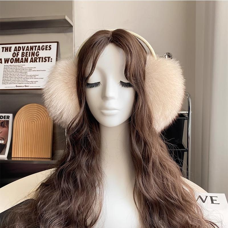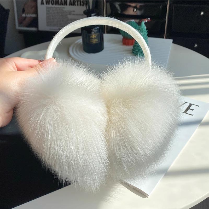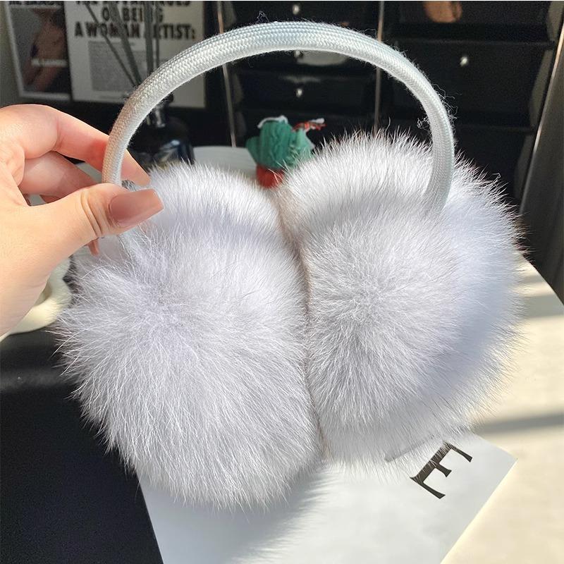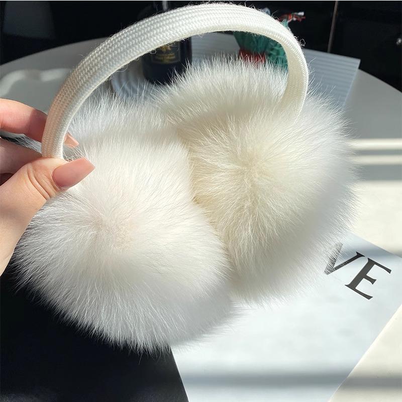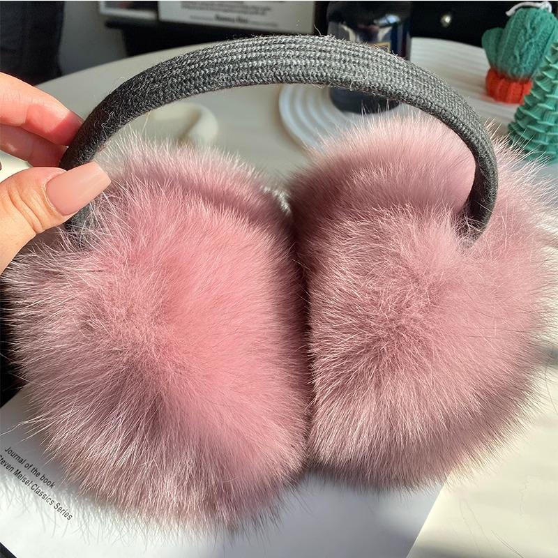 Orejeras de piel de zorro, lindas orejeras de felpa coreanas, protección para los oídos de invierno, orejeras de piel cálidas, orejeras anticongelantes para mujeres