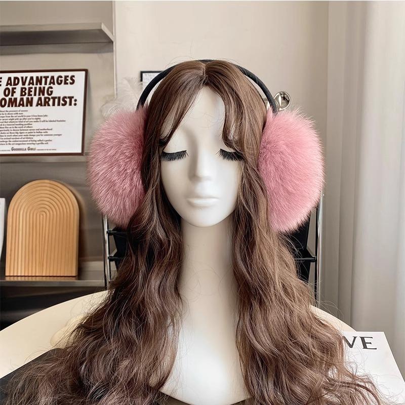 Orejeras de piel de zorro orejeras coreanas lindas de felpa invierno protección para los oídos cálidas peludas orejeras anticongelantes para mujer