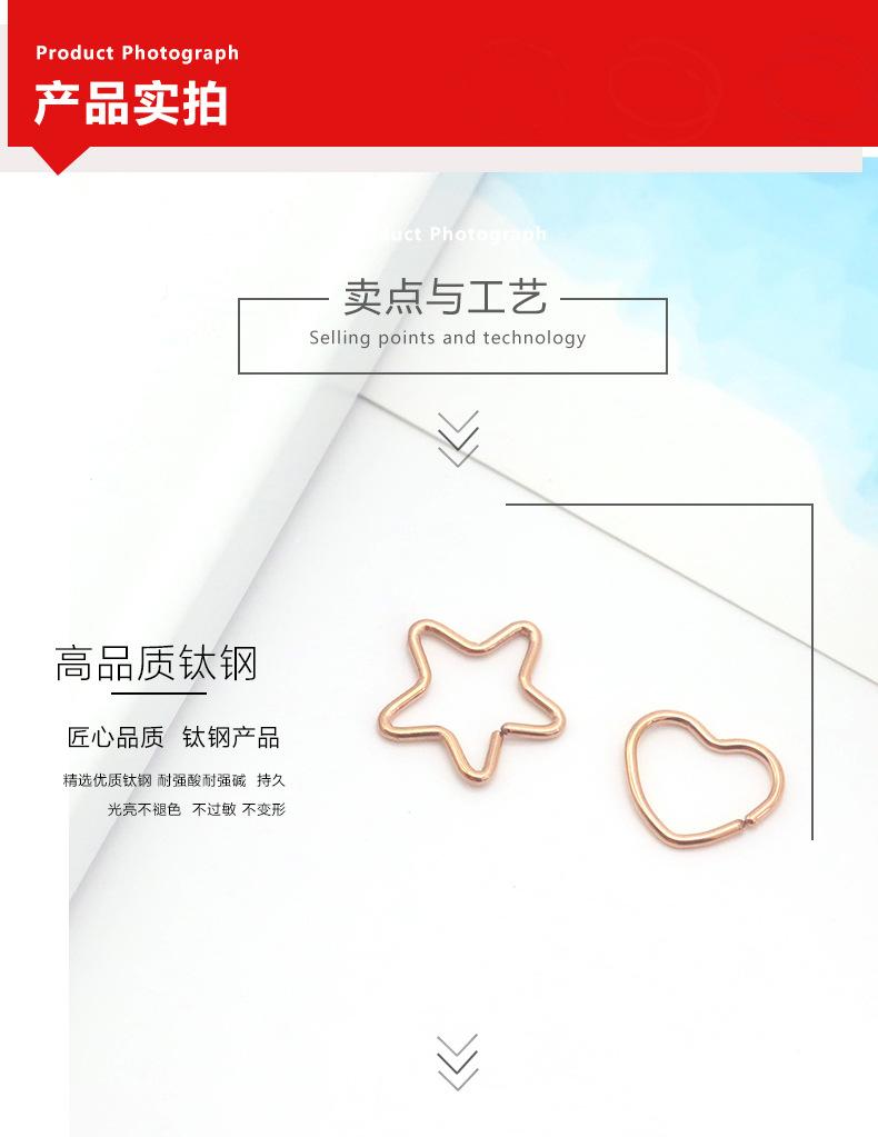 Anillo abierto de acero inoxidable con forma de corazón y estrella, joyería transfronteriza, aretes de amor, aretes de estrellas, aretes sencillos europeos y americanos