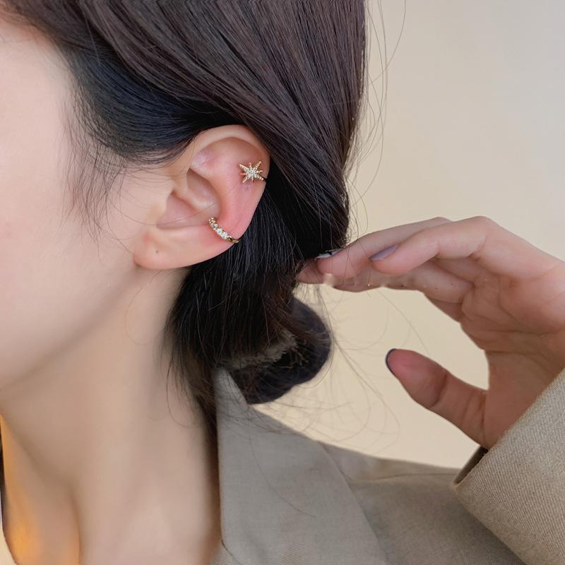 Set de tres piezas estrella de seis puntas clip para la oreja sin agujero para la oreja para mujer nicho lujo ligero sentido de alta gama nuevos aretes de estrella clip para la oreja aretes