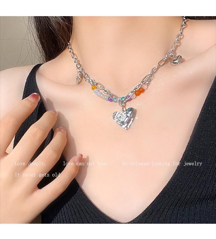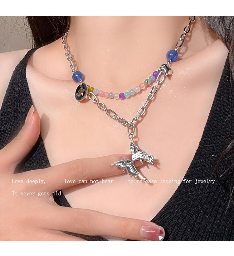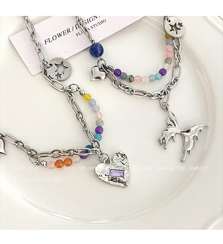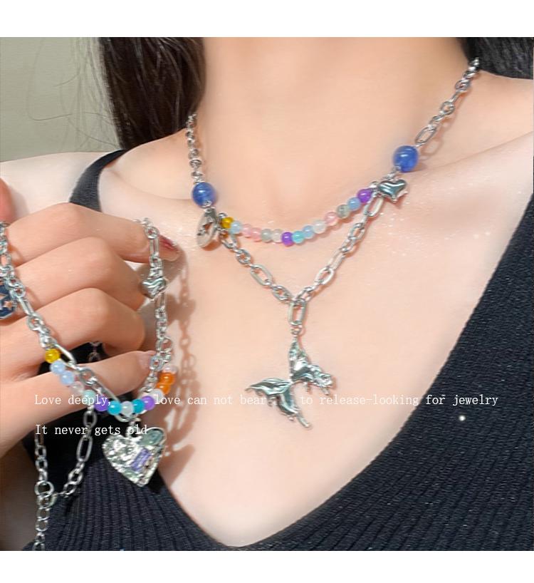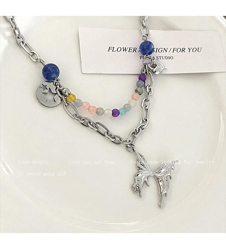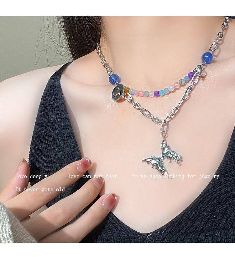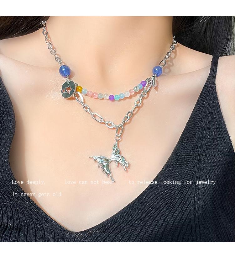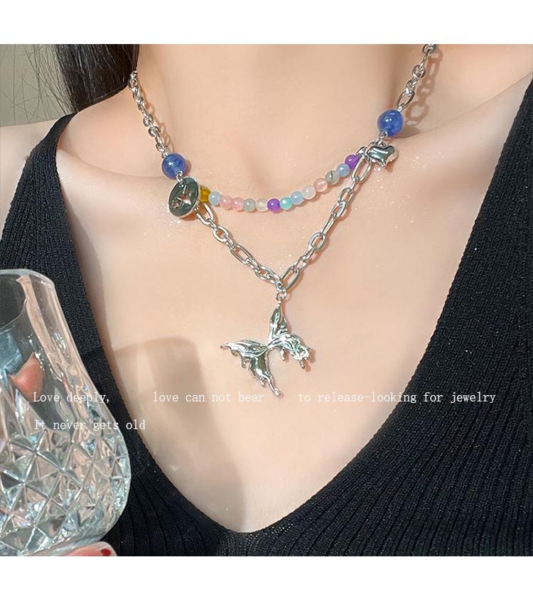 Collar con colgante de mariposa Color Love para mujer, diseño de nicho, sentido de la moda, cuentas, estilo Spice Girl dulce y cool, cadena para clavícula 2023 nuevo