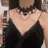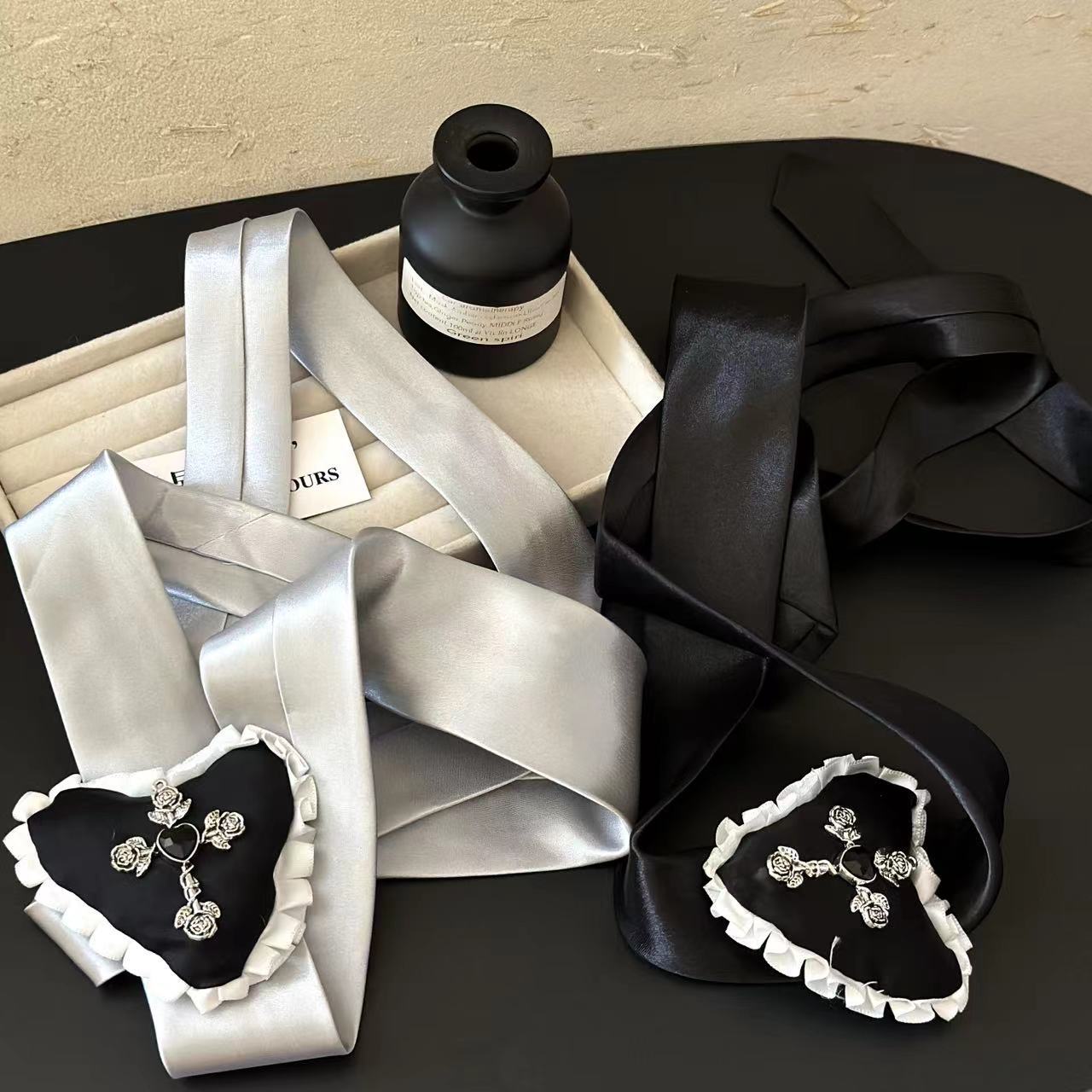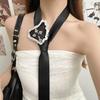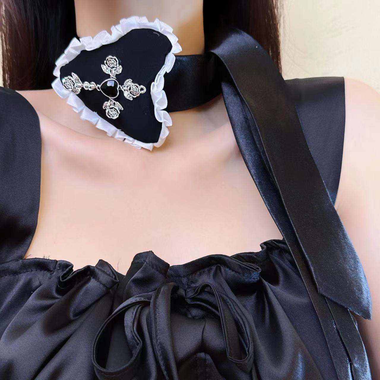 Collar de cadena ajustable para la cintura, largo, con lazo fino y cruz de rosas vintage, con encaje, estilo femenino, moderno y dulce
