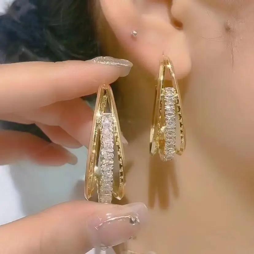 Nueva joyería de Corea del Sur Dongdaemun, pendientes ovalados distintivos de diamantes de imitación, pendientes largos Sweet Mori para mujer.