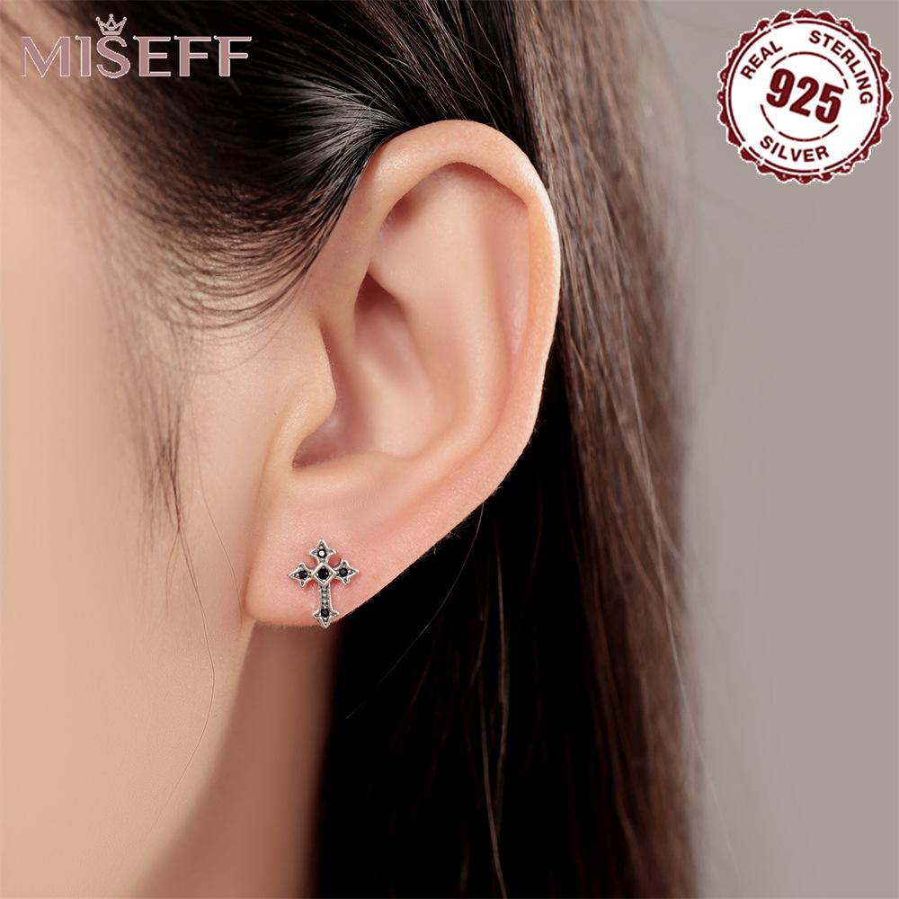 Suministro al por mayor transfronterizo Pendientes de cruz simples clásicos de plata esterlina S925 Pendientes de moda europeos y americanos para mujer