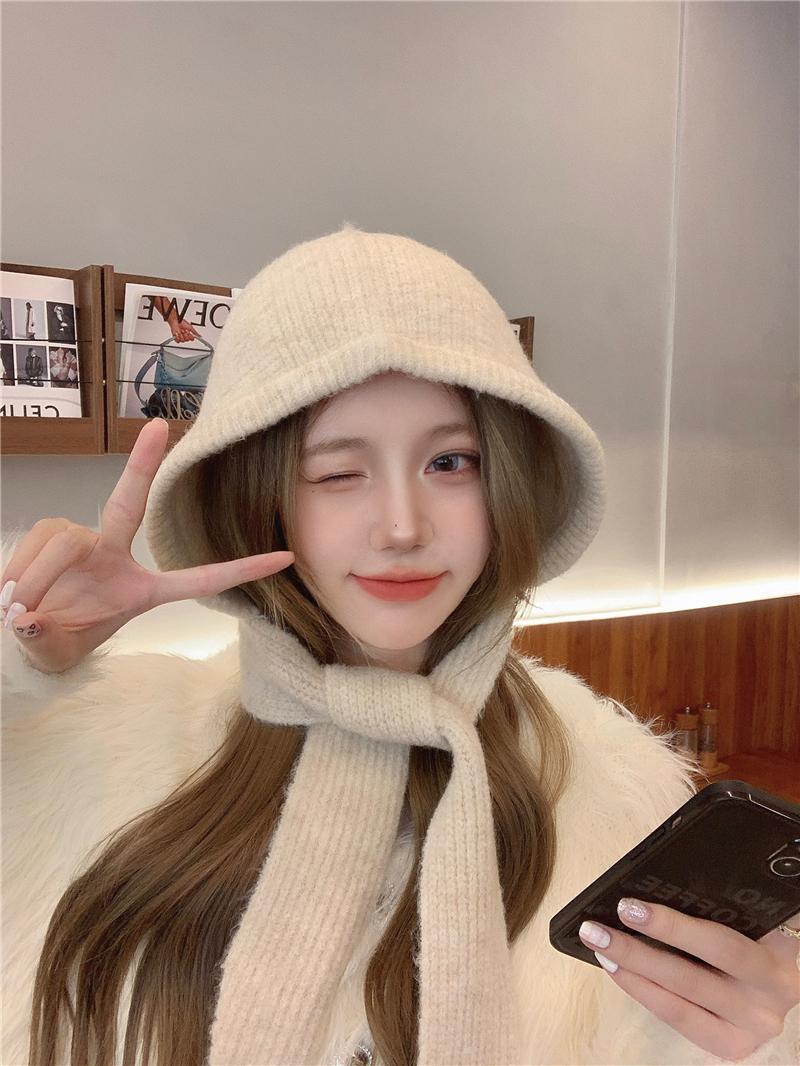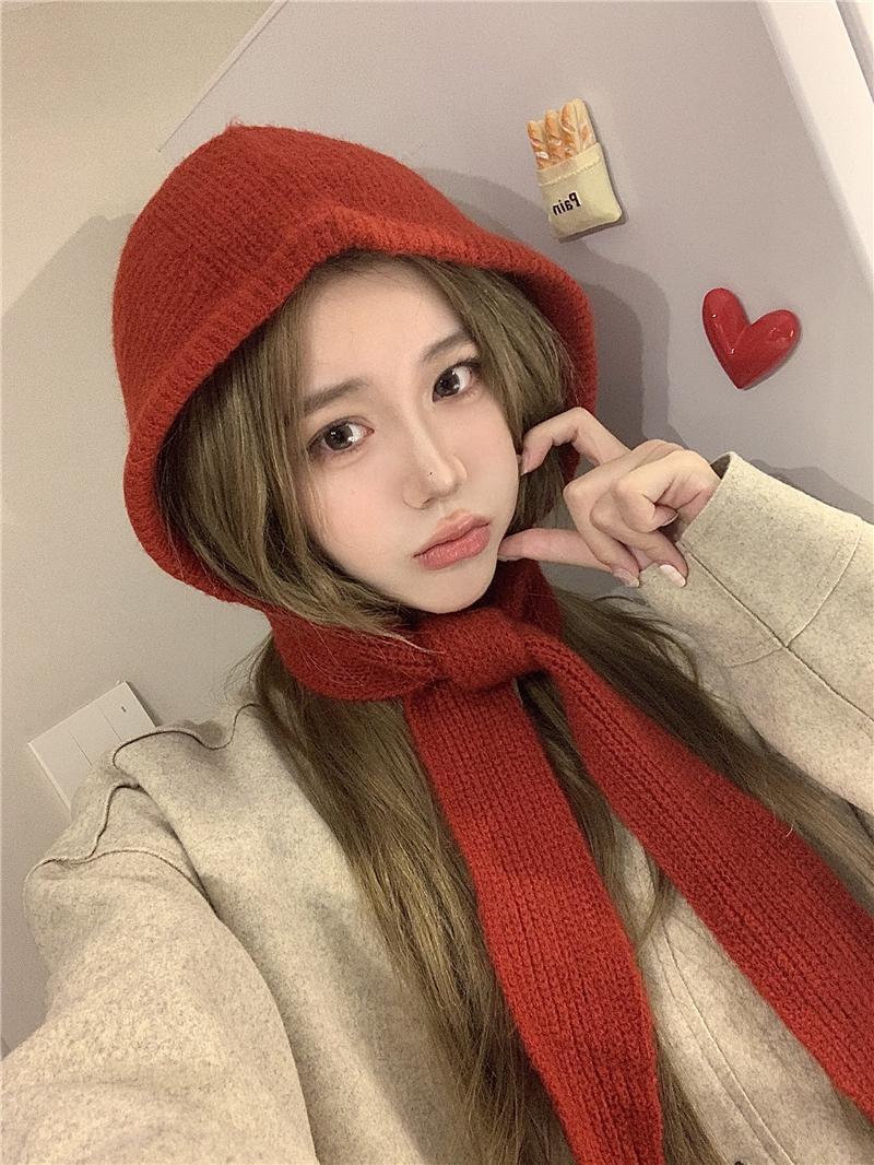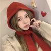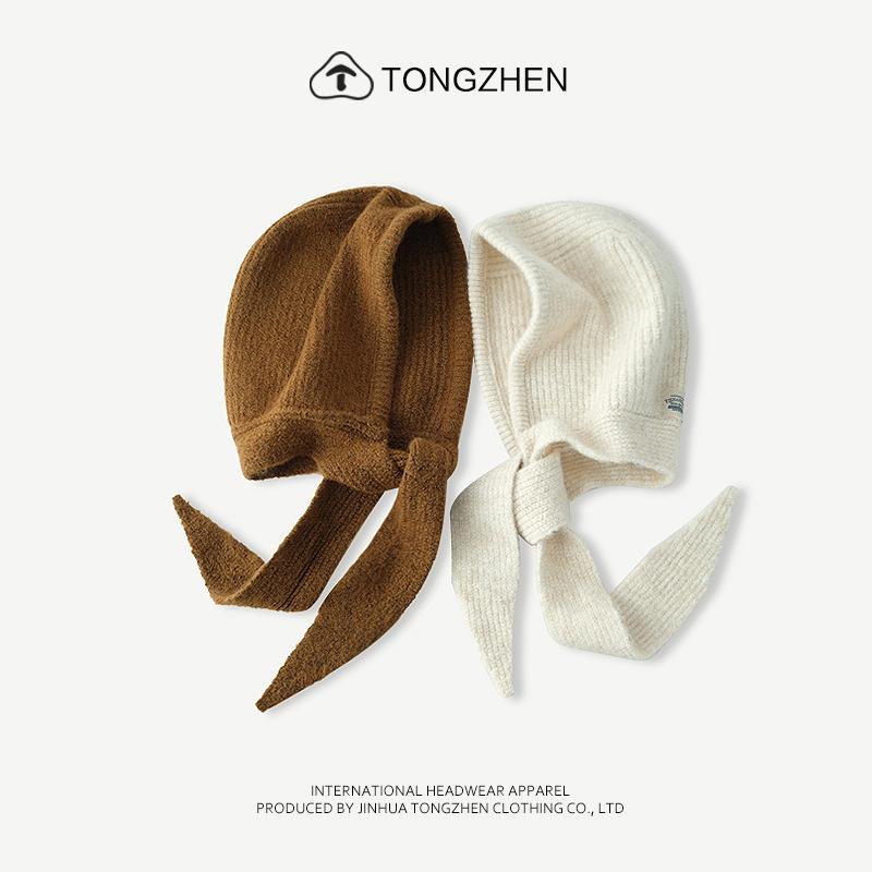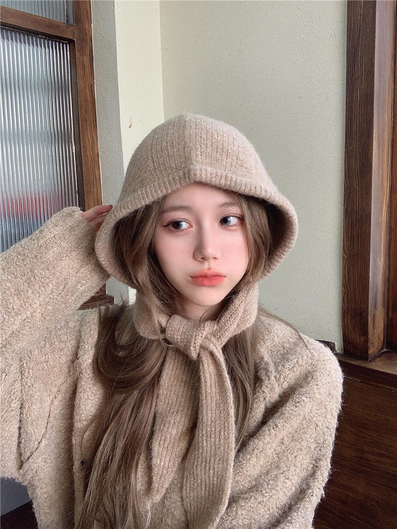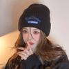 Gorro de cuello pequeño todo en uno para mujer, gorro de punto de celebridad de Internet, etiqueta de tela con letras coreanas, cálido, de lana con protección para las orejas, novedad de 2024