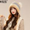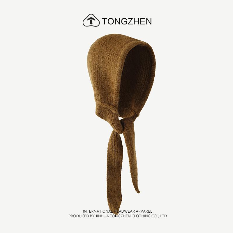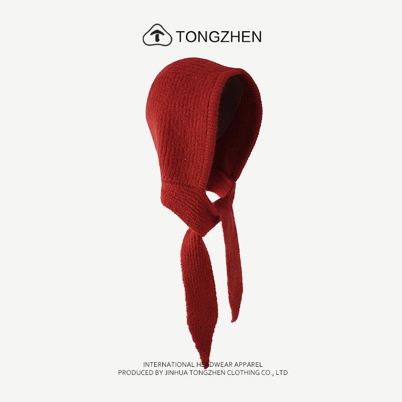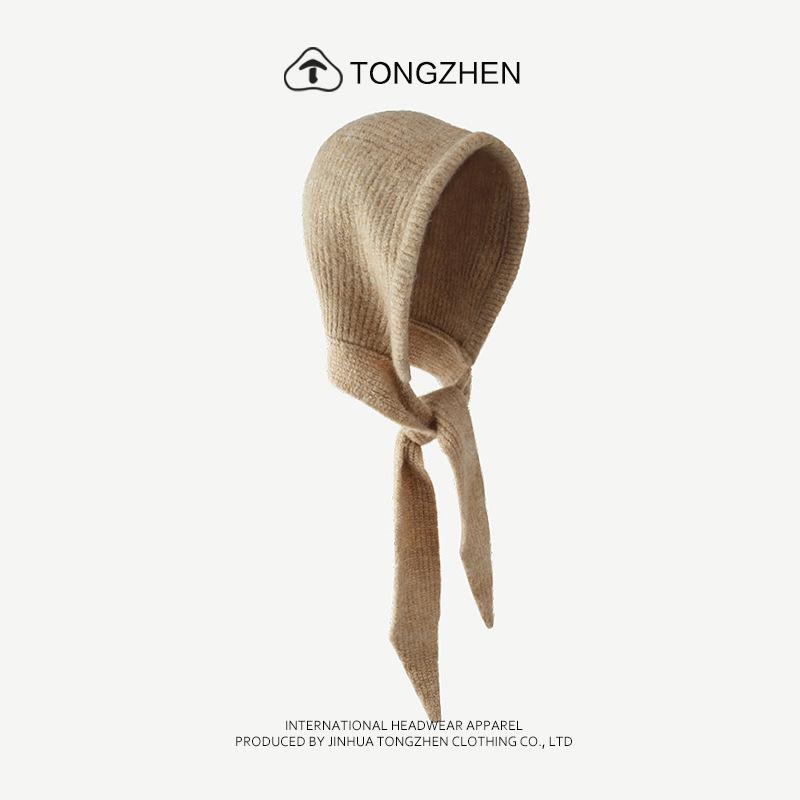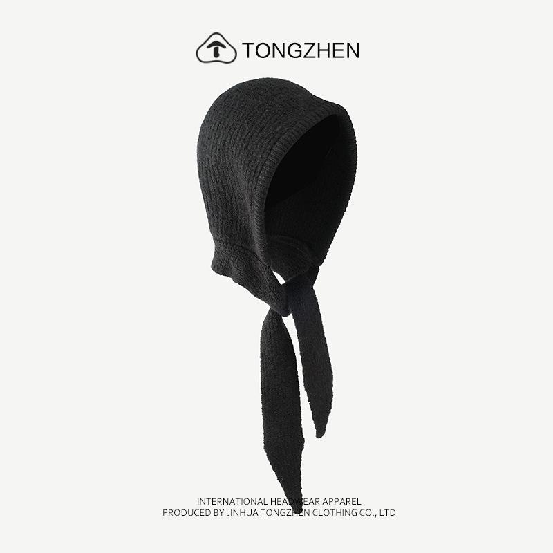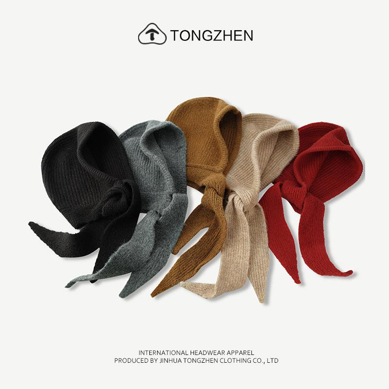 Gorro de cuello pequeño todo en uno para mujer, gorro de punto de celebridad de Internet, etiqueta de tela con letras coreanas, cálido, de lana con protección para las orejas, novedad de 2024