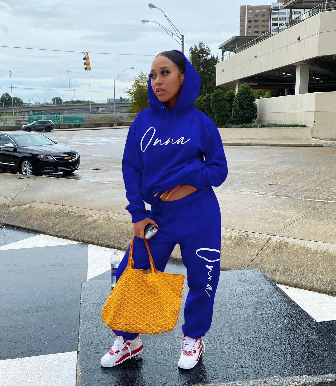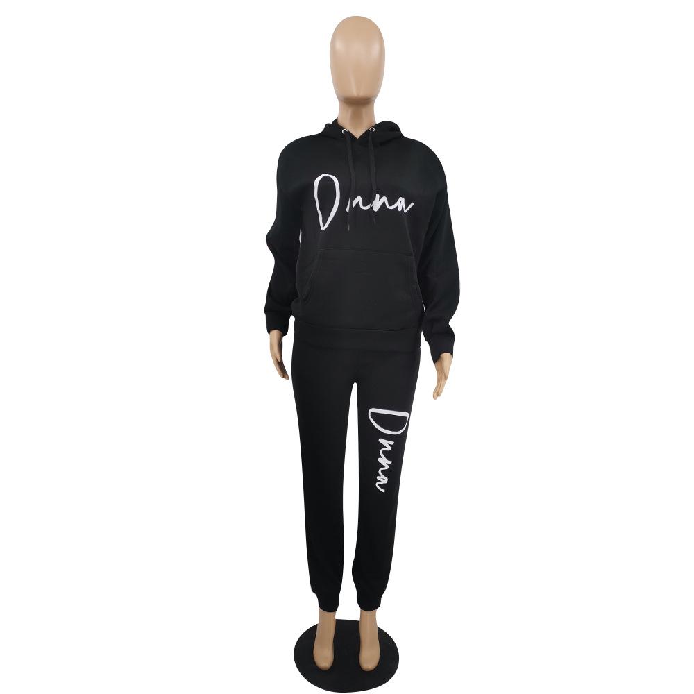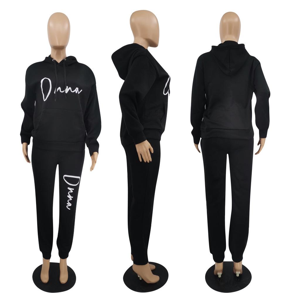 Suéter de dos piezas con capucha de manga larga, pantalones casuales, estilo europeo y americano, primavera, otoño e invierno de 2021 para mujer