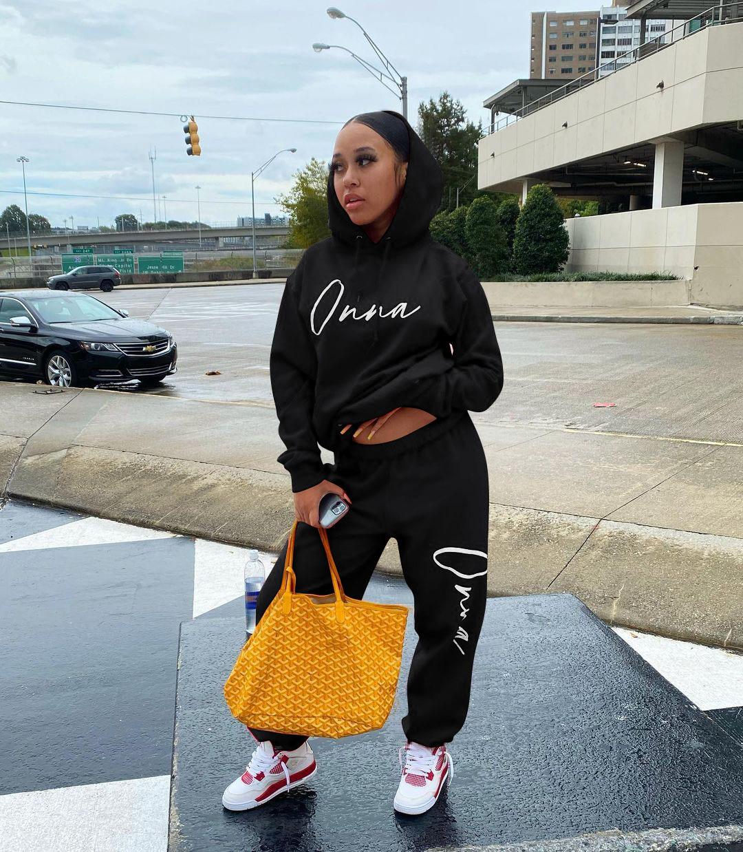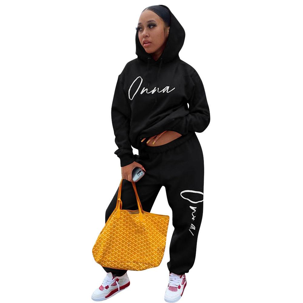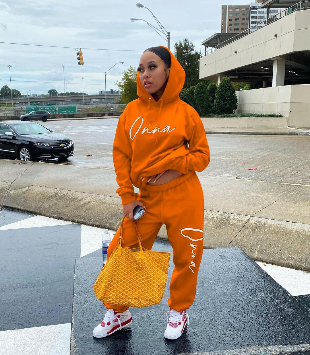 Suéter de dos piezas con capucha de manga larga, pantalones casuales, estilo europeo y americano, primavera, otoño e invierno de 2021 para mujer