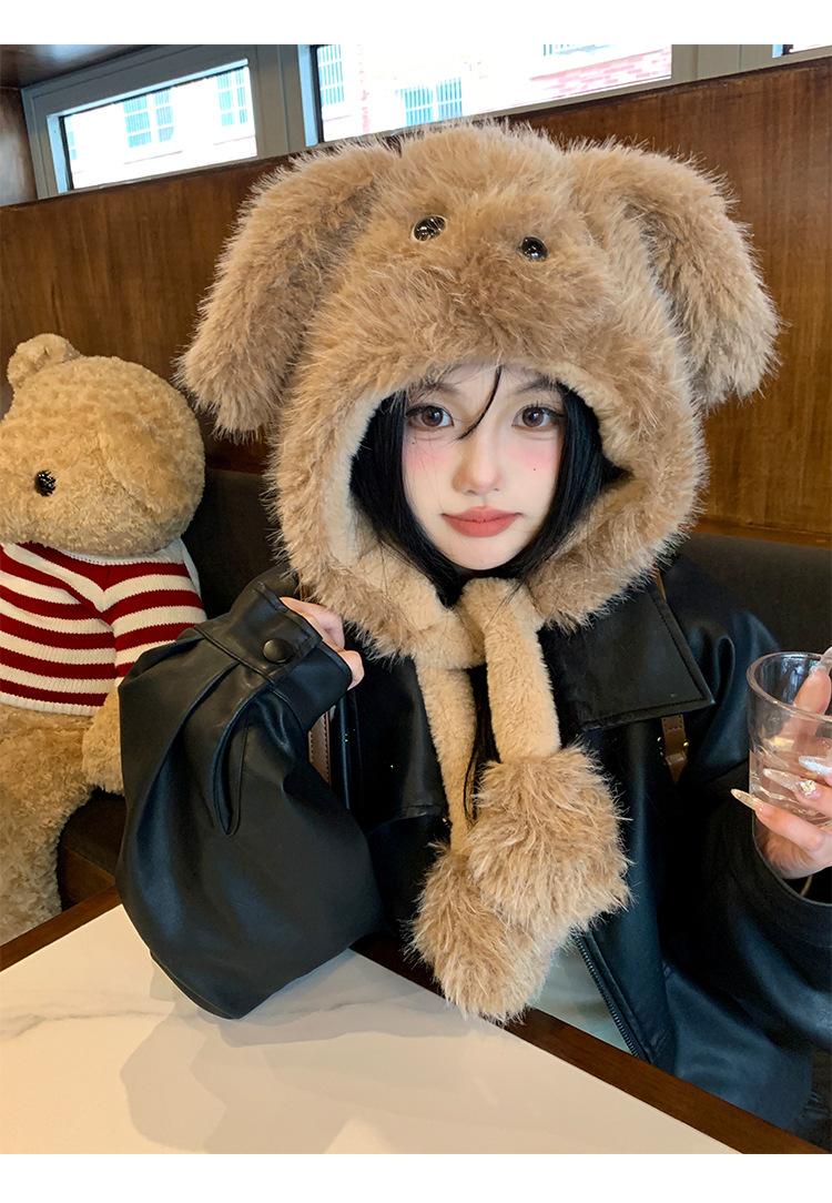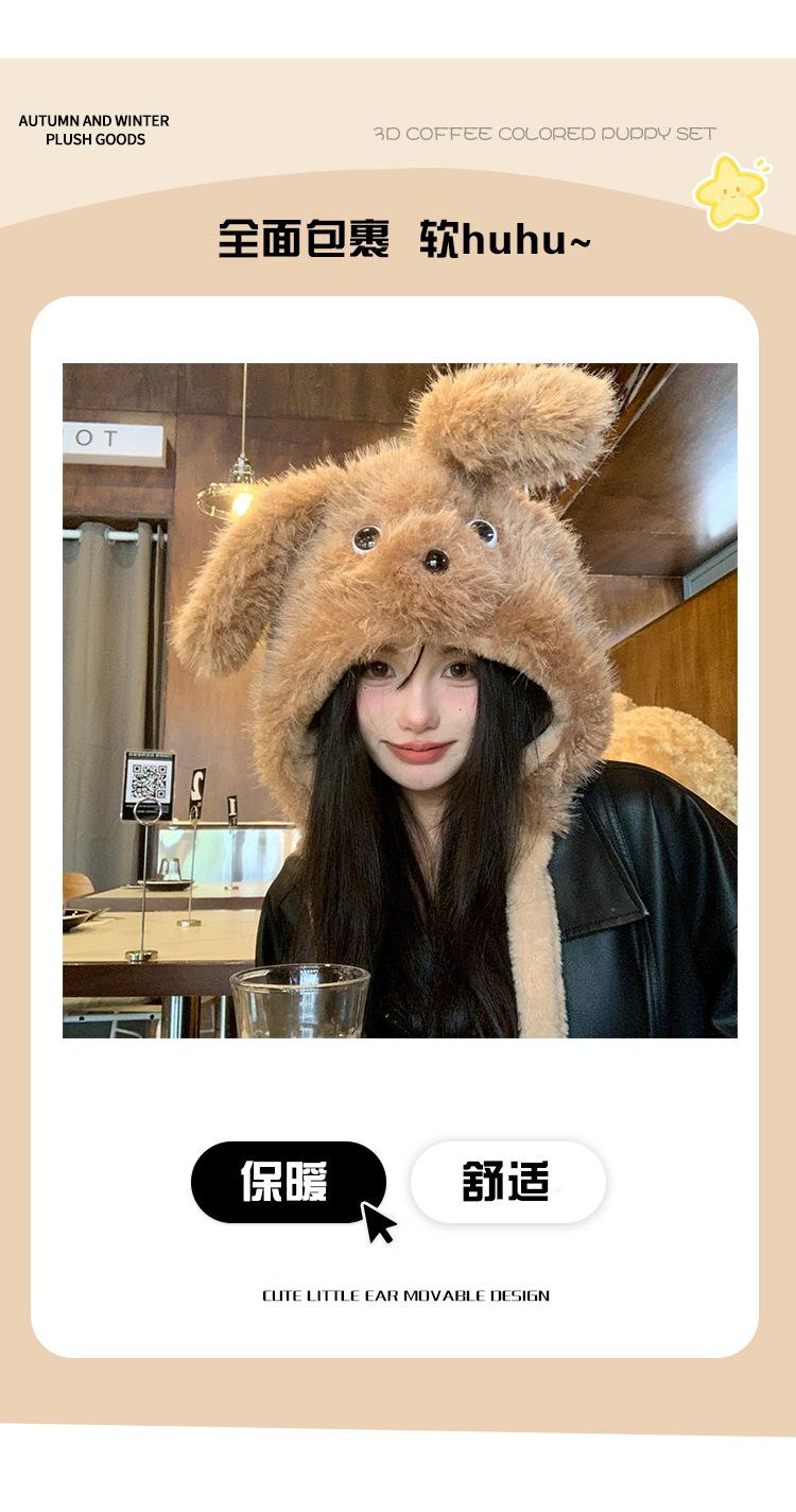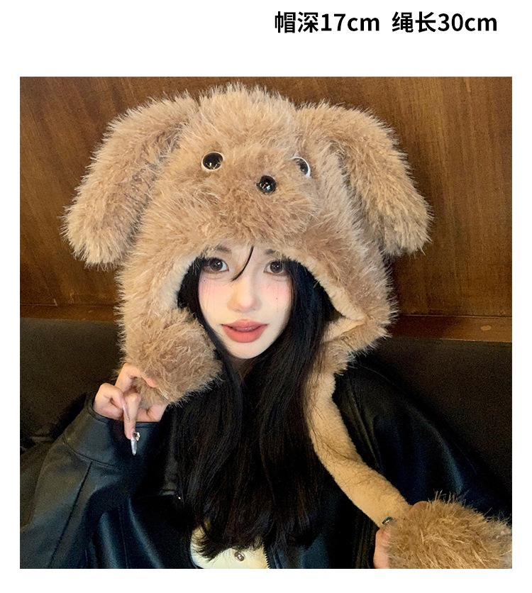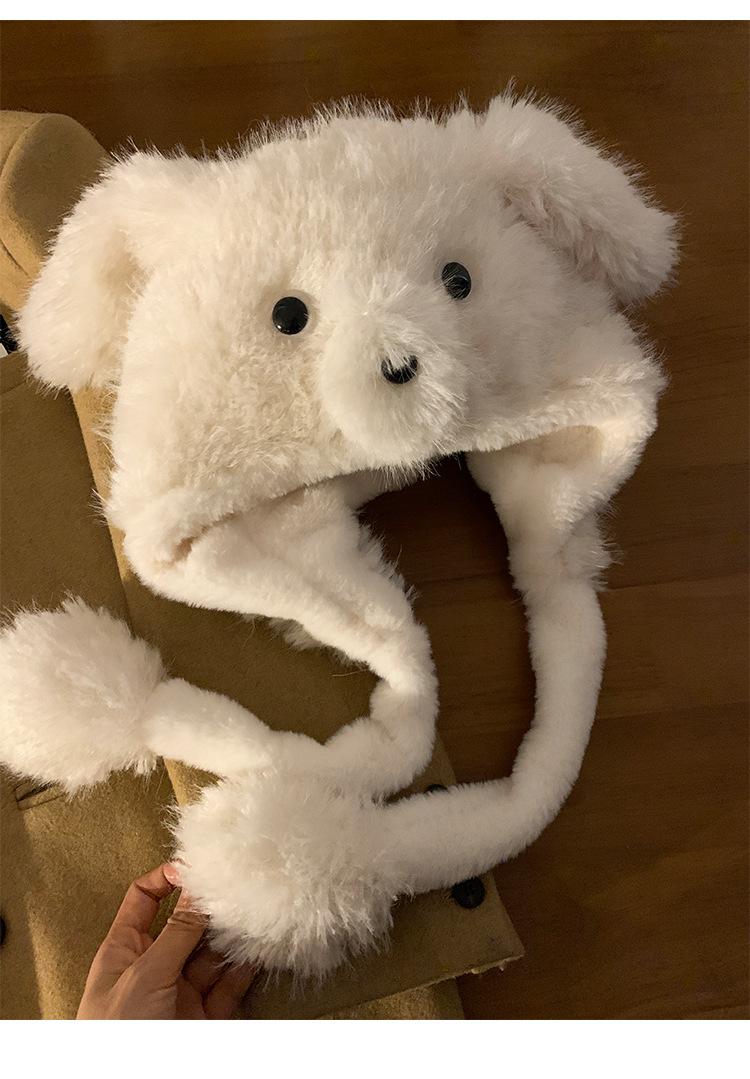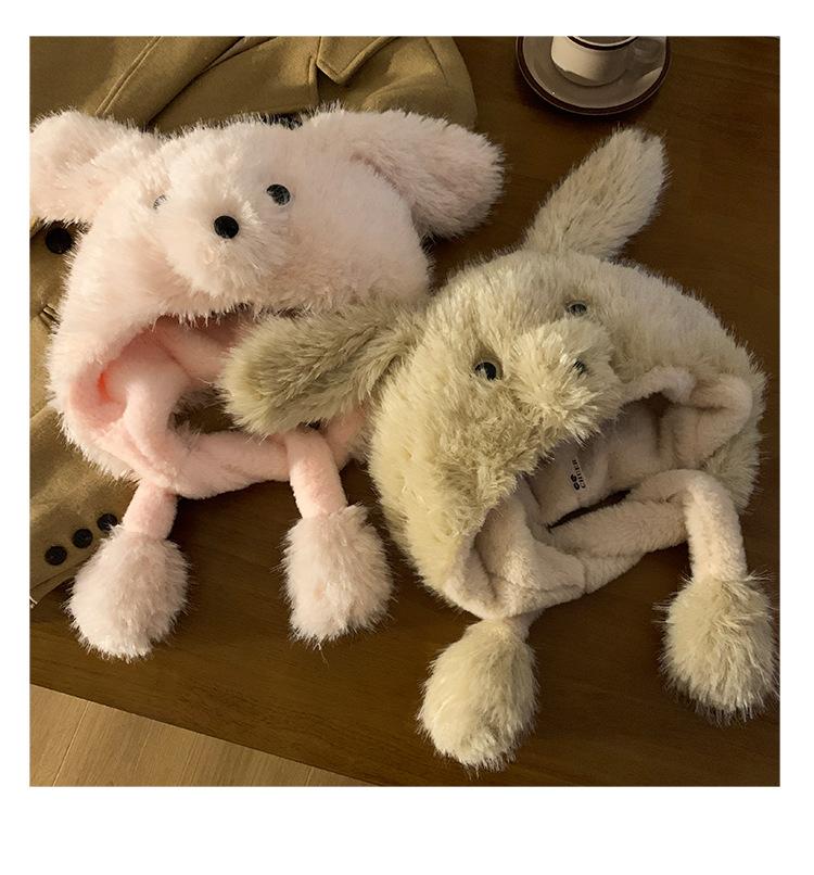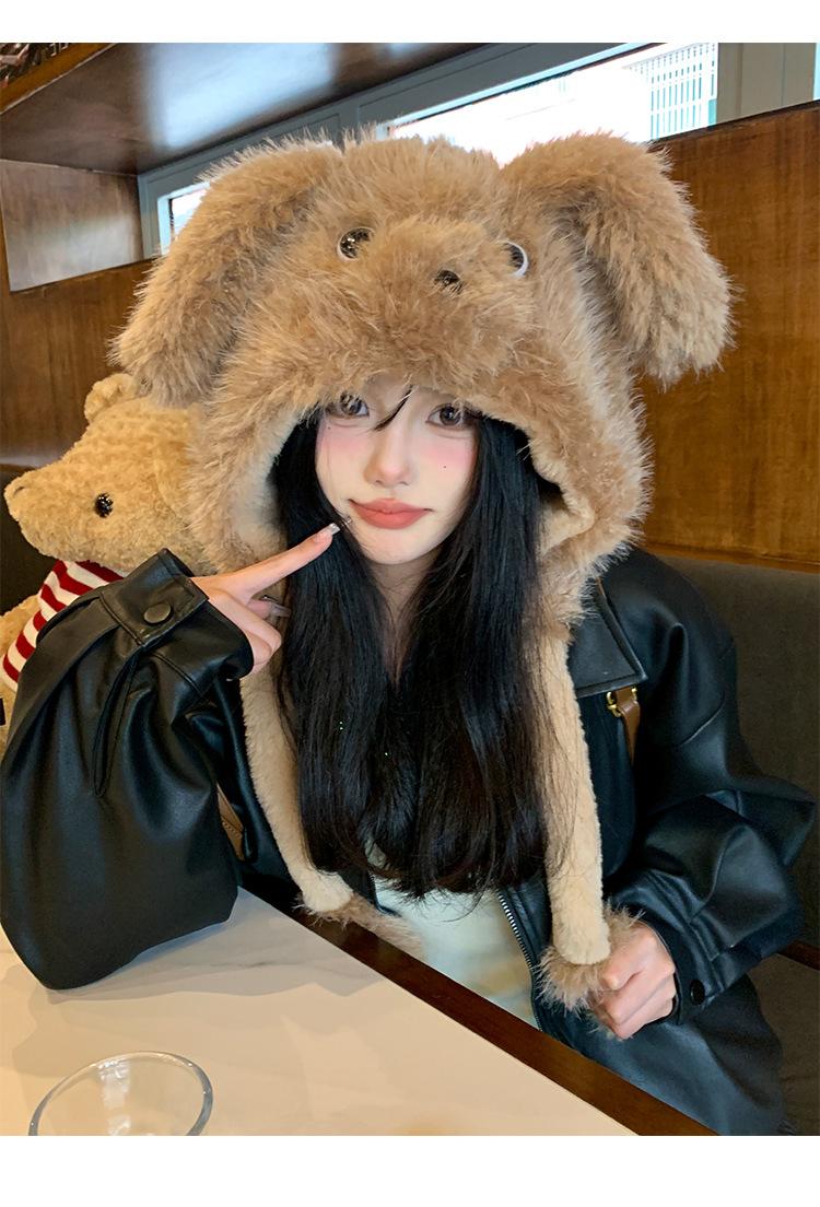 Sombrero de cachorro de simulación lindo de felpa de otoño e invierno, las orejas se moverán, pelo largo con forro polar para protección de orejas, cálido, combina con todo, sombrero Lei Feng moderno