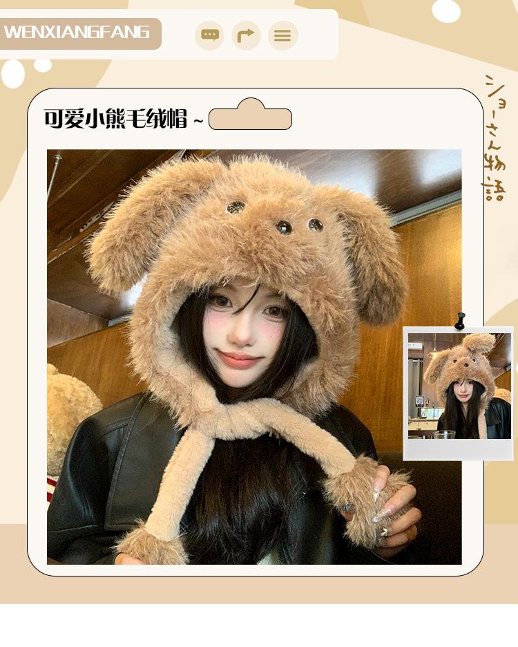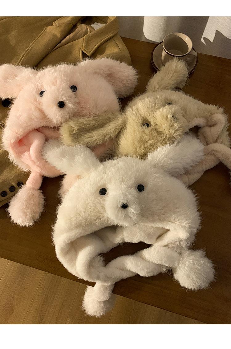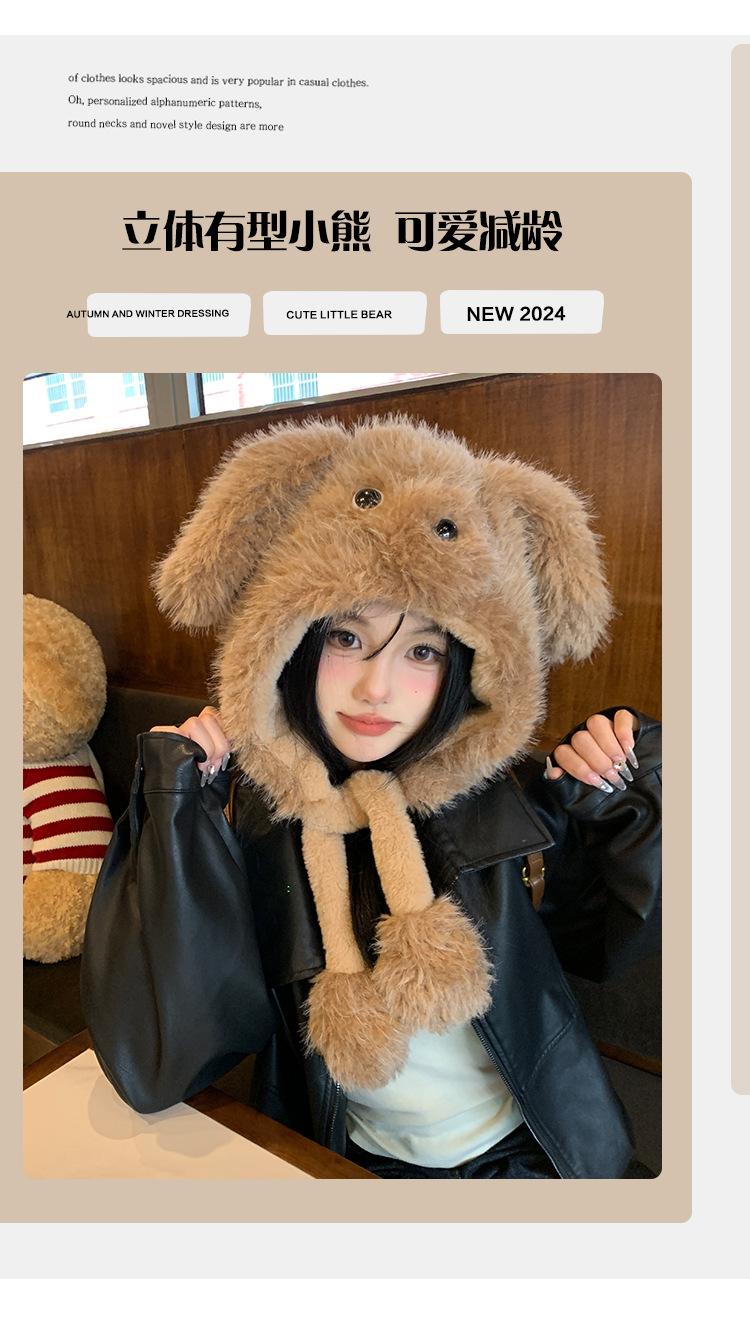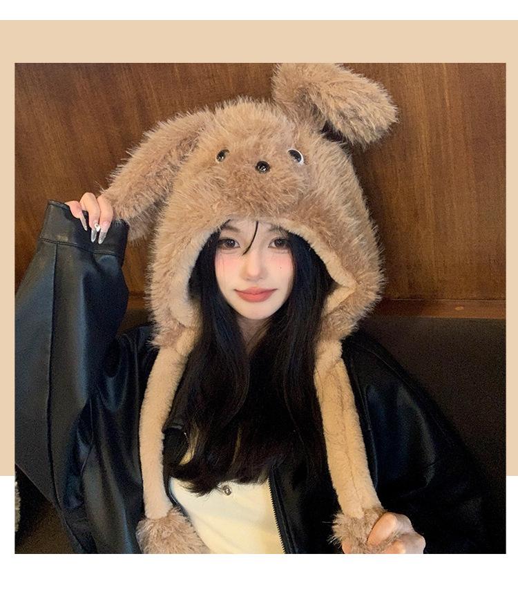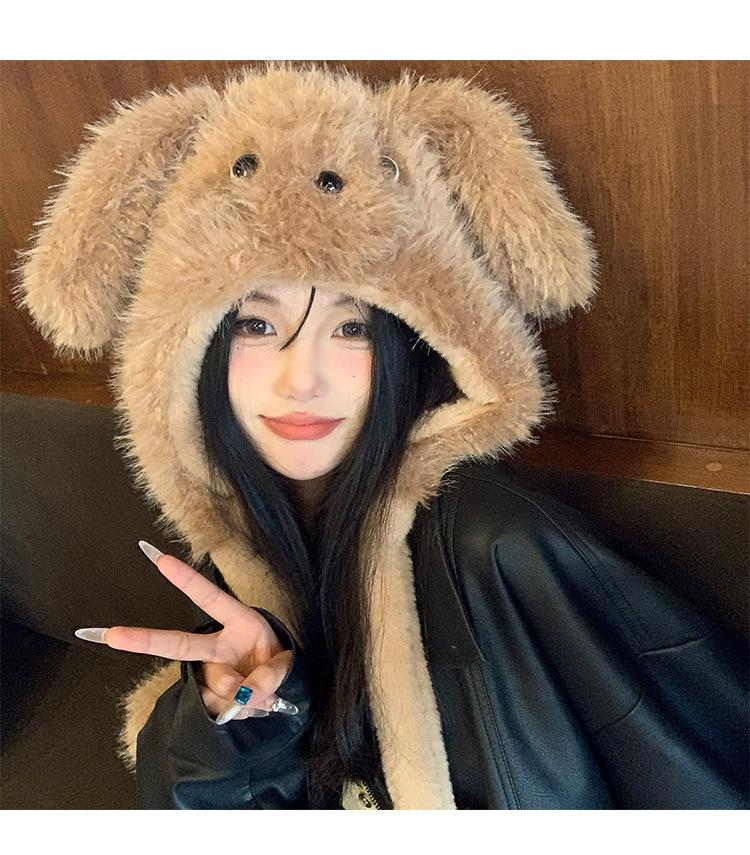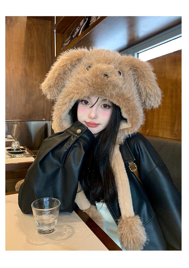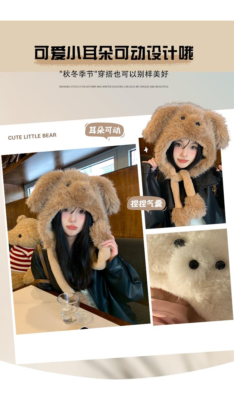 Sombrero de cachorro de simulación lindo de felpa de otoño e invierno, las orejas se moverán, pelo largo con forro polar para protección de orejas, cálido, combina con todo, sombrero Lei Feng moderno
