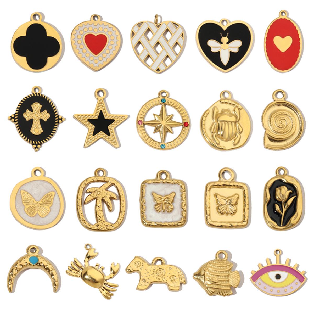 Colgante de acero inoxidable con forma de cangrejo, mariposa, perro, estilo retro francés, de titanio y bricolaje, para mujer, con diseño de árbol de coco, serpiente, abeja