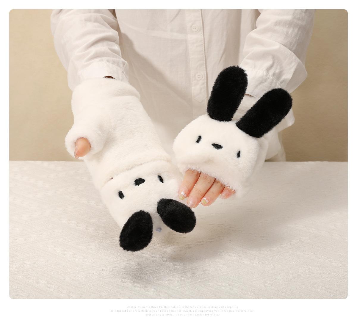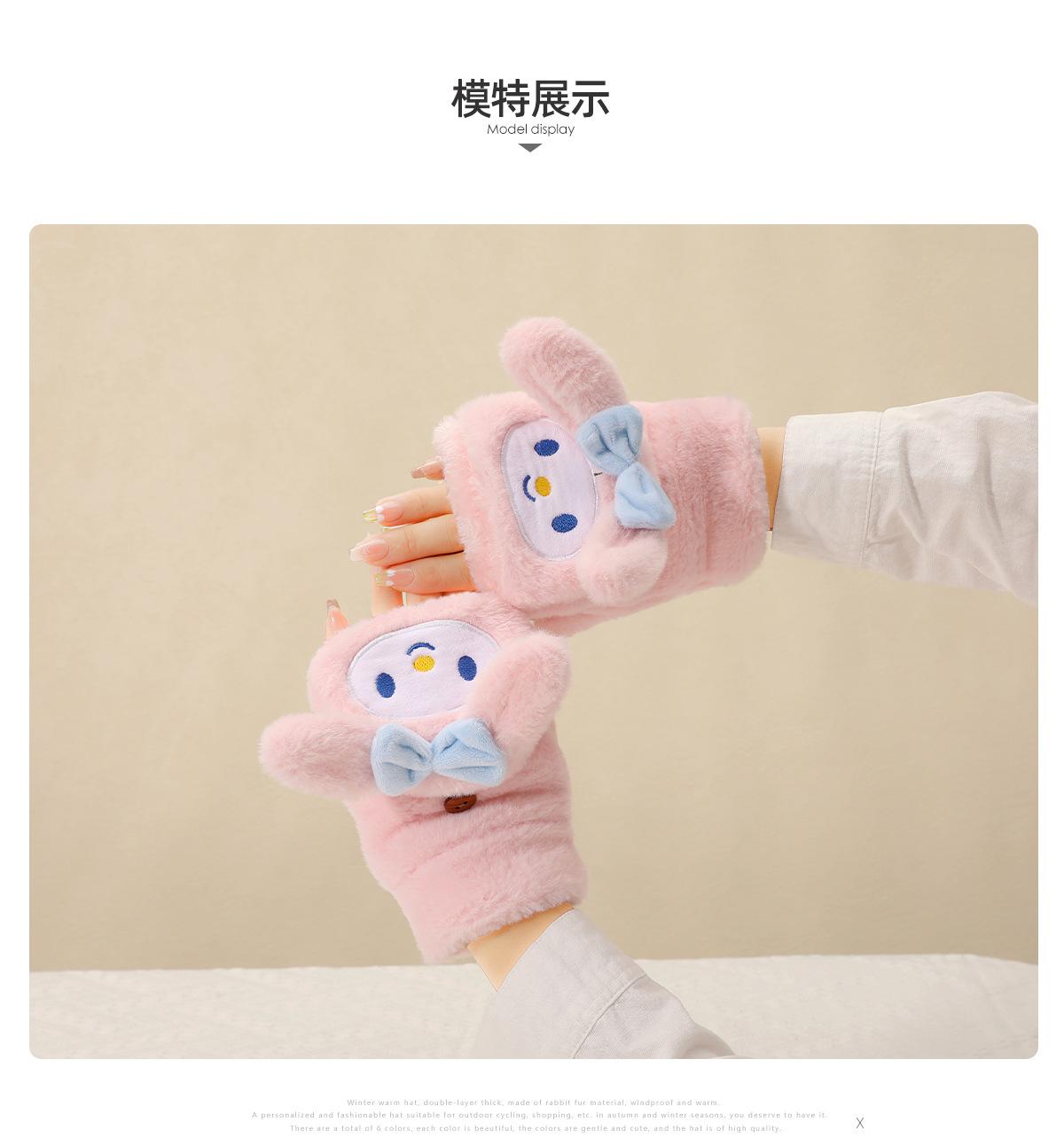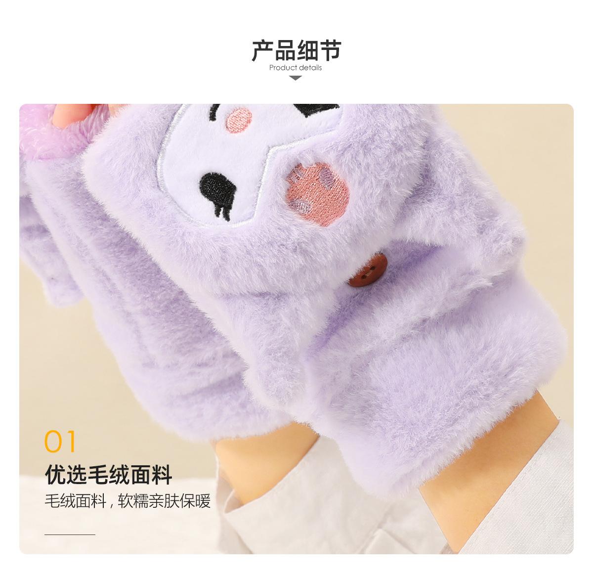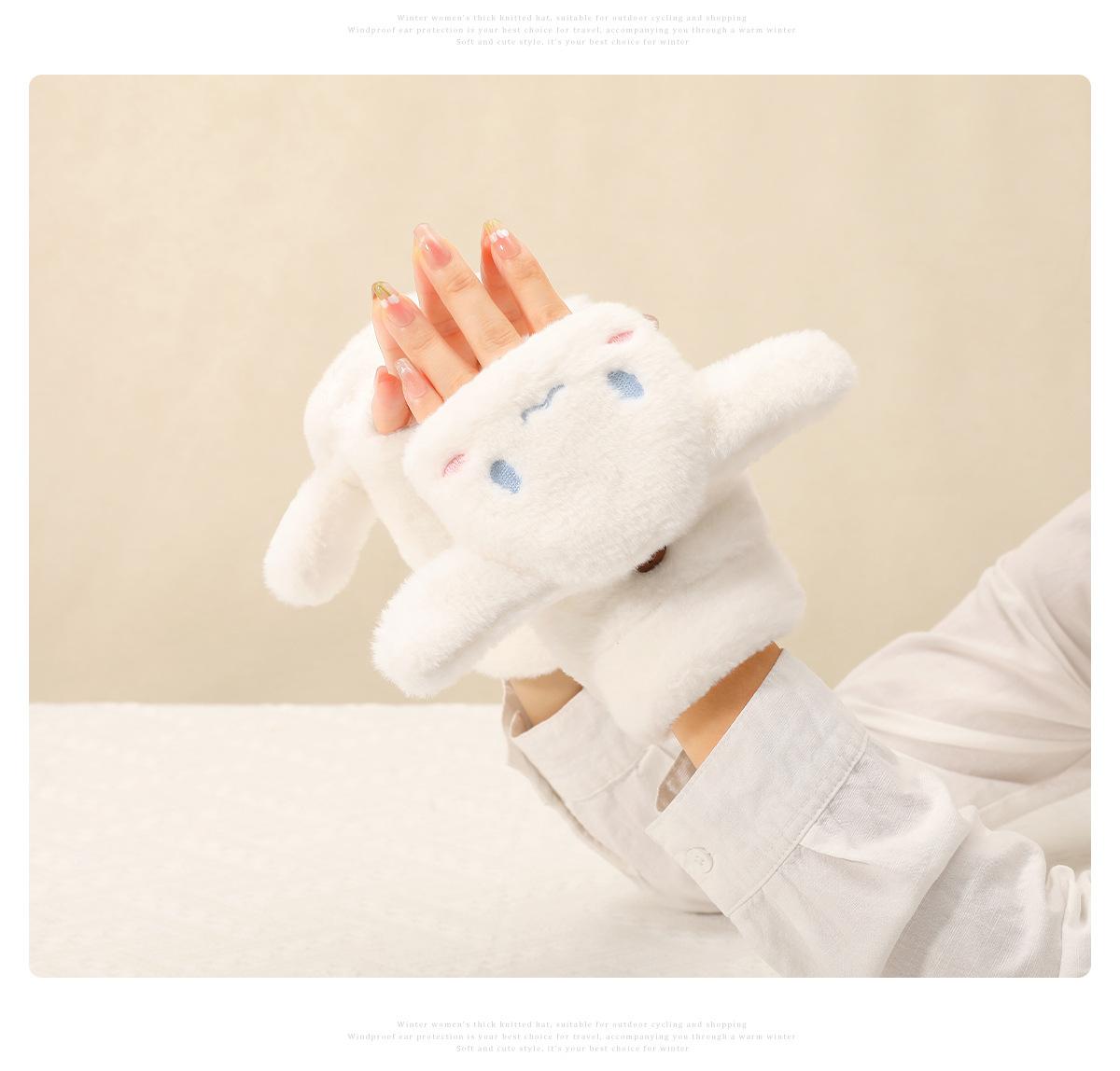 Guantes para Niños Otoño e Invierno Escritura Felpa Cálidos Niñas Forro Polar Lindo Invierno Medio Dedo Solapa Cachorro