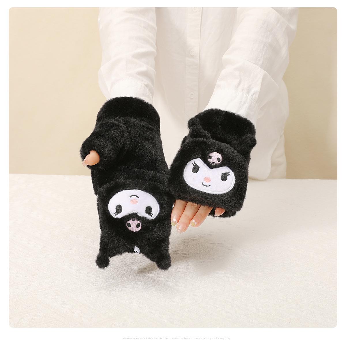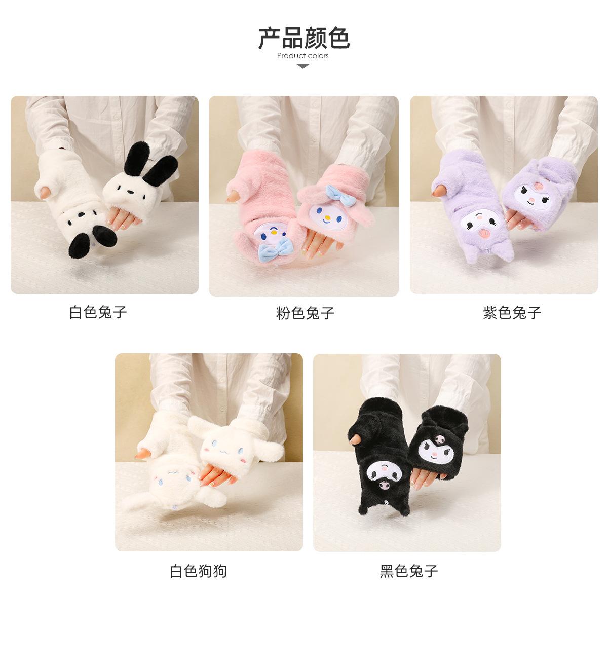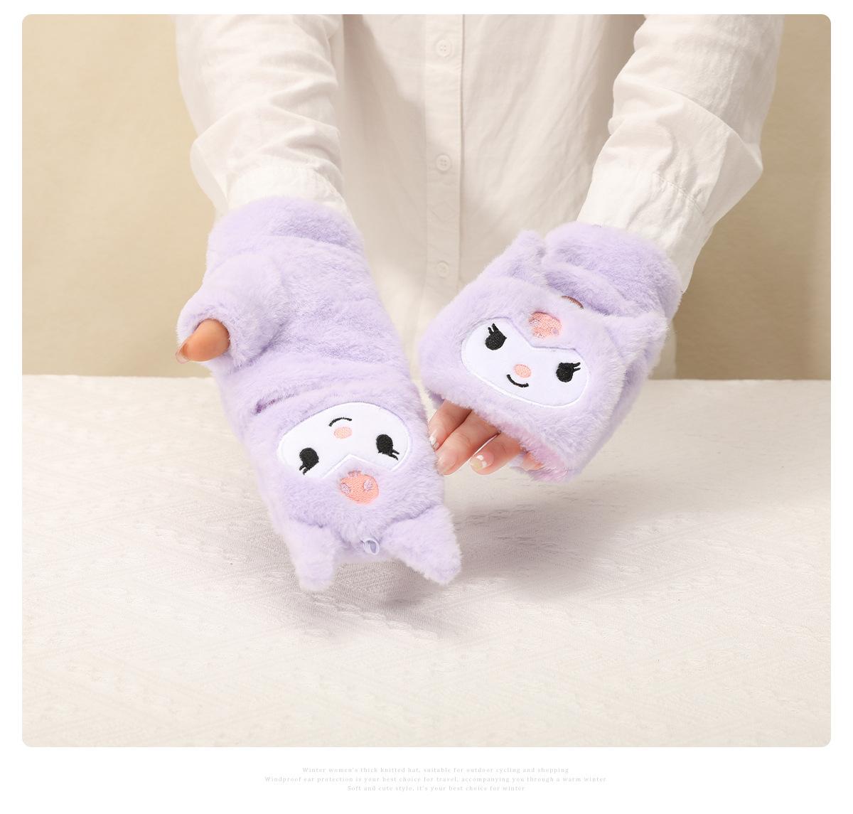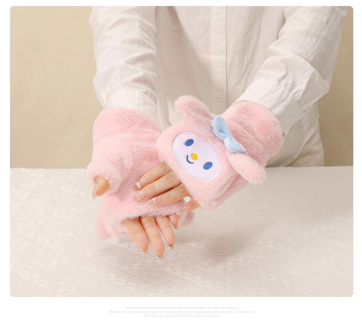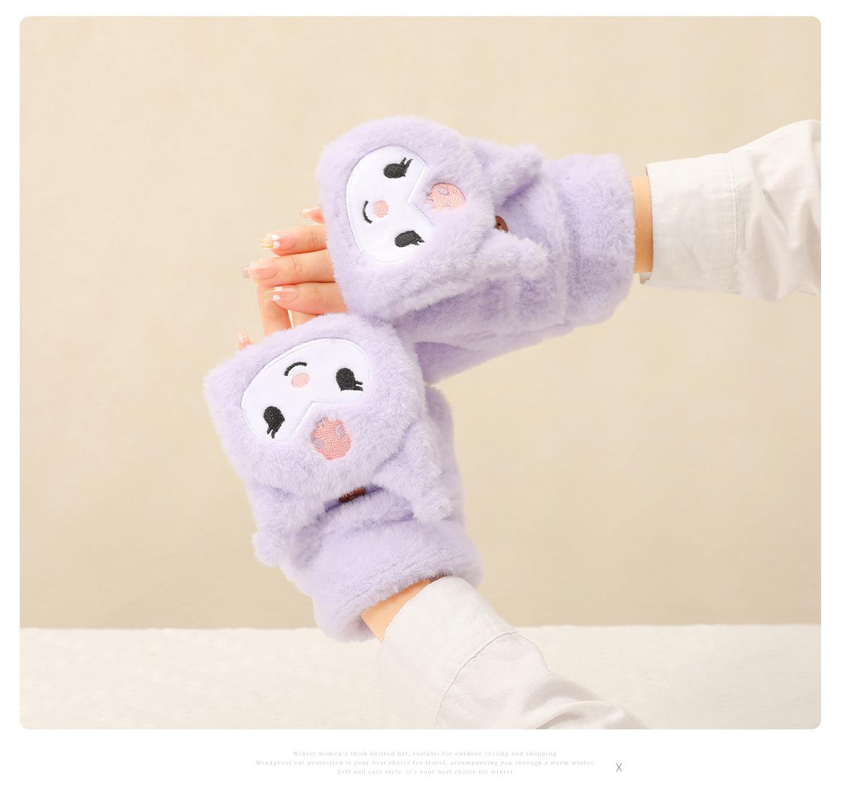 Guantes para Niños Otoño e Invierno Escritura Felpa Cálidos Niñas Forro Polar Lindo Invierno Medio Dedo Solapa Cachorro