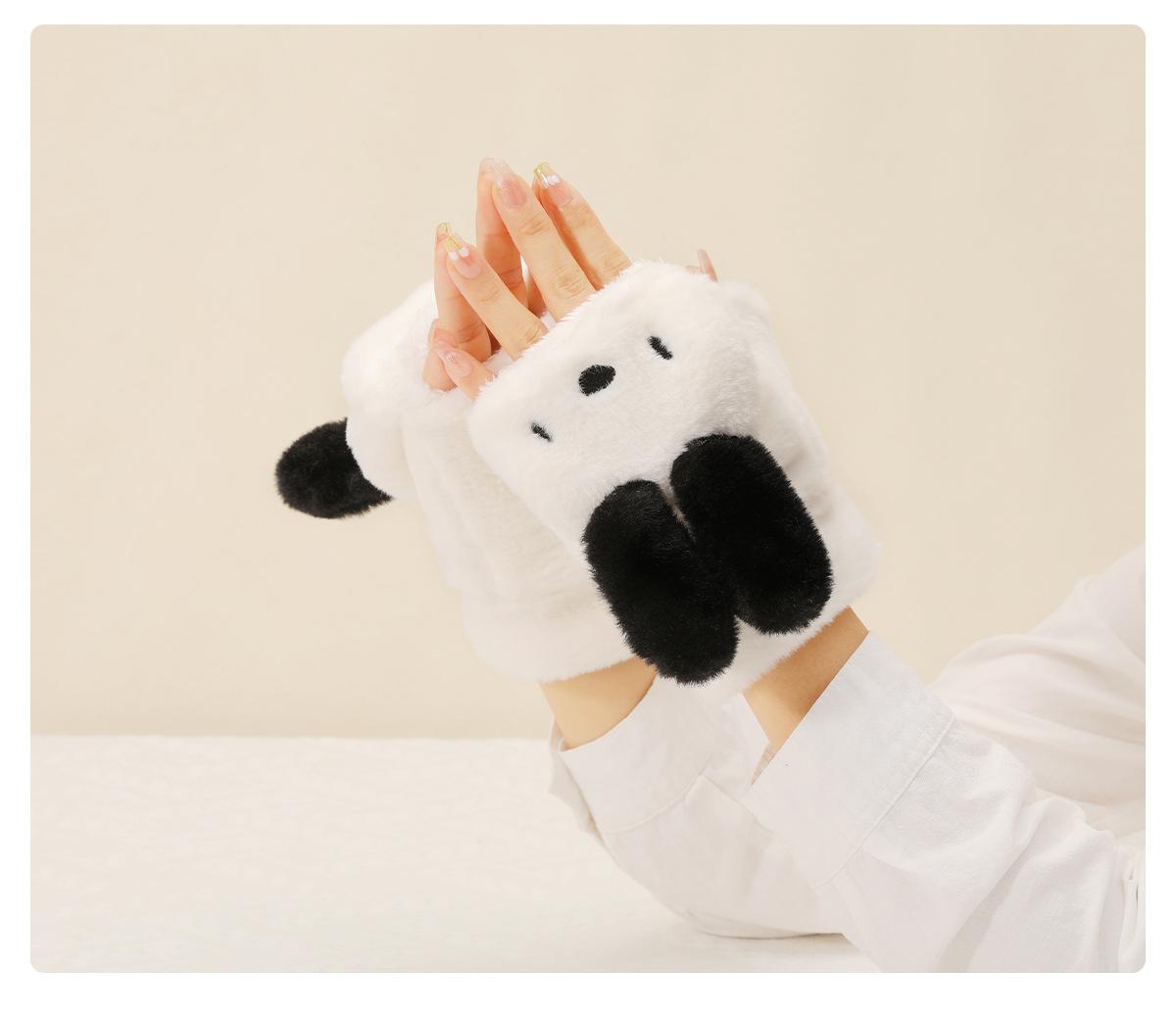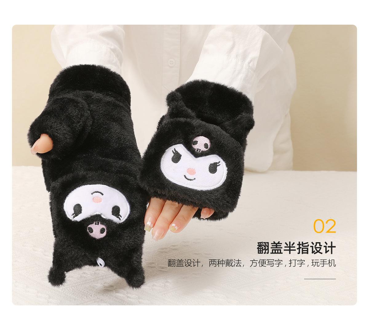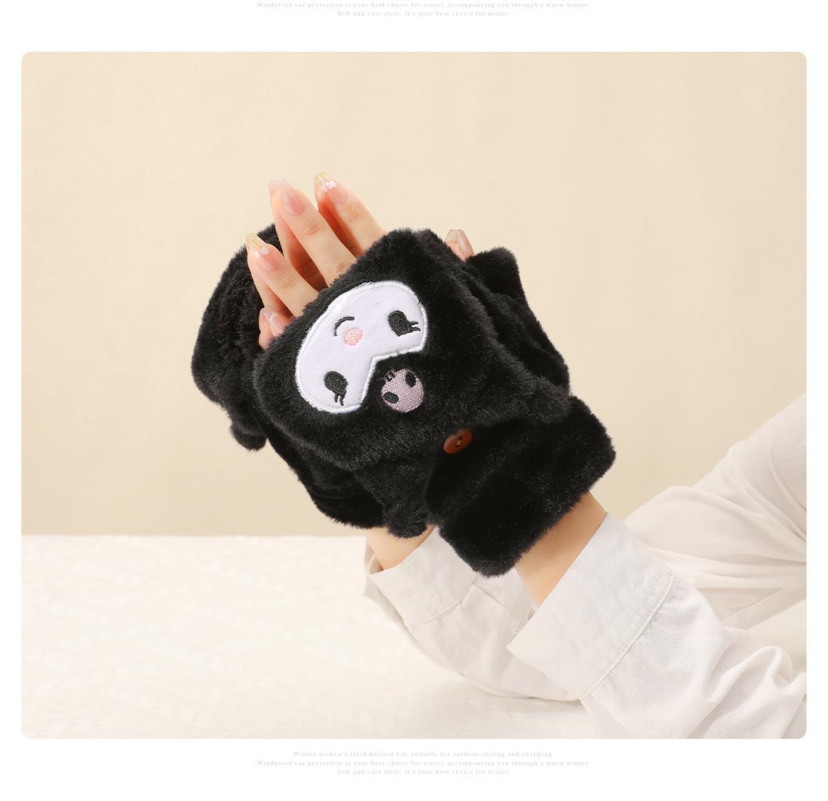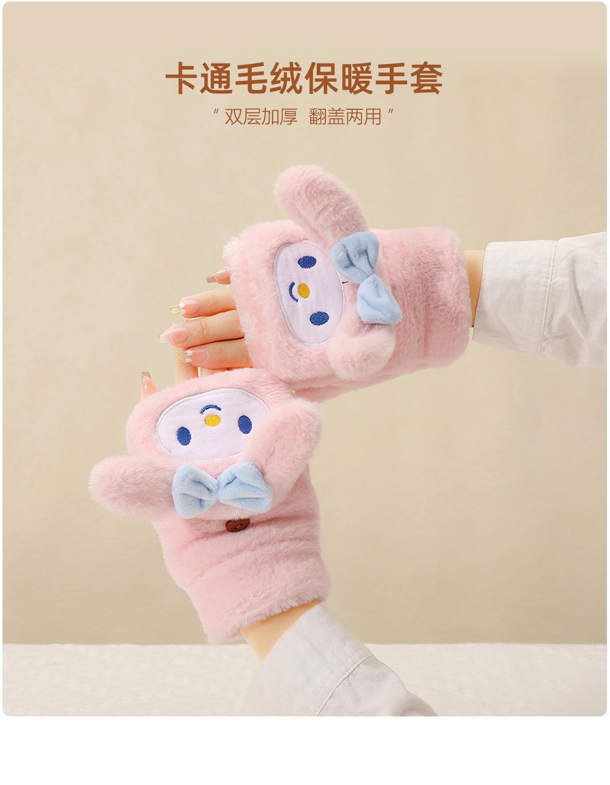 Guantes para Niños Otoño e Invierno Escritura Felpa Cálidos Niñas Forro Polar Lindo Invierno Medio Dedo Solapa Cachorro