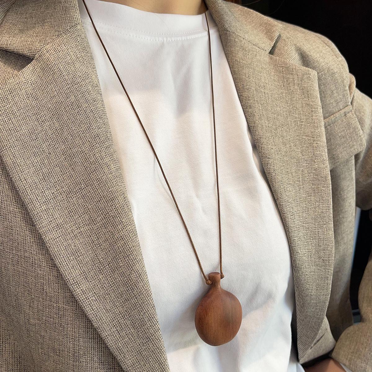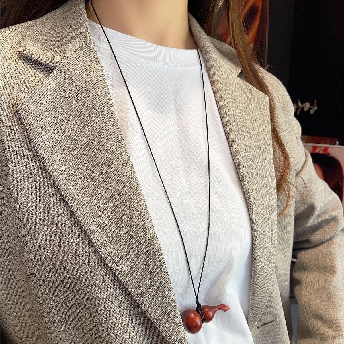 Nuevo Colgante Chino de Sándalo Natural con Bolsa de Dinero y Calabaza, Cadena de Lana, Collar Largo Nacional de Moda para Mujer para Otoño e Invierno