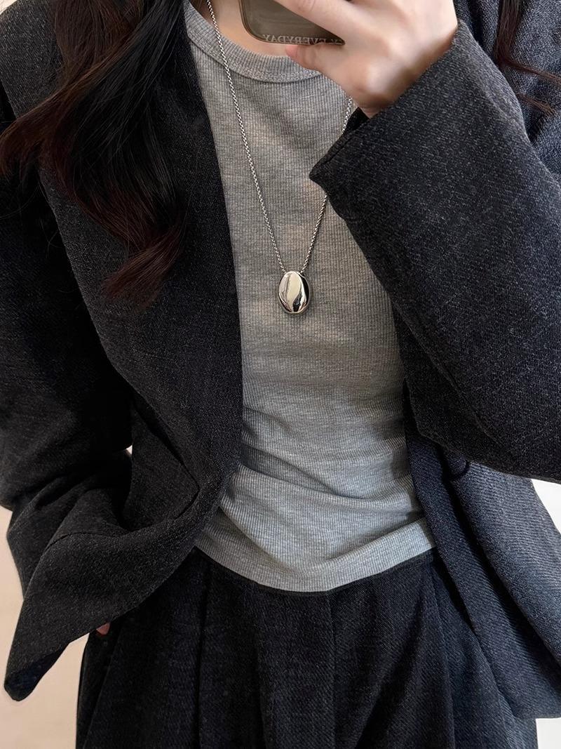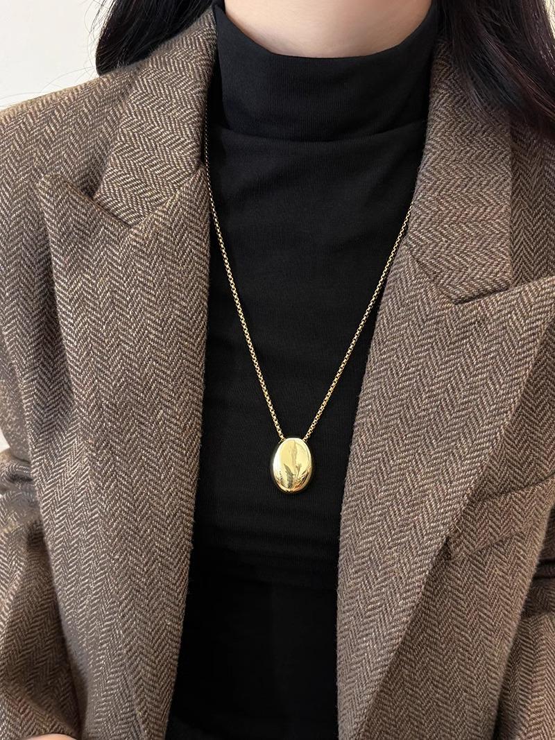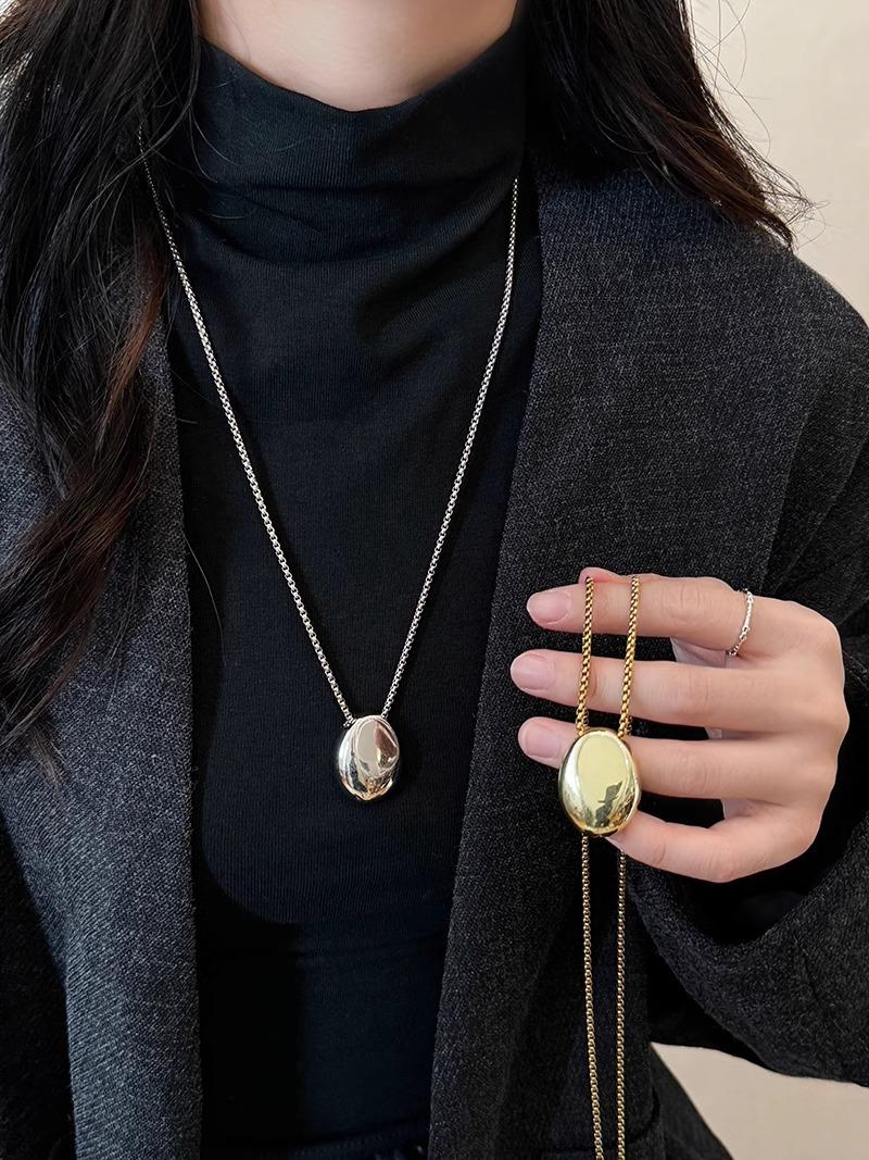 Collar con colgante ovalado de metal simple, nicho elegante de moda, cadena para suéter ajustable, collar versátil para mujer
