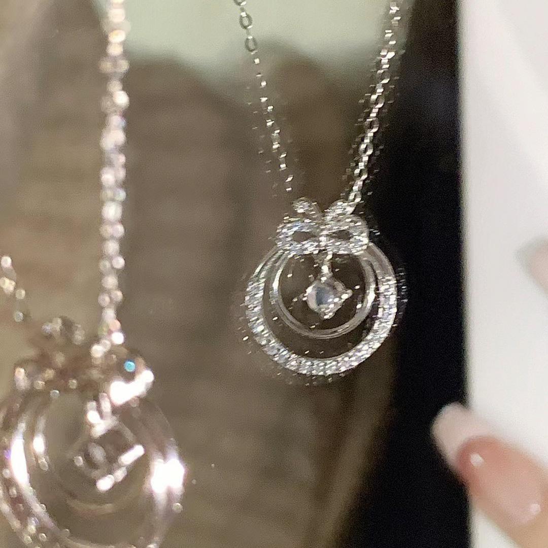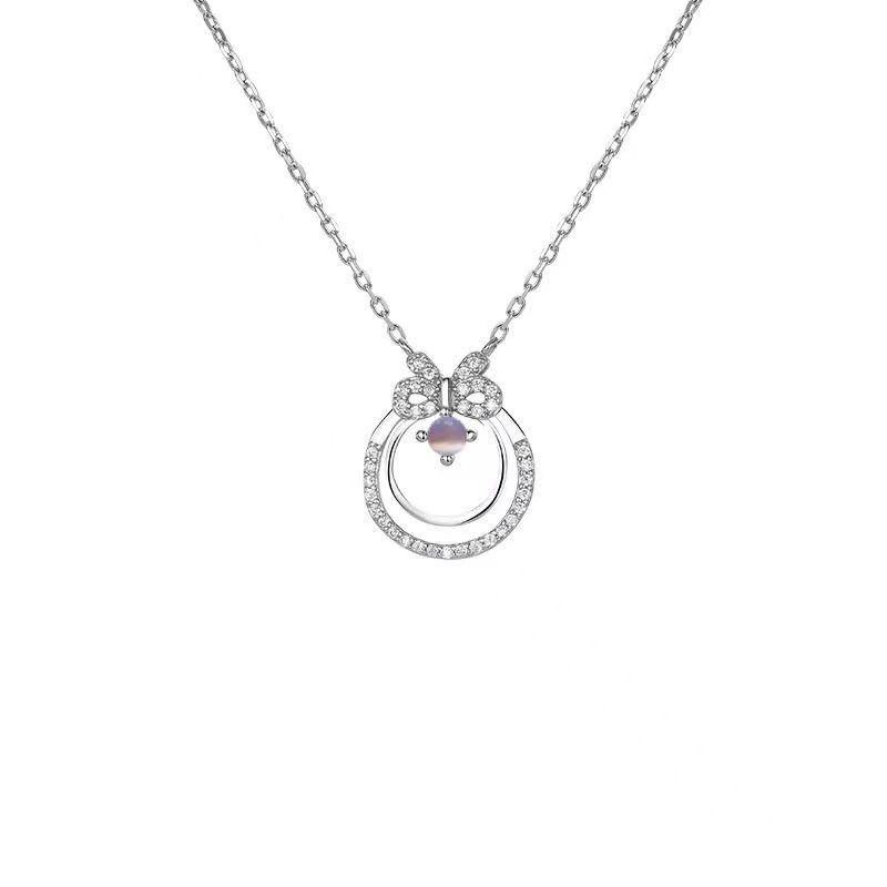 Collar con lazo de Garth y diamantes de imitación de piedra lunar para mujer, cadena de clavícula elegante, elegante y de lujo para novia.