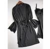Pijama sexy para mujer, primavera y otoño, bata de manga larga, tirantes de seda helada, pantalones cortos de encaje, conjunto de tres piezas, ropa fina para el hogar, traje