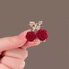 Exquisito clip de rosa roja de alta calidad, horquilla de tamaño pequeño para frente femenina, flequillo roto, clip superior de otoño e invierno 2024