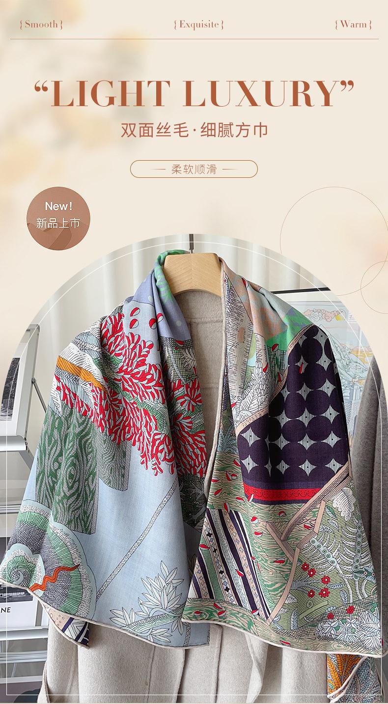 Bufanda de seda estampada de moda, bufanda cuadrada grande, bufanda cálida de otoño, bufanda de seda de moda para mujer, fábrica de múltiples patrones en stock, venta al por mayor