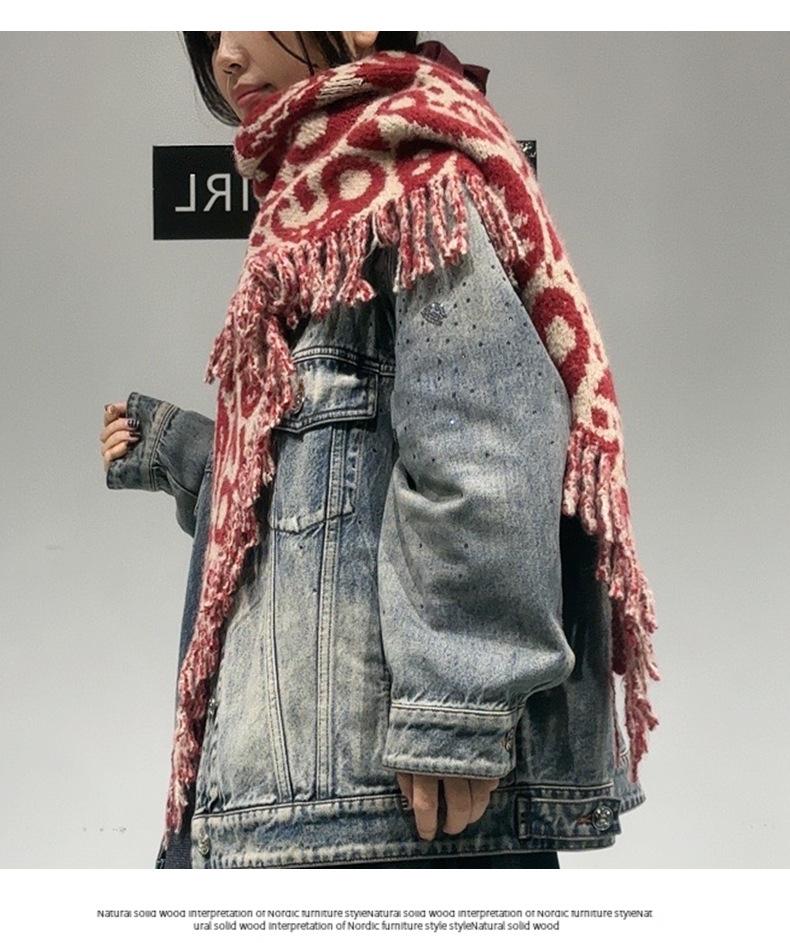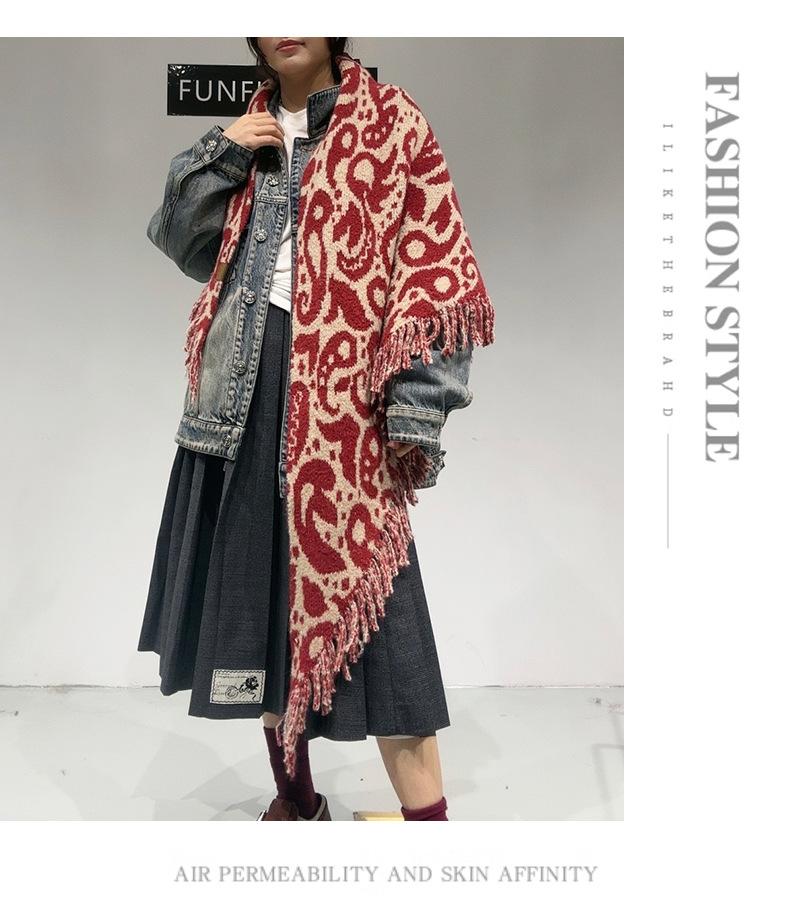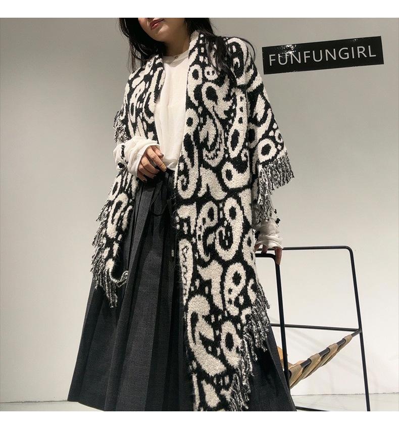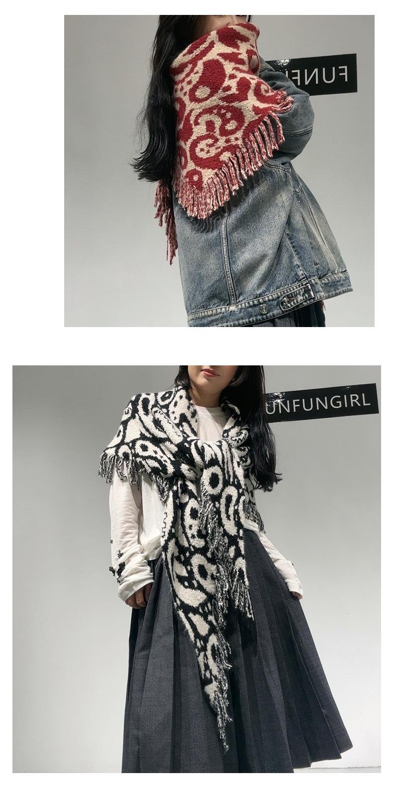 Bufanda de Lana con Borlas de Otoño e Invierno para Mujer Chal Tejido de Lana de Cordero de Alta Gama Bufanda Gruesa y Cálida para el Cuello Combinable