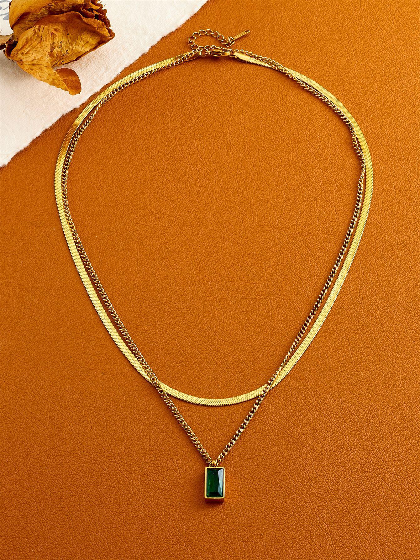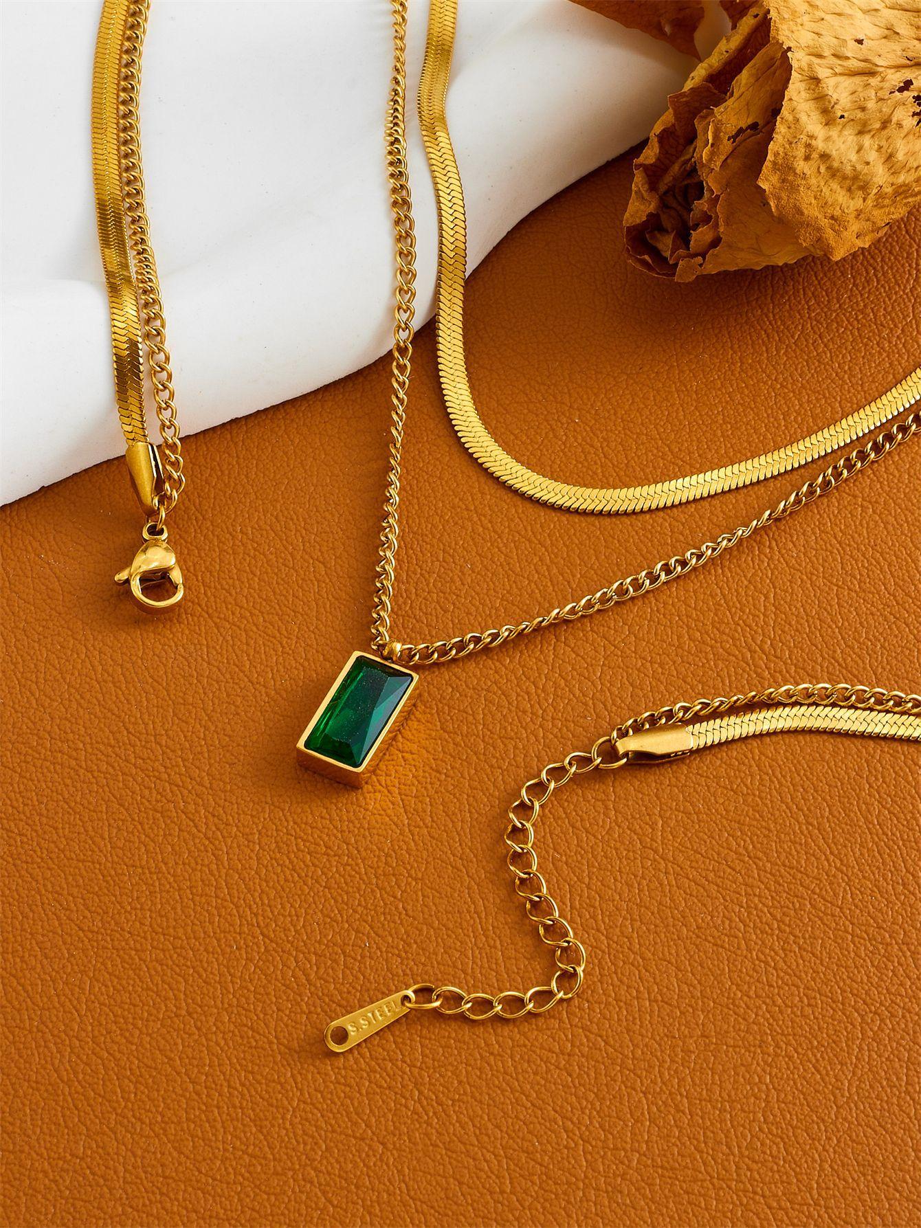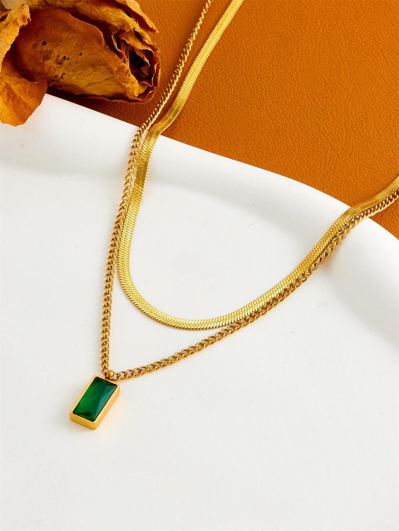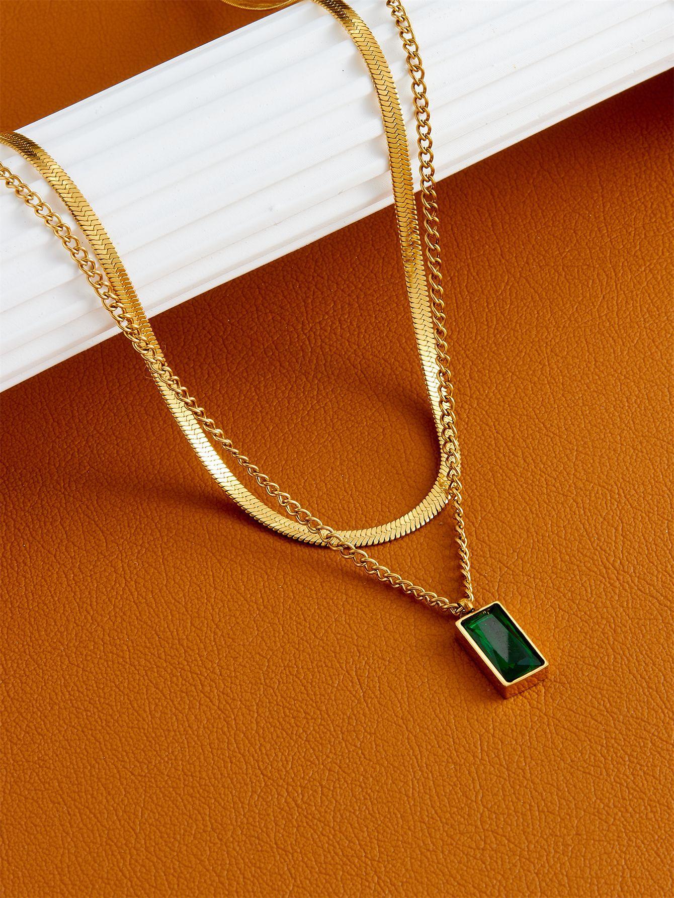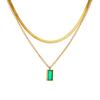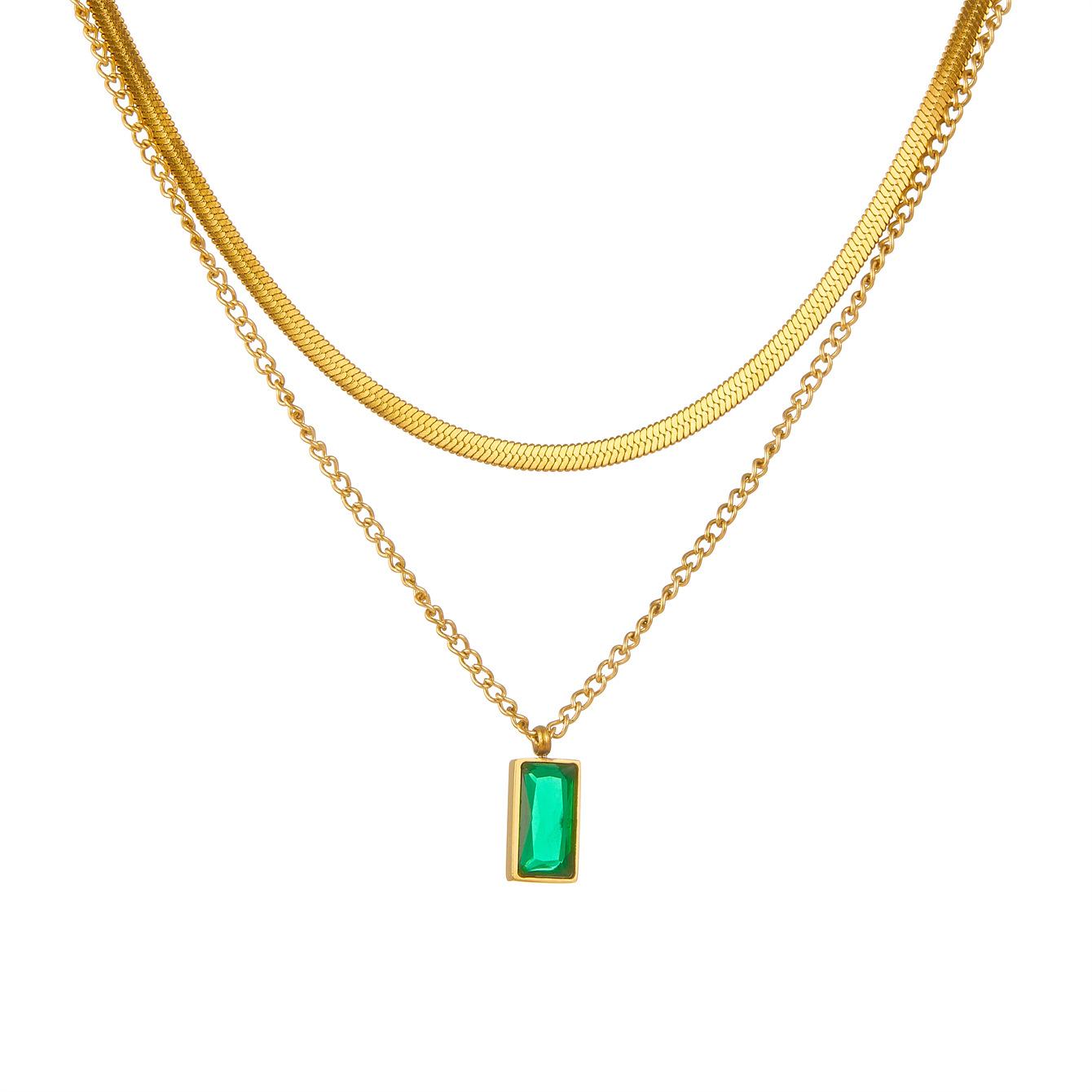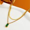 Nuevo collar de doble capa con circonita verde y acero de titanio para mujer, cadena de clavícula con diseño de hueso de serpiente de doble capa de nicho de lujo ligero, joyería para mujer
