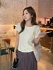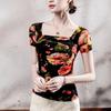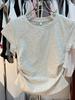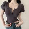 Camiseta de manga corta con hombros descubiertos azules para mujer, nueva camiseta de primavera y verano, estilo occidental, ajustada, con base adelgazante y rosca.