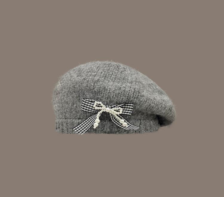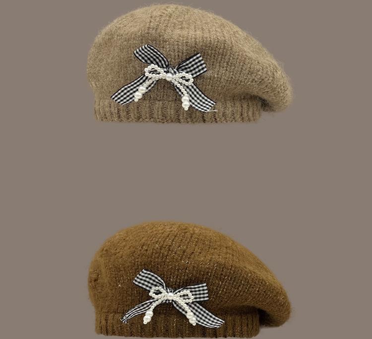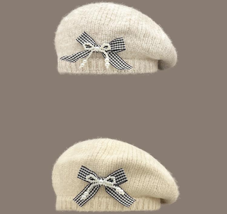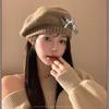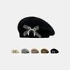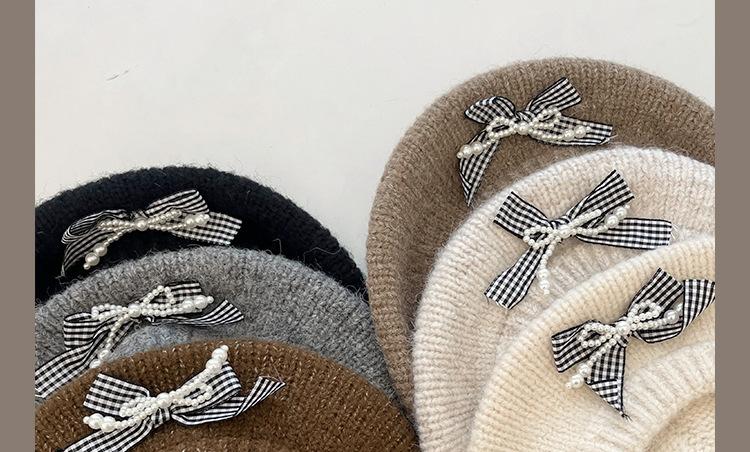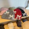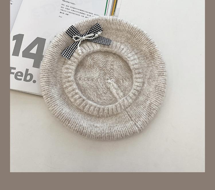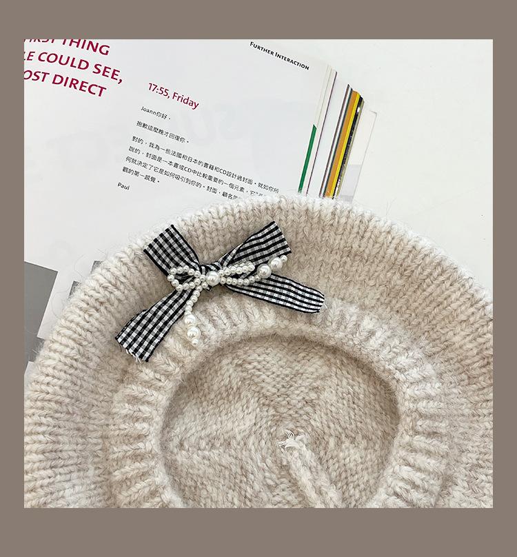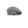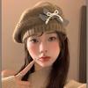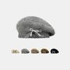 Otoño e invierno 2024 nueva boina de punto con lazo dulce cálida combinable circunferencia de cabeza grande cara pequeña sombrero de pintor