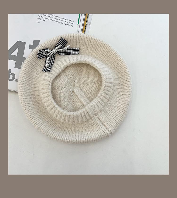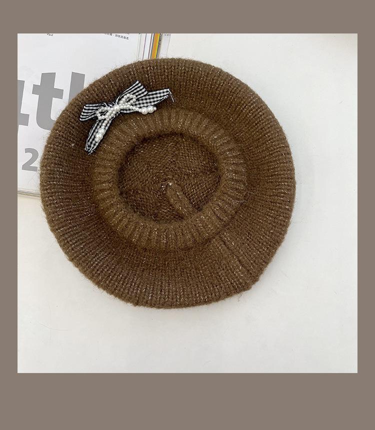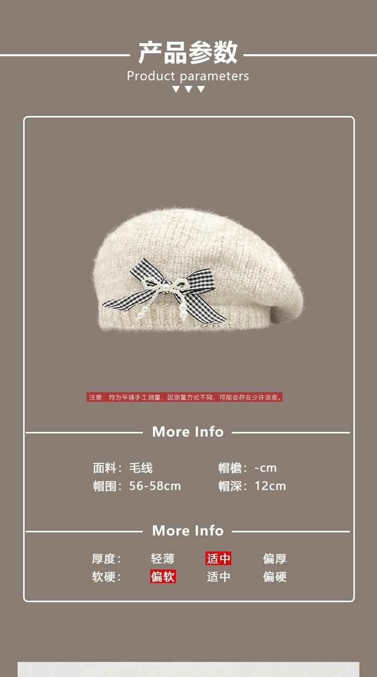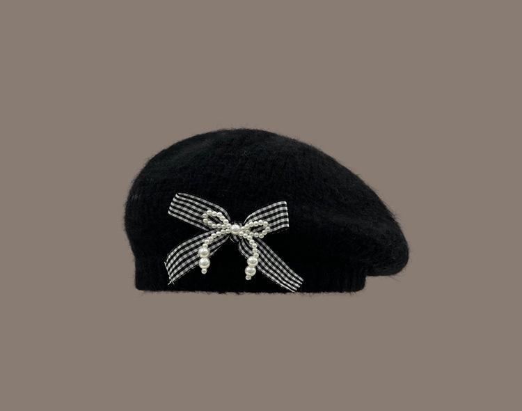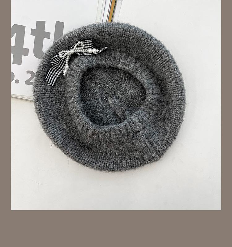 Otoño e invierno 2024 nueva boina de punto con lazo dulce cálida combinable circunferencia de cabeza grande cara pequeña sombrero de pintor