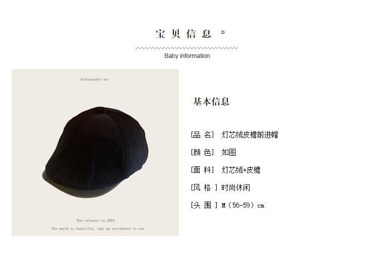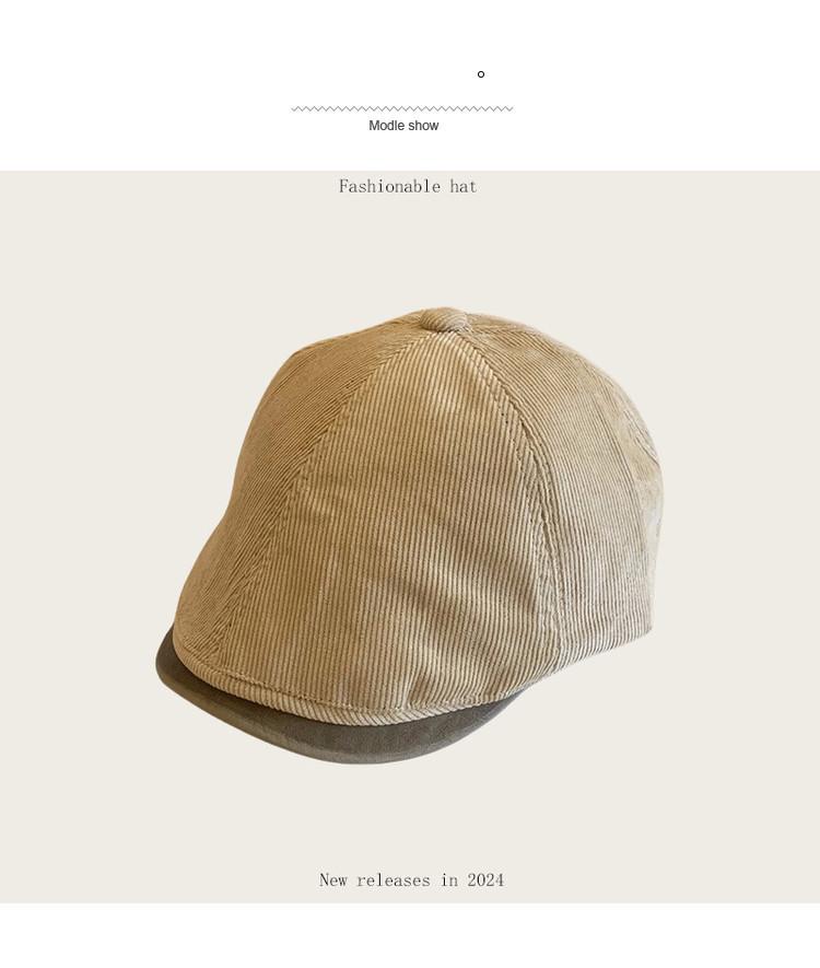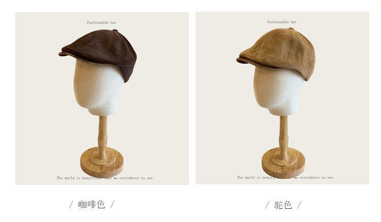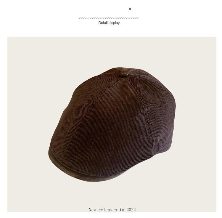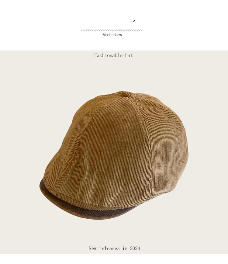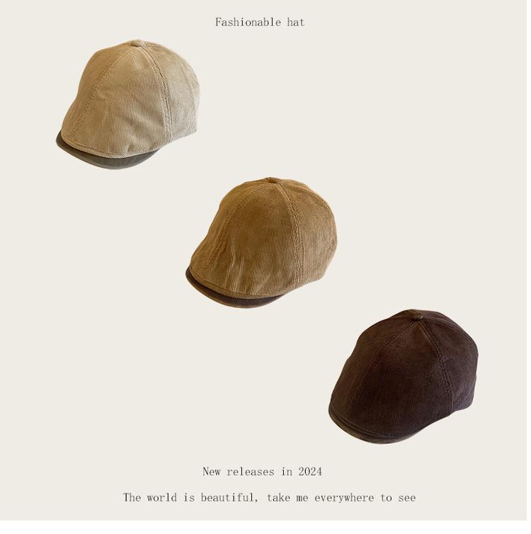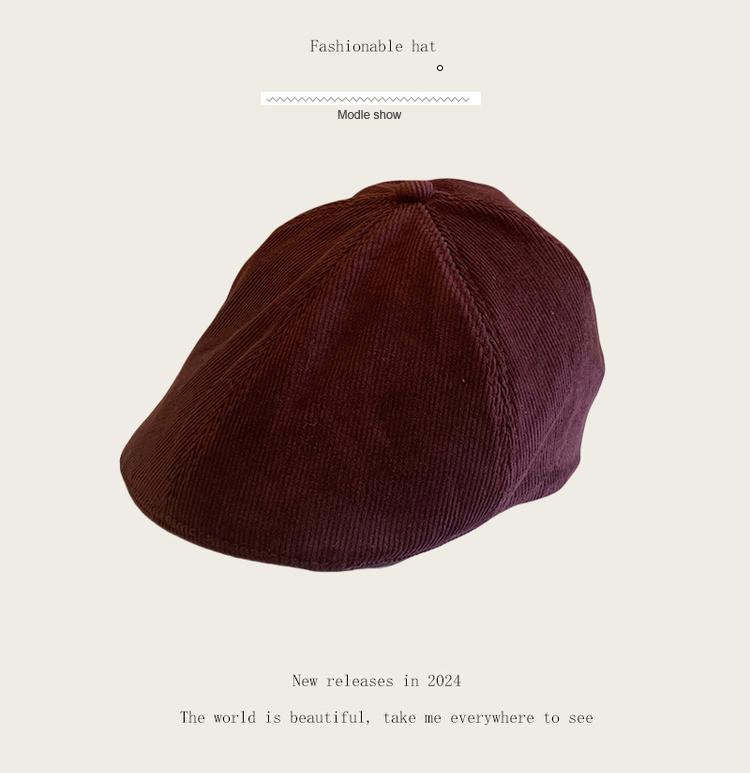 Sombrero retro informal de pana con visera para mujer, boina con cara visible, estilo pintor, para otoño e invierno.