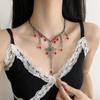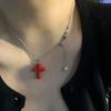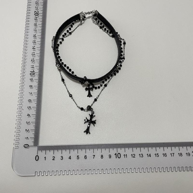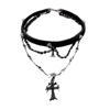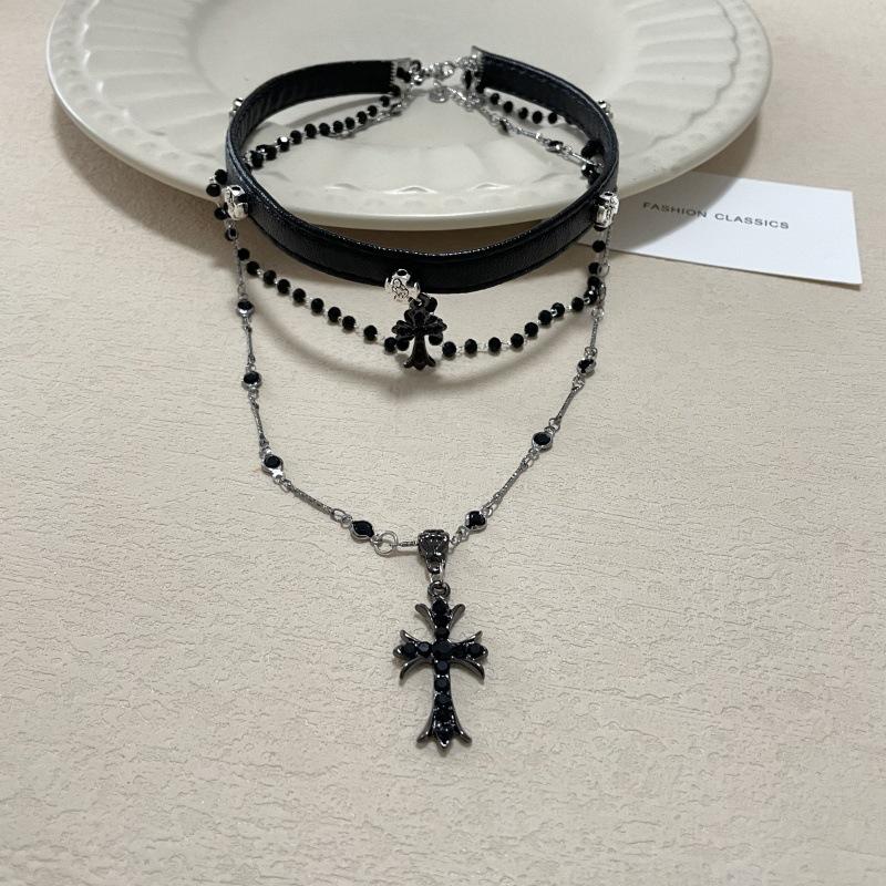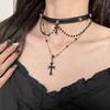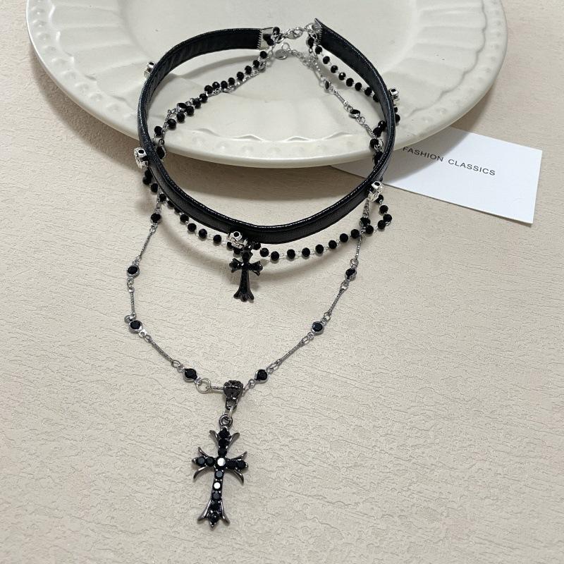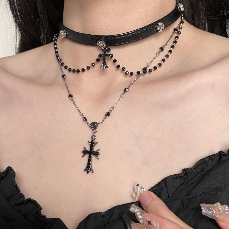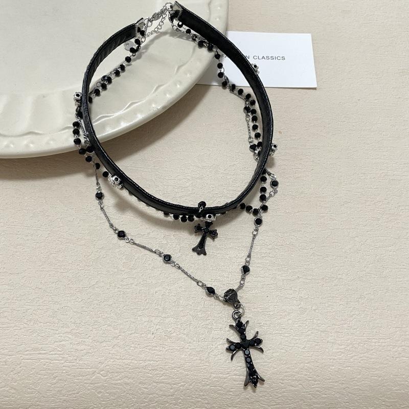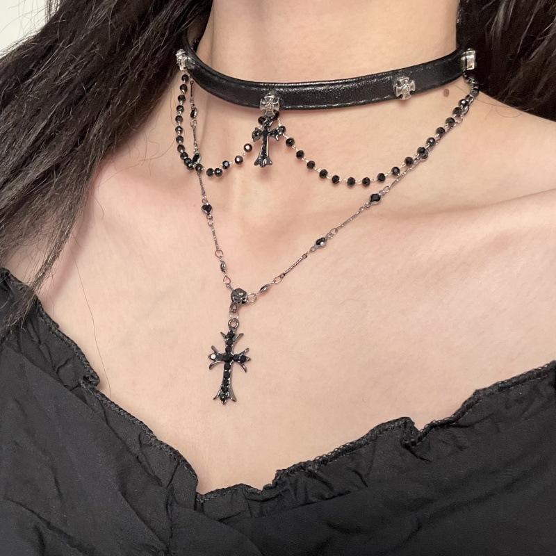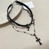 Collar con colgante de cruz de diamantes de estilo oscuro, dulce y fresco, de cuero, con cadena de clavícula superpuesta, estilo sexy de Spice Girl, estilo europeo y americano.