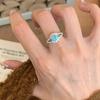 Anillo de Aguamarina con Diamantes Incrustados de Viento Frío de Alta Calidad Diseño Nicho de Moda Temperamento Versátil Anillo Abierto Ajustable