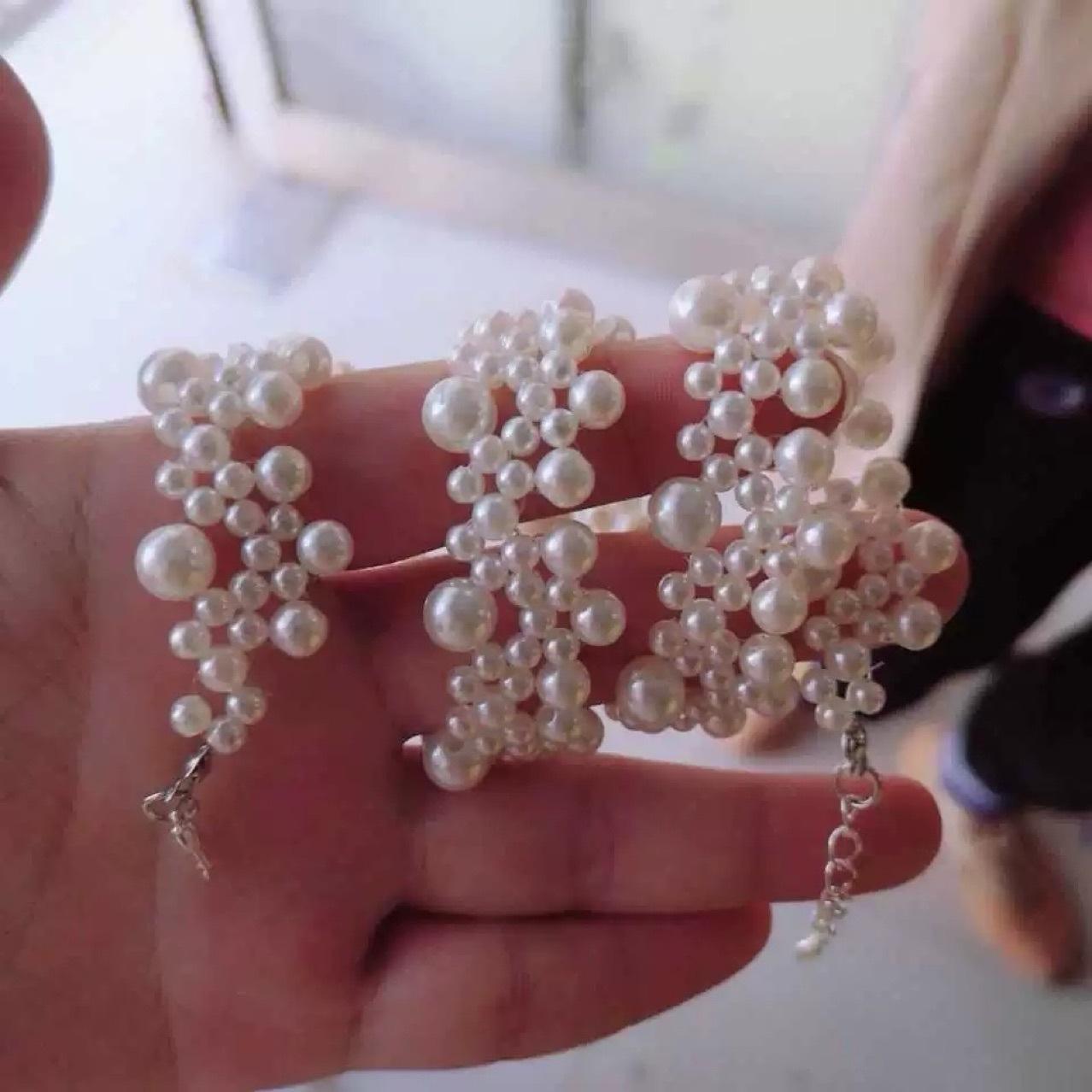 Collar de perlas de imitación versátil tejido a mano, estilo frío, para clavícula, gargantilla, collar de banda para el cuello para mujer, trenzado.