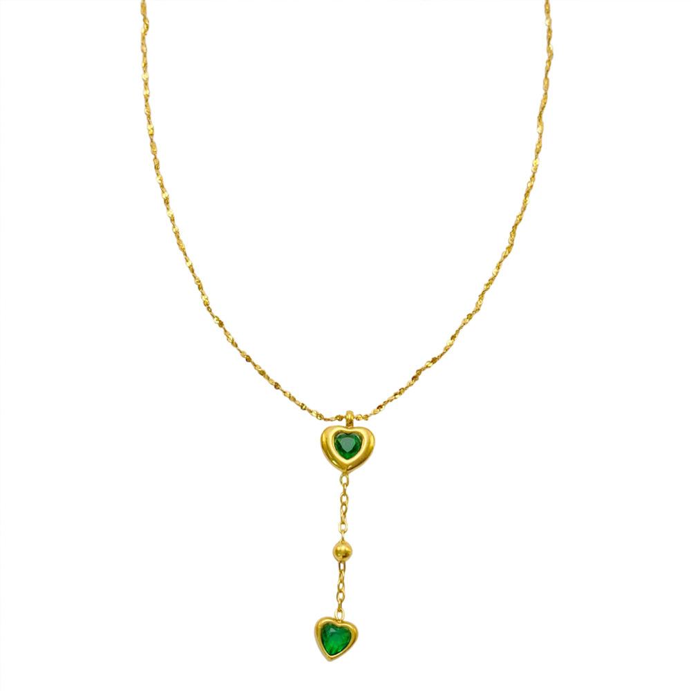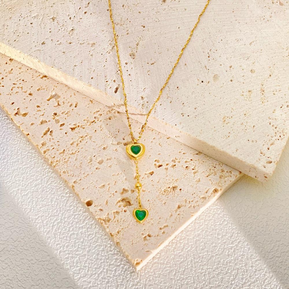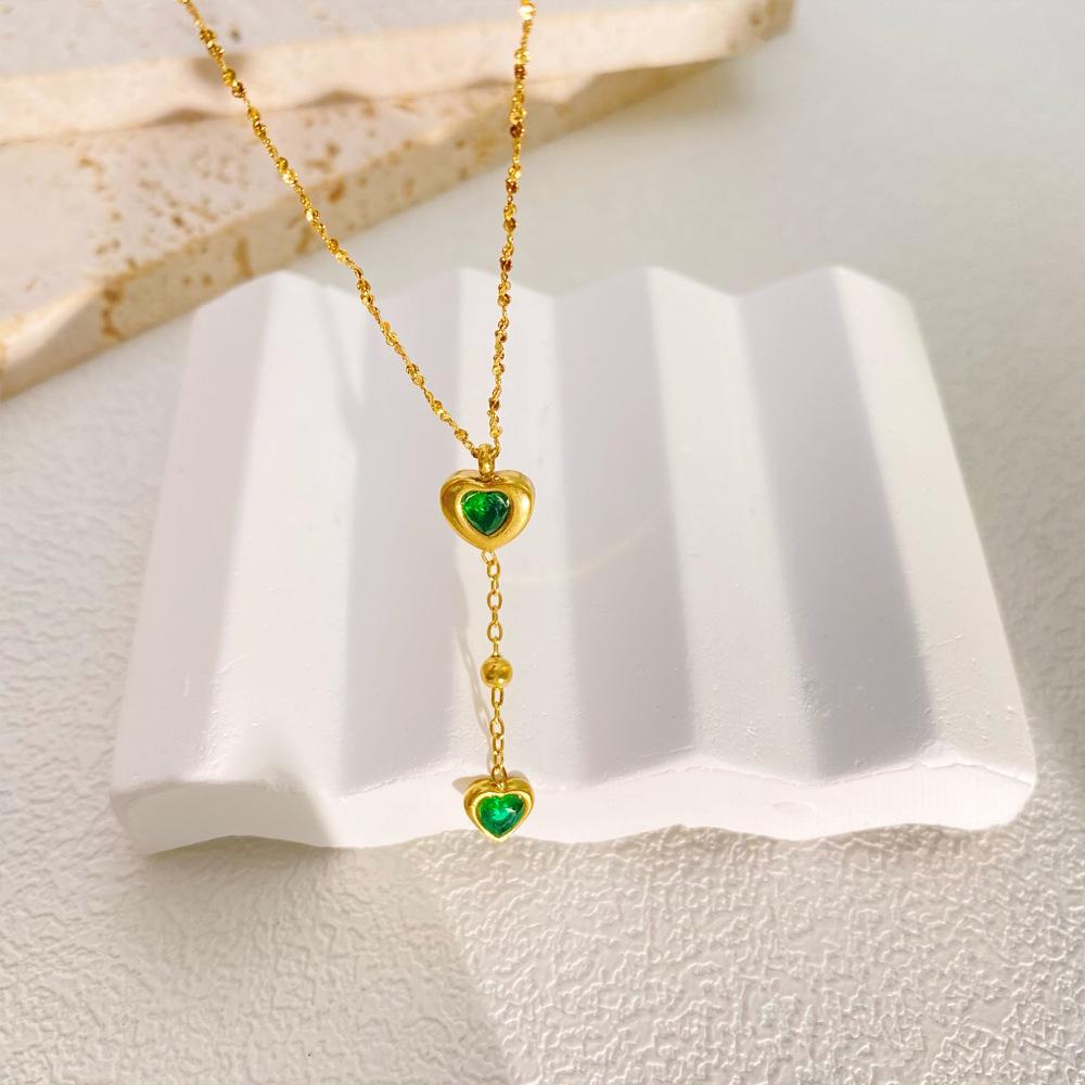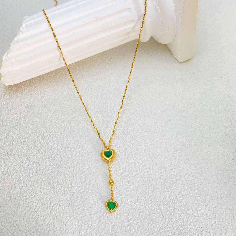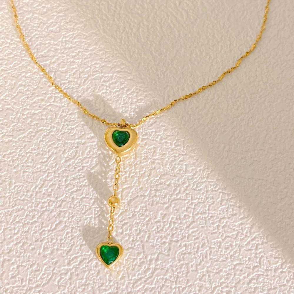 Collar de acero de titanio con colgante de circonita esmeralda y borla de nicho para clavícula de acero inoxidable, moda transfronteriza entre Europa y Estados Unidos