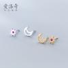 White 925 silver needle earrings, Pink 925 silver needle earrings, White triangular cushioned ear clips - can ...