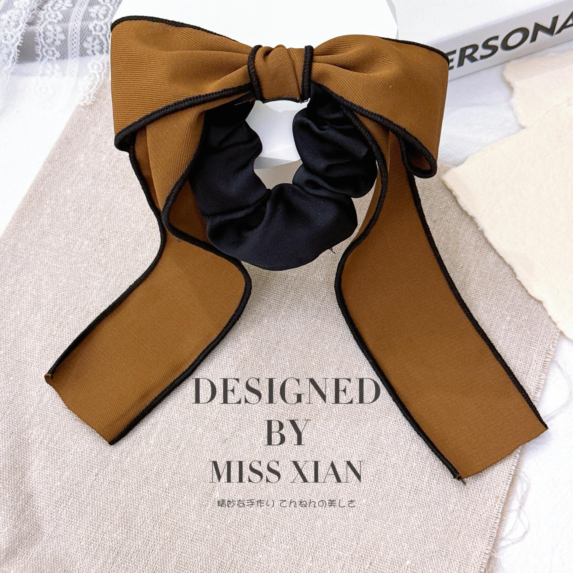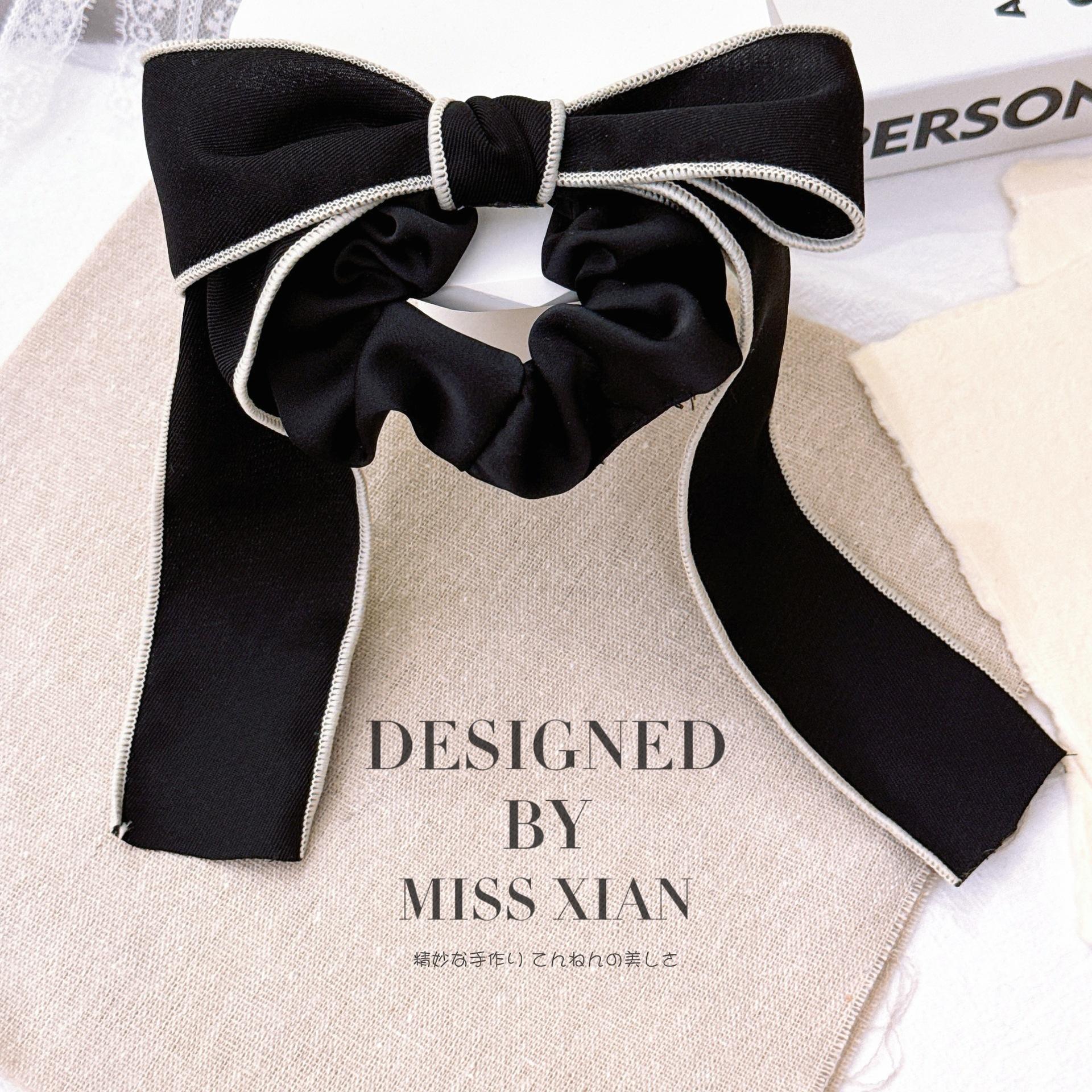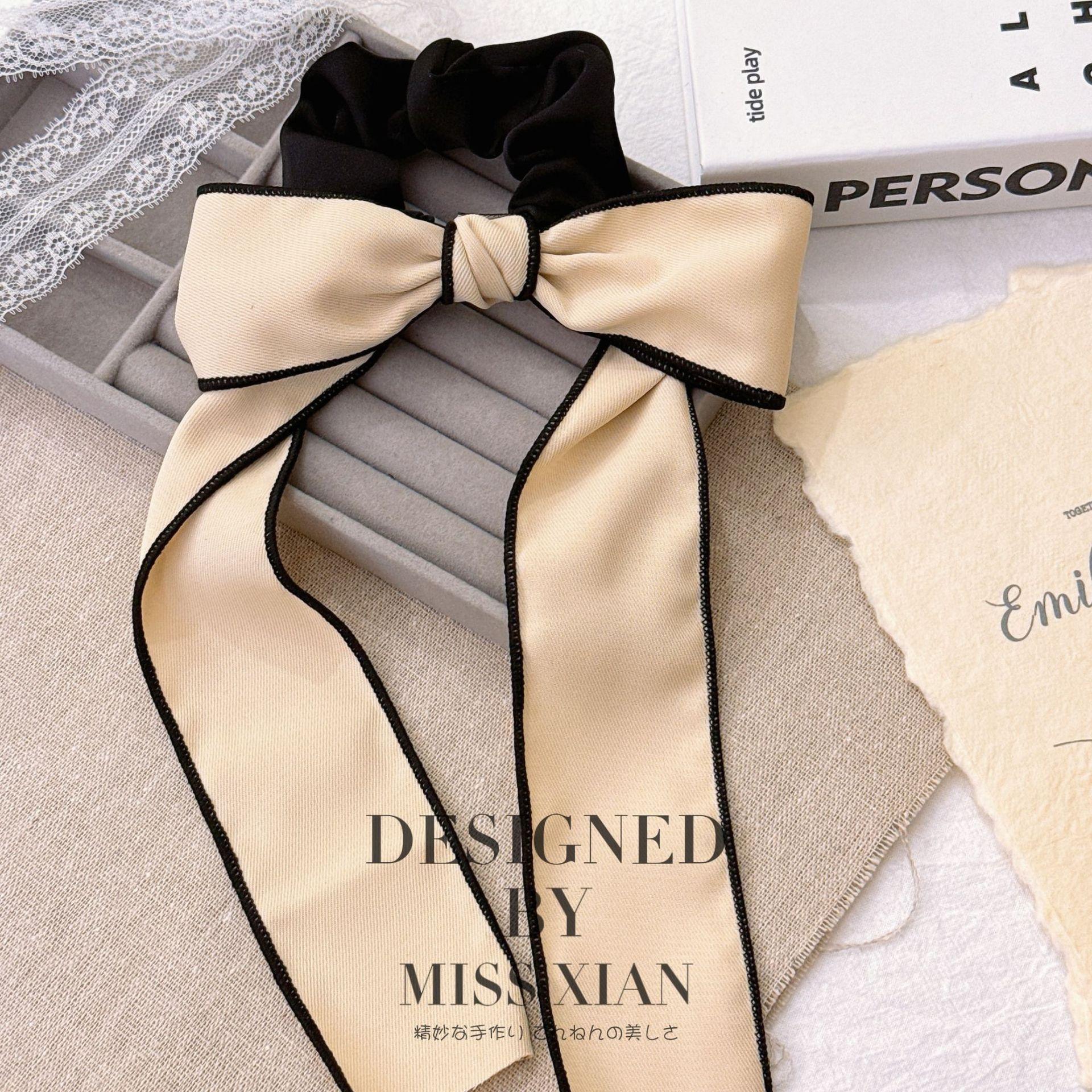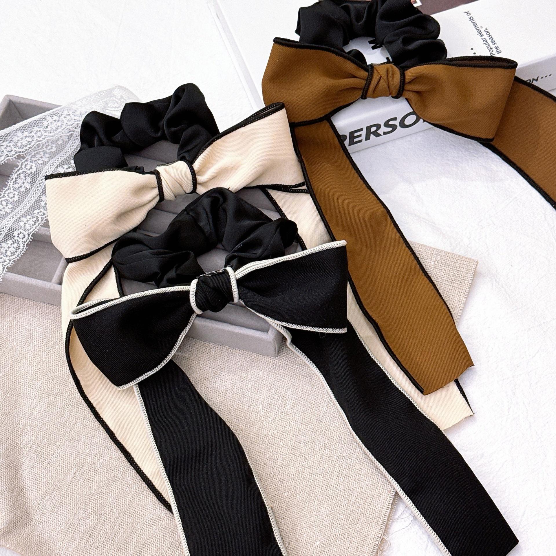 Coletero alto estilo coreano con anilla para el pelo, lazo blanco y negro, accesorio para el pelo sencillo que combina con todo, cuerda de pelo de tendón de cuero de alta calidad para mujer