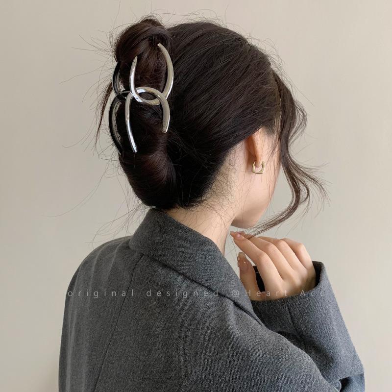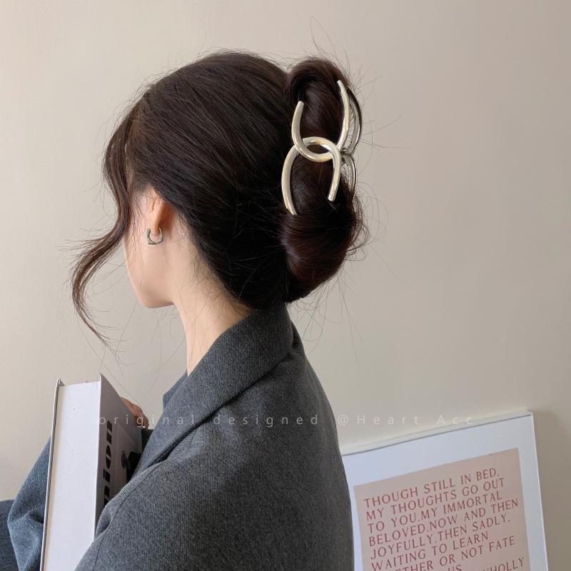 Clip Metálico Doble C de Sentido Avanzado para Mujer Otoño e Invierno Tamaño Grande para Cabello Diseño de Múltiples Horquillas Sentido Nicho Clip de Tiburón