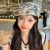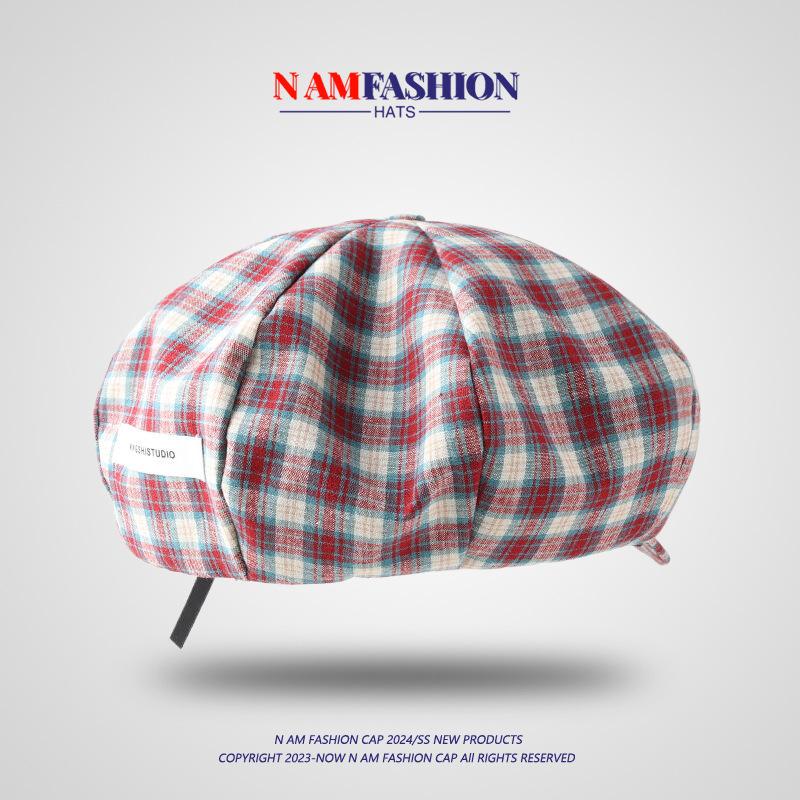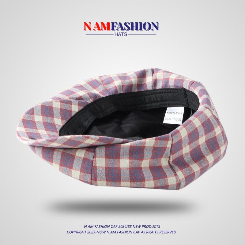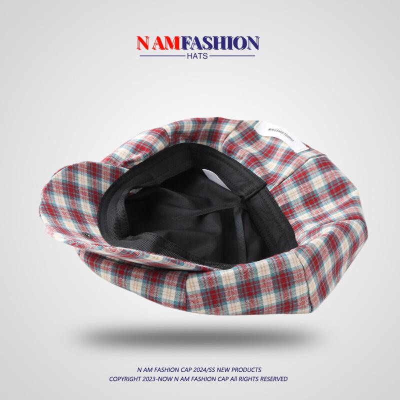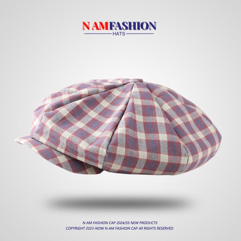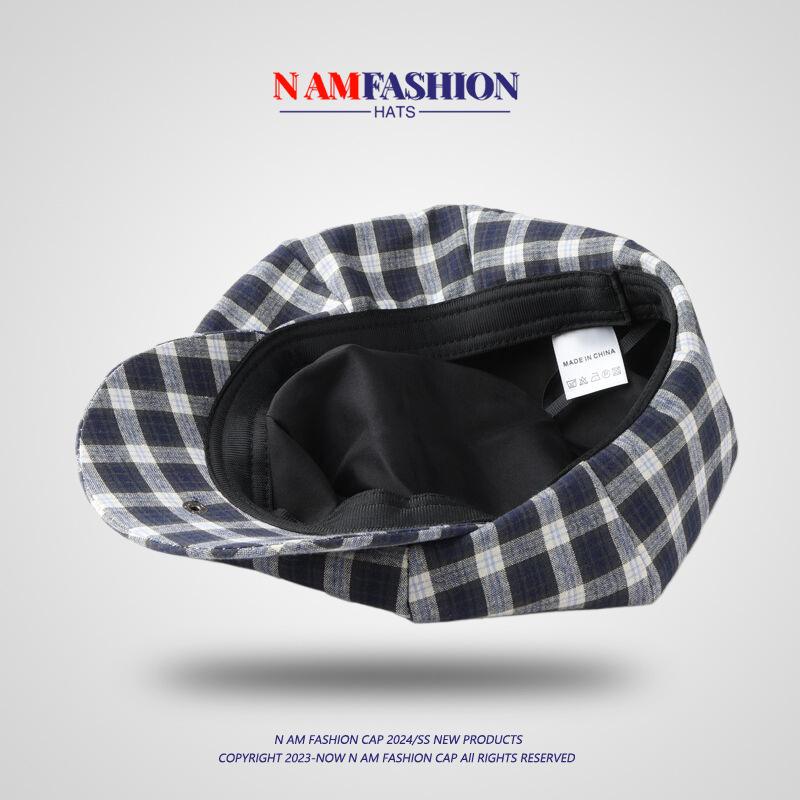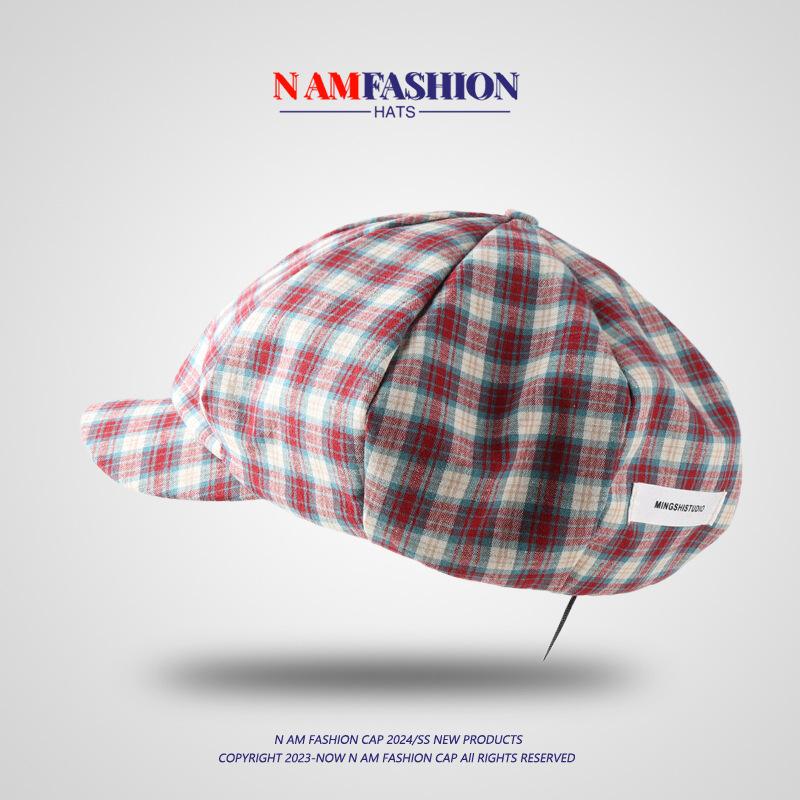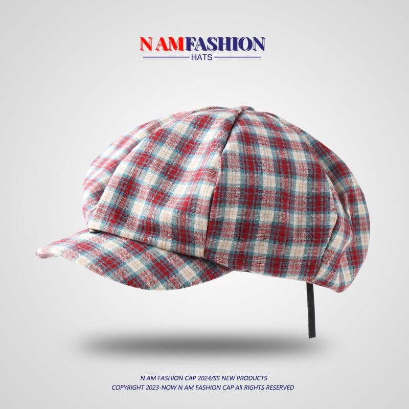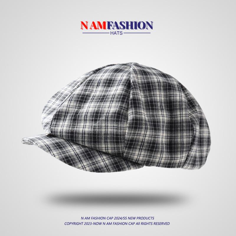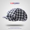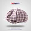 Sombrero octogonal reversible de cuadros para mujer Primavera y Otoño nuevo sombrero retro de nube con circunferencia de cabeza grande y cara pequeña boina de moda