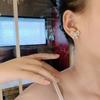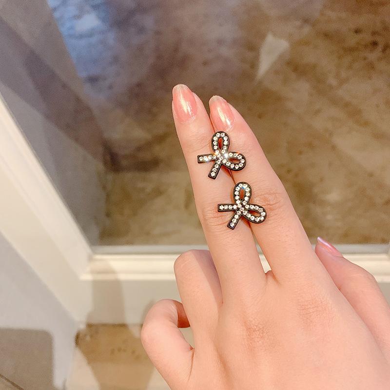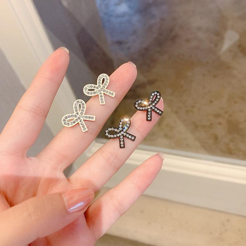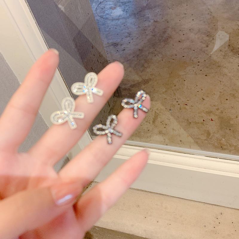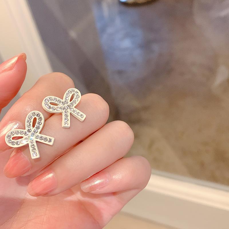 Pendientes pequeños con lazo blanco fresco y aguja de plata S925, pendientes distintivos con diamantes, pendientes pequeños sencillos con temperamento japonés y coreano.