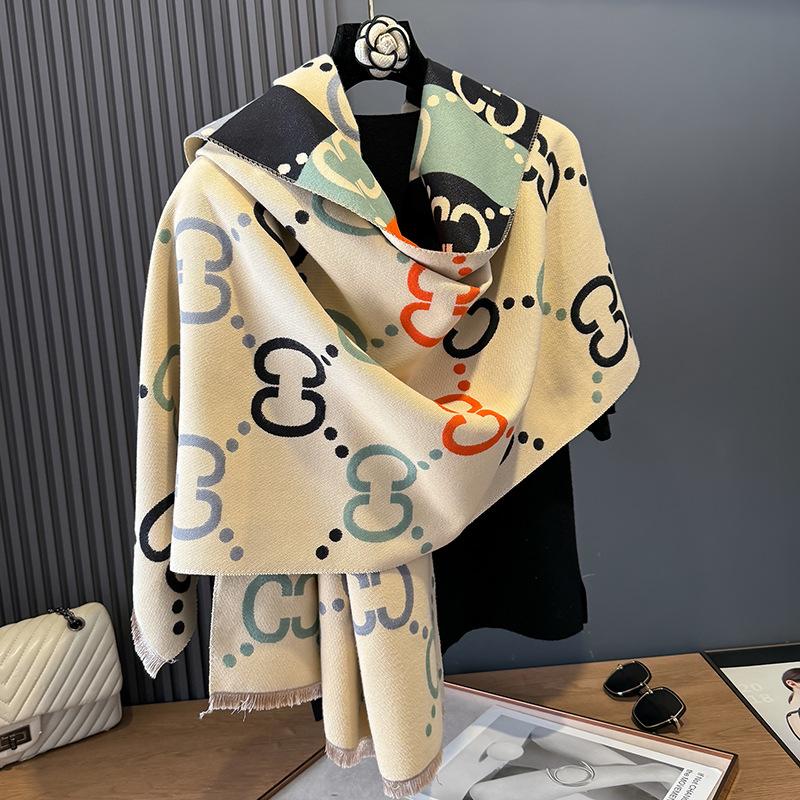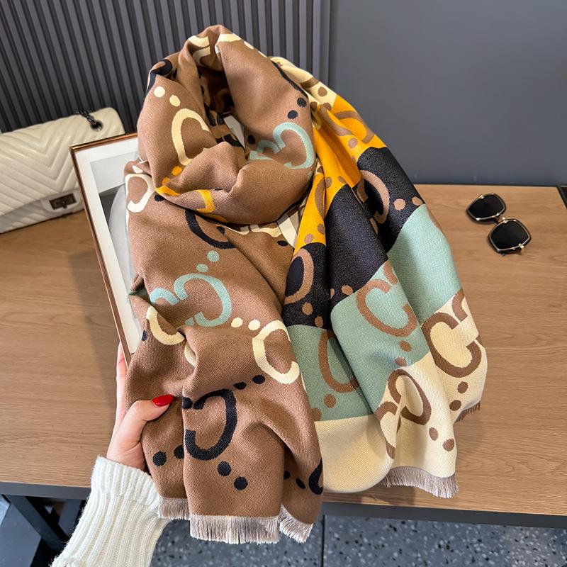 Bufanda de Cachemira para Mujer Otoño e Invierno Europea y Americana Gruesa de Doble Cara Chal Casual Combinable Bufanda Cálida