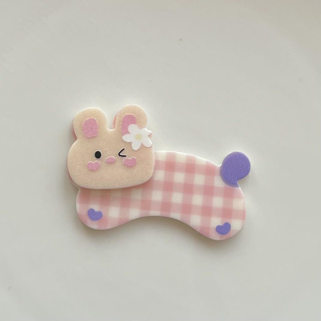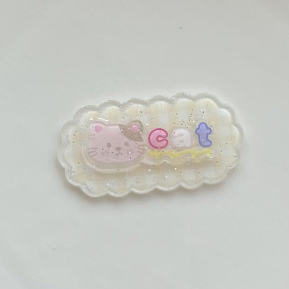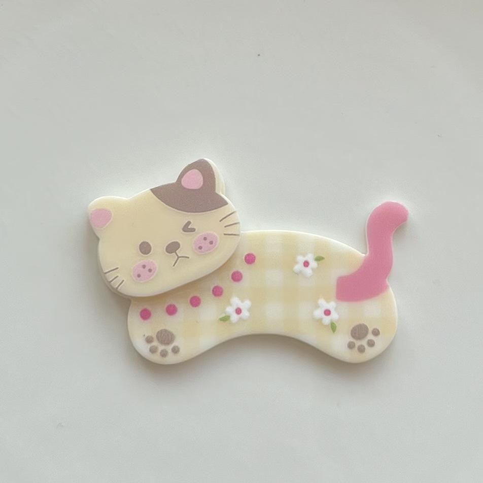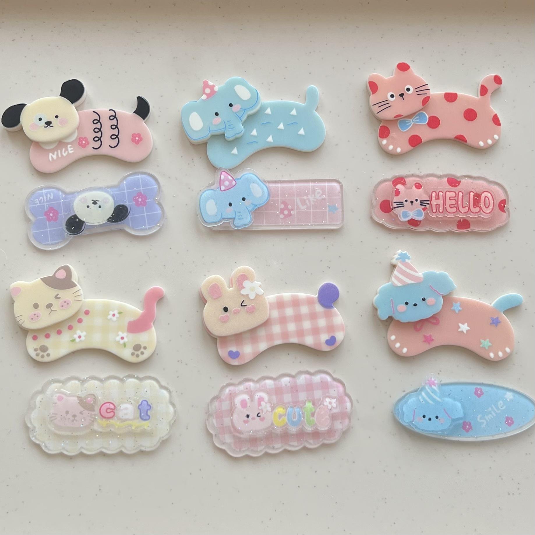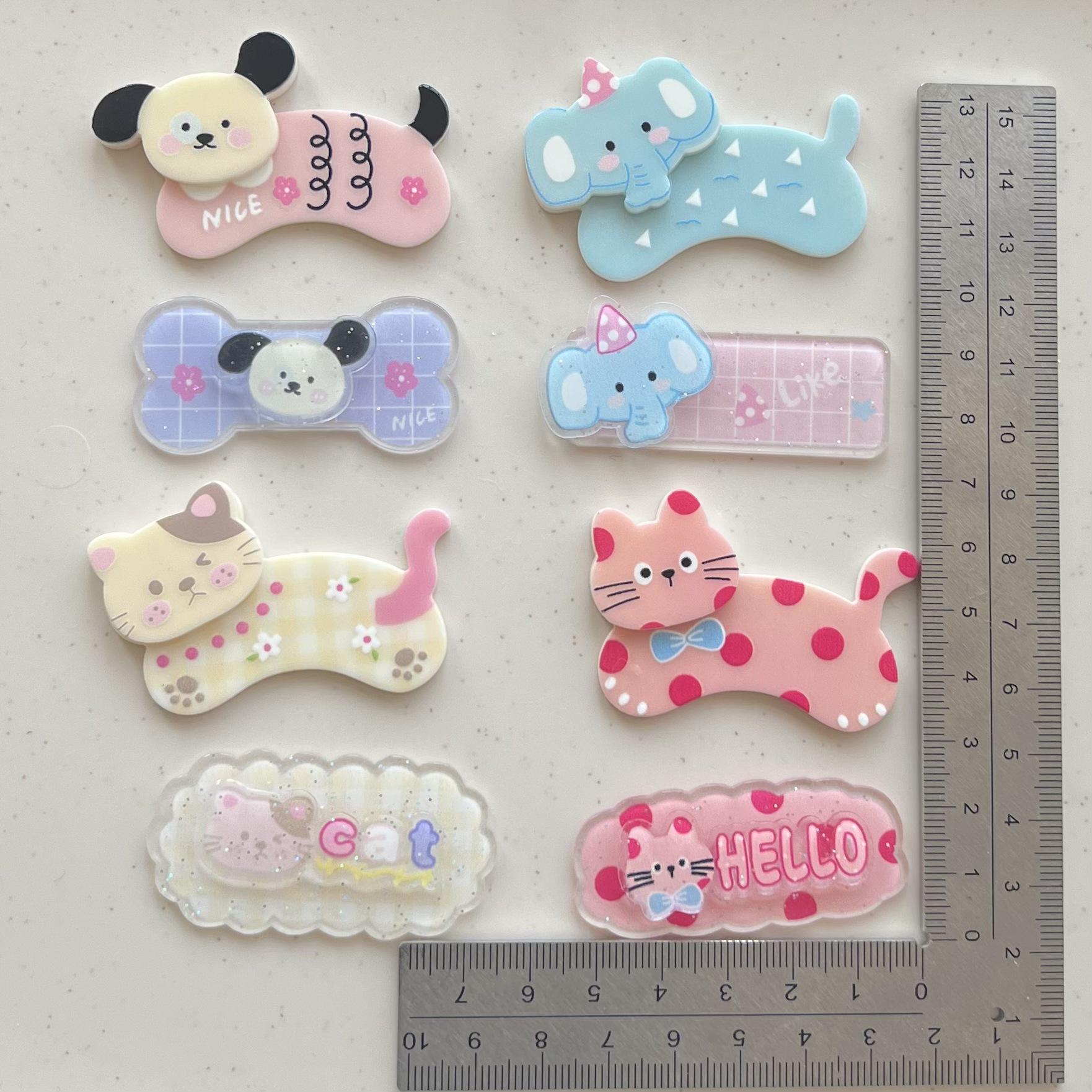 Pinza para el pelo de acrílico de doble capa con diseño de cachorro y gato de dibujos animados para niña, hecha a mano, para decorar tu teléfono.