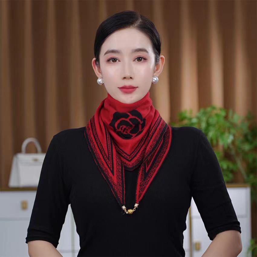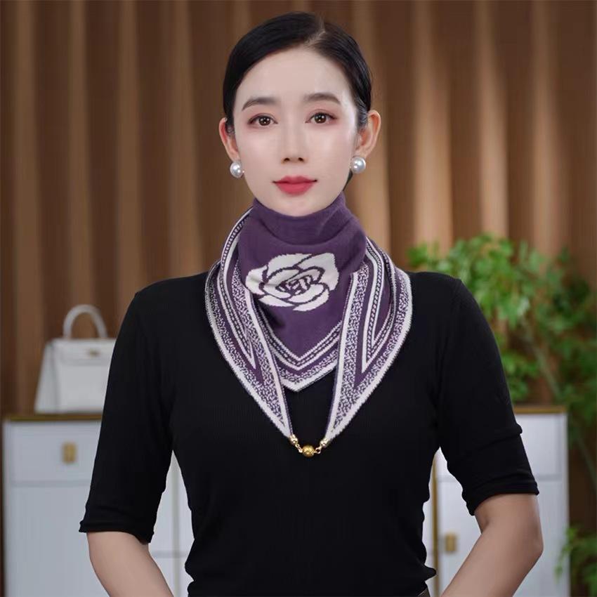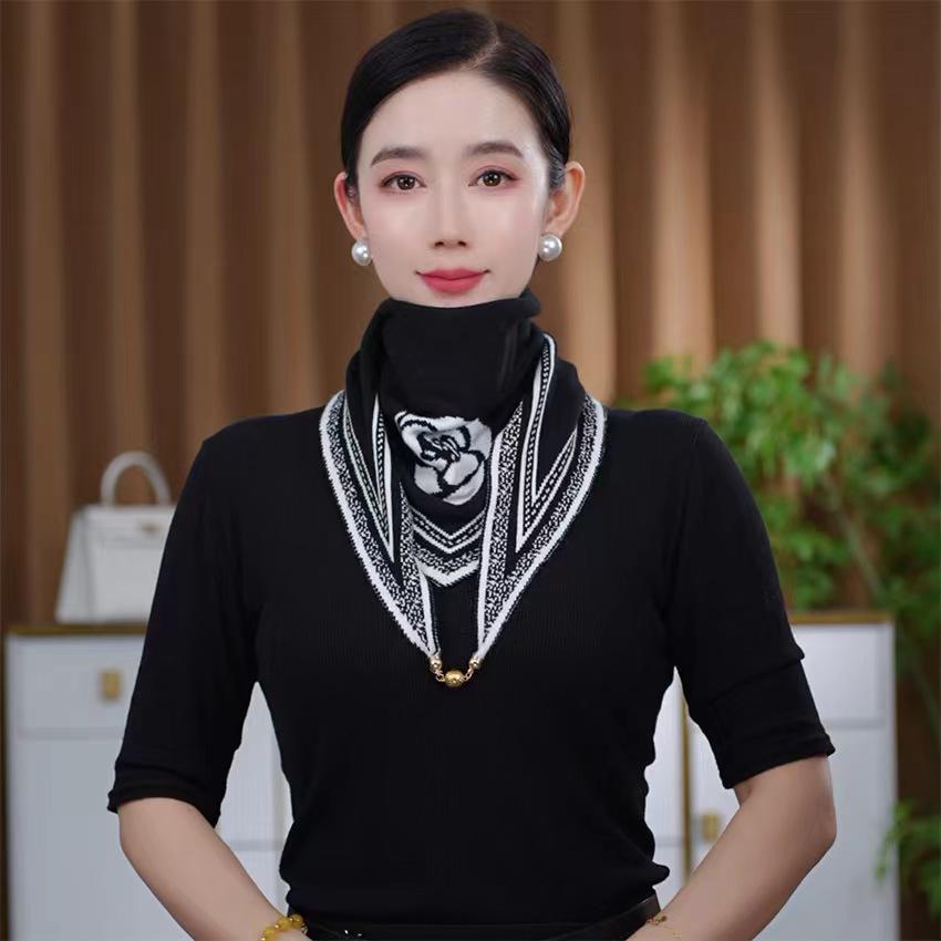 Nueva moda de otoño e invierno, versión coreana de bufanda de cuello de punto que combina con todo, chal pequeño con toalla triangular magnética a juego de colores