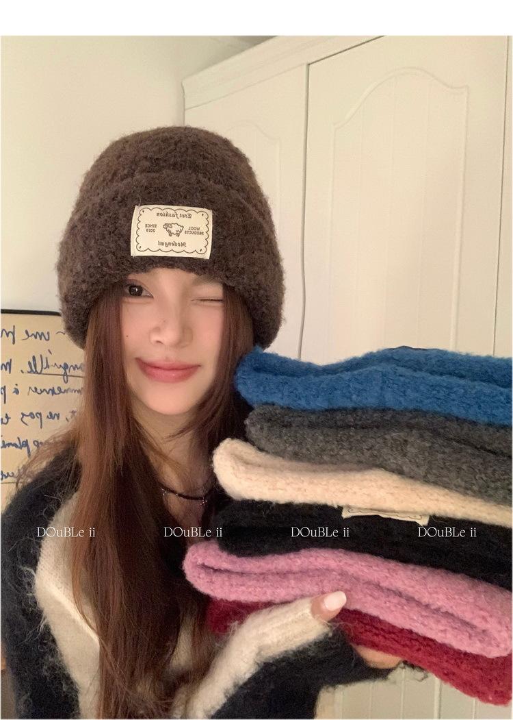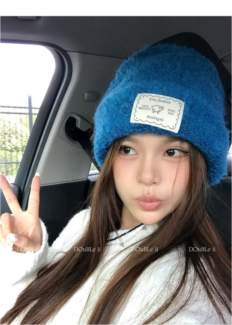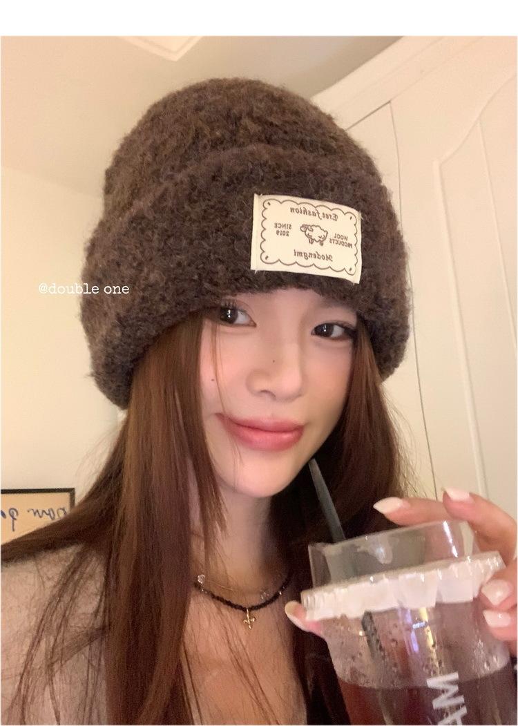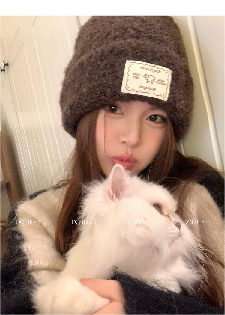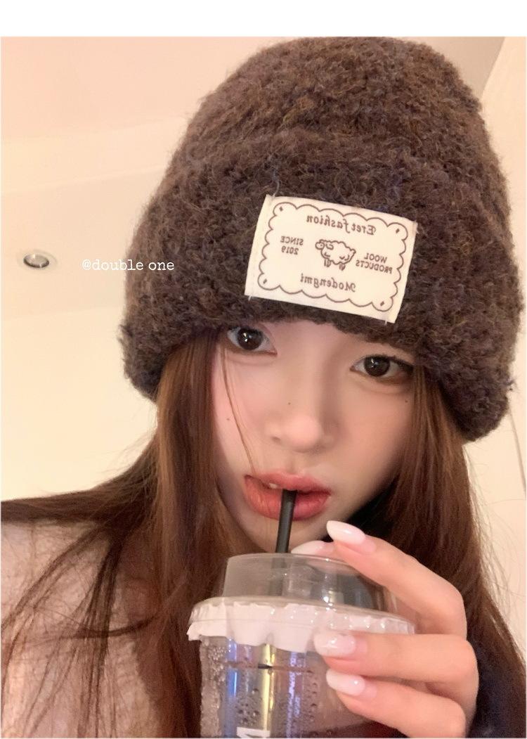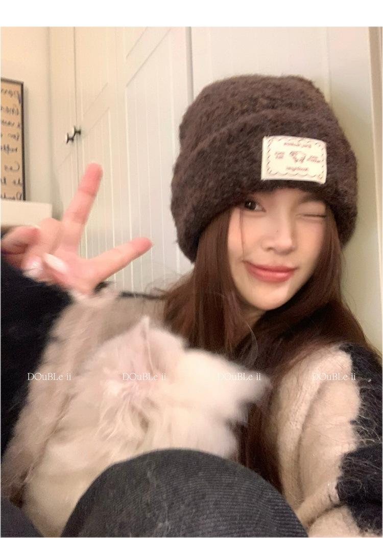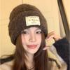 Gorro de lana de punto para mujer, estilo coreano 2024, con letras de moda, para cabeza grande, protección para las orejas pequeñas, gorro de punto frío